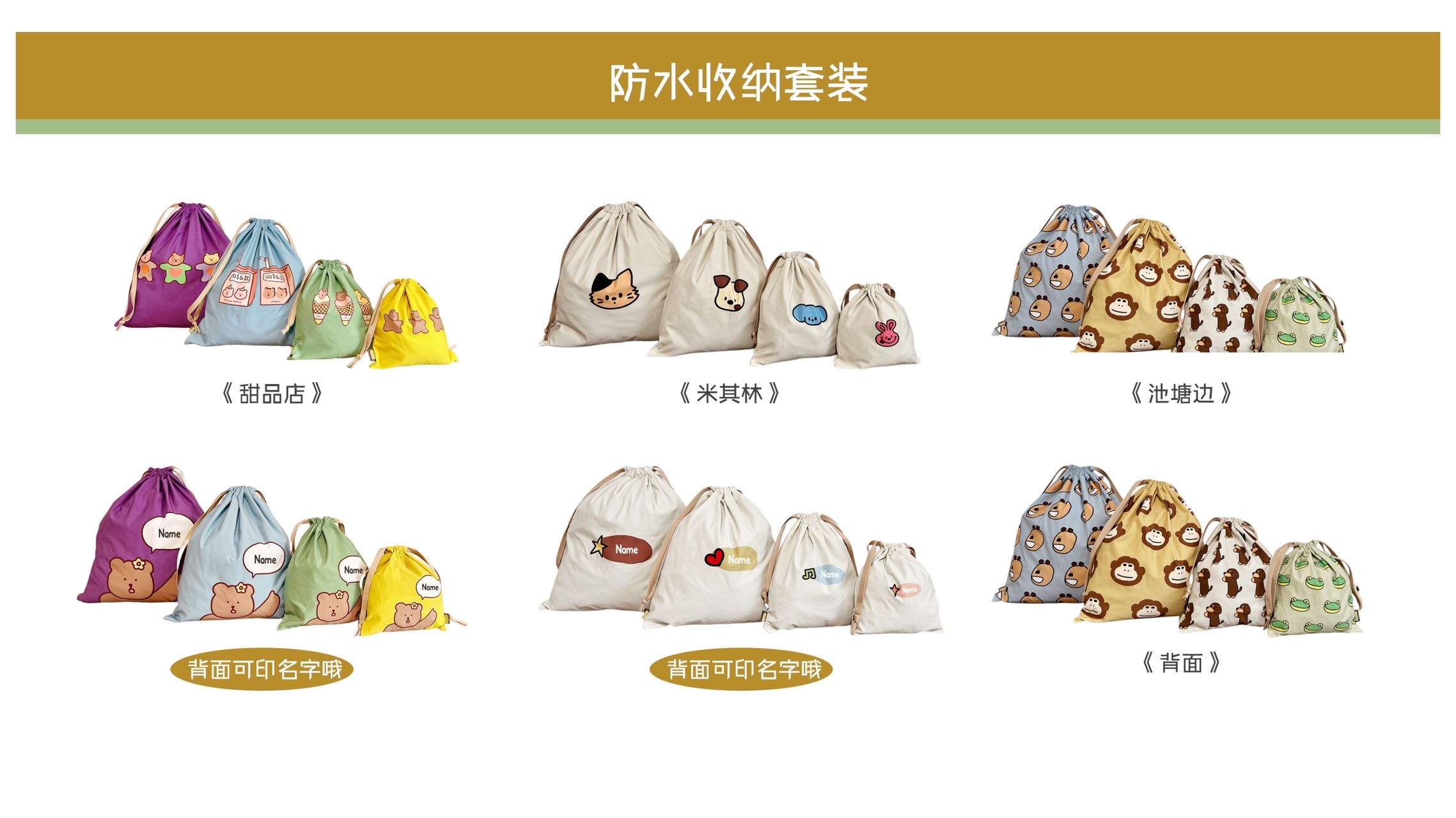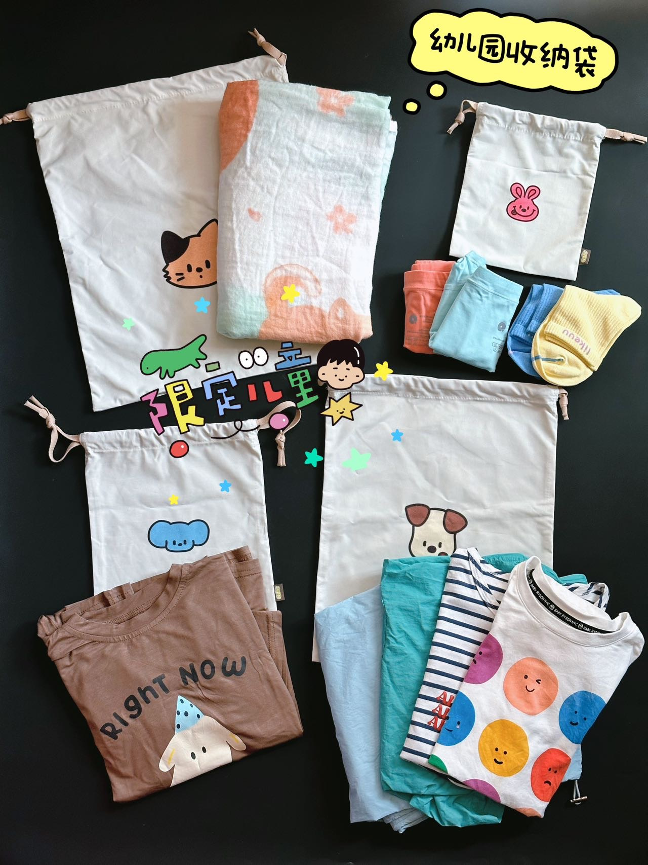 肯定少不了幼儿园的被子包,大大小小的收纳袋了~