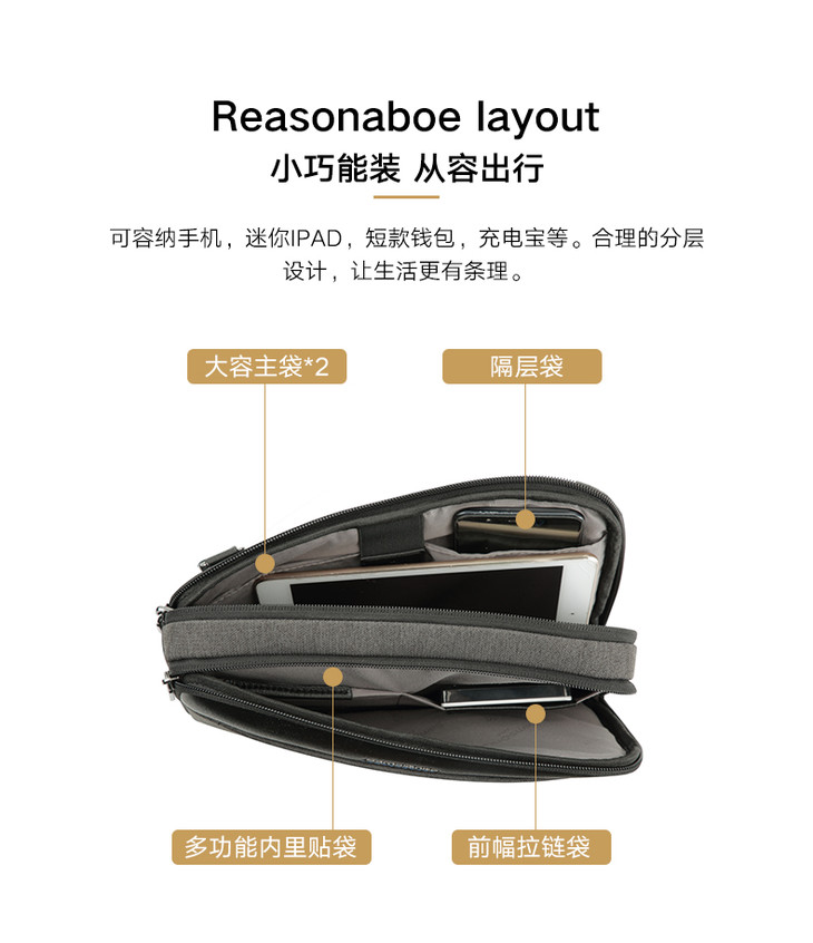 新秀丽斜挎包/胸包 小巧能装 从容出行 拼皮轻商务系列 TN7