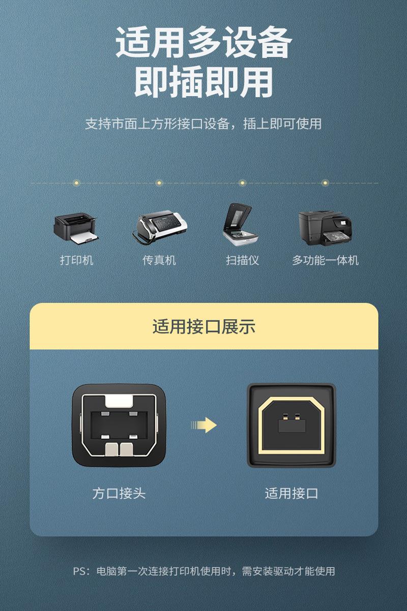 跨境新品USB打印线黑色尼龙编织方口打印机数据线打印线usb2.0线