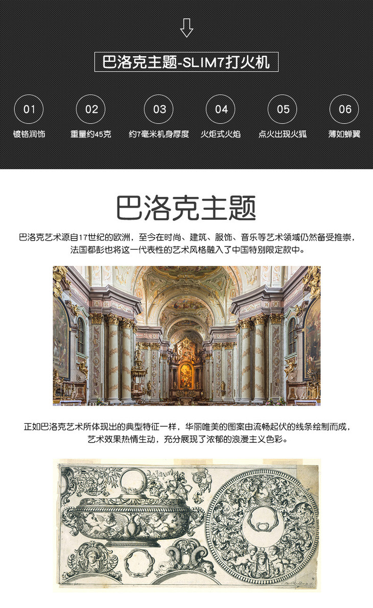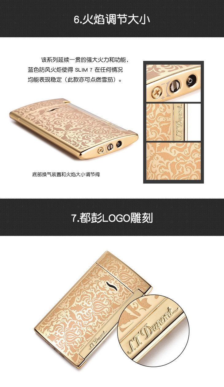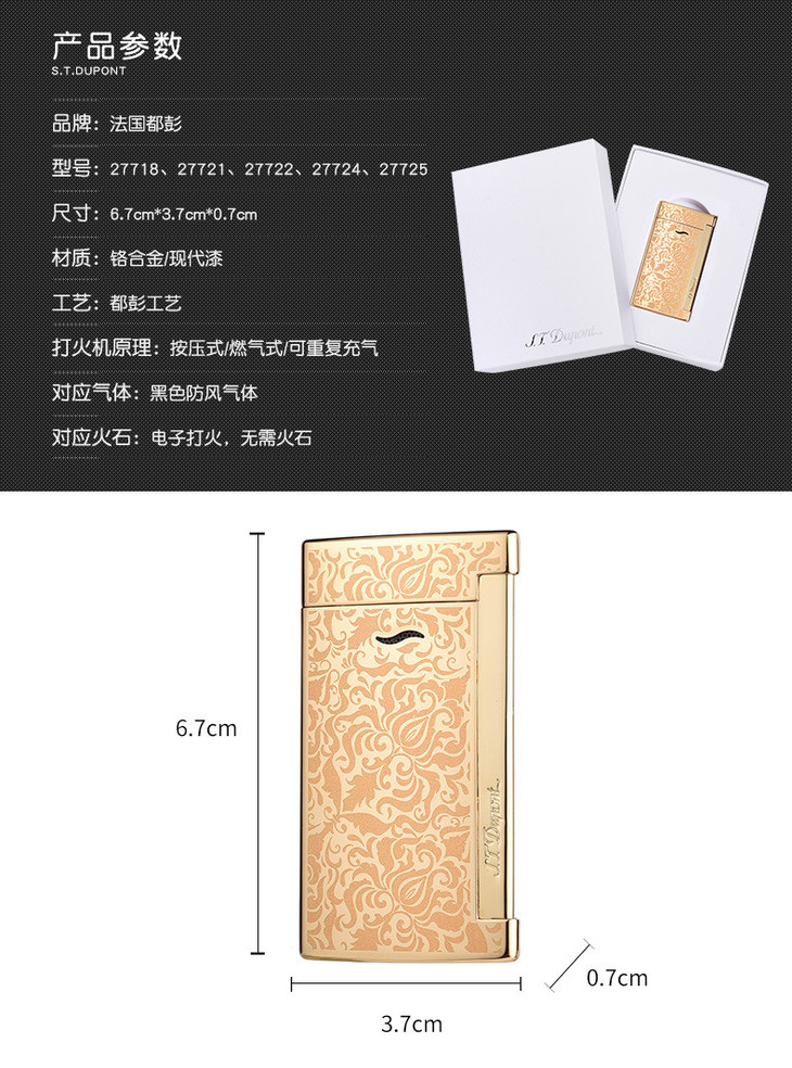 S.T. DUPONT/都彭 新款超薄slim7系列 巴洛克艺术风 炬式火焰防风打火机27718/27721/27722/27724/27725【上海同城闪送】