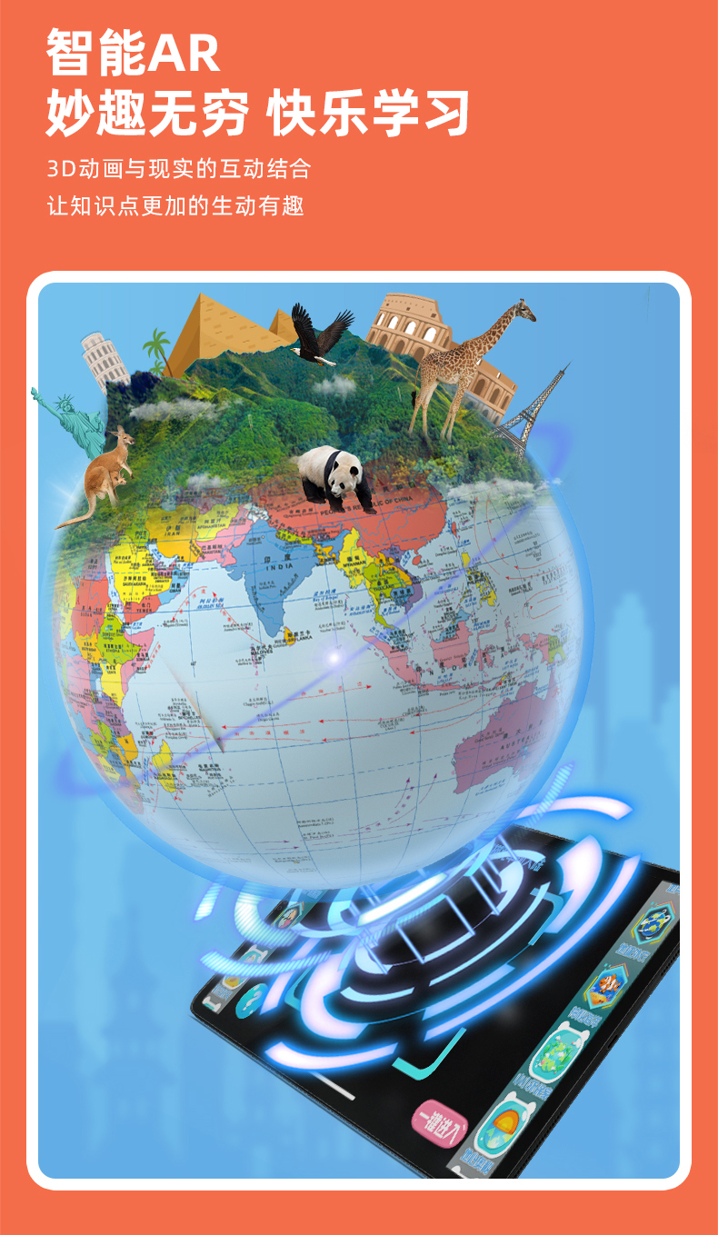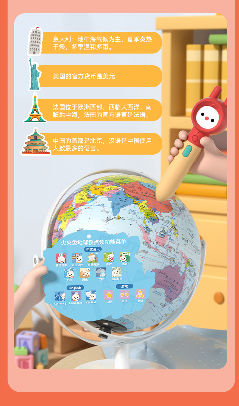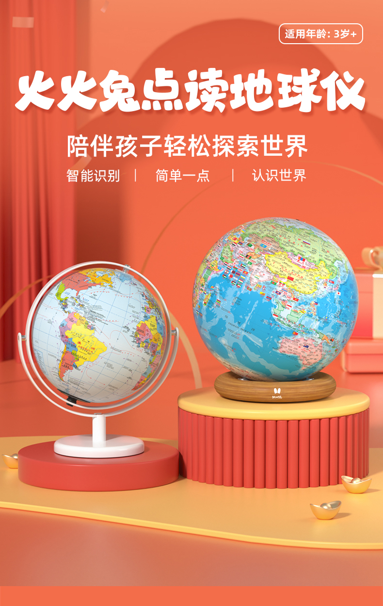 火火兔点读地球仪正版AR夜灯儿童地理启蒙点读笔幼儿男孩点读地图