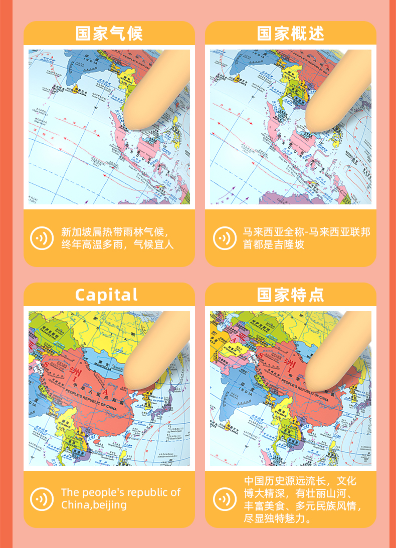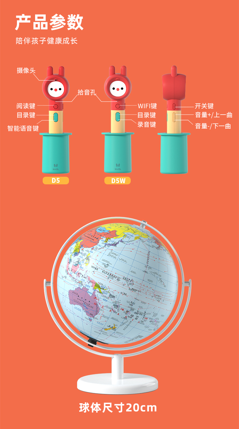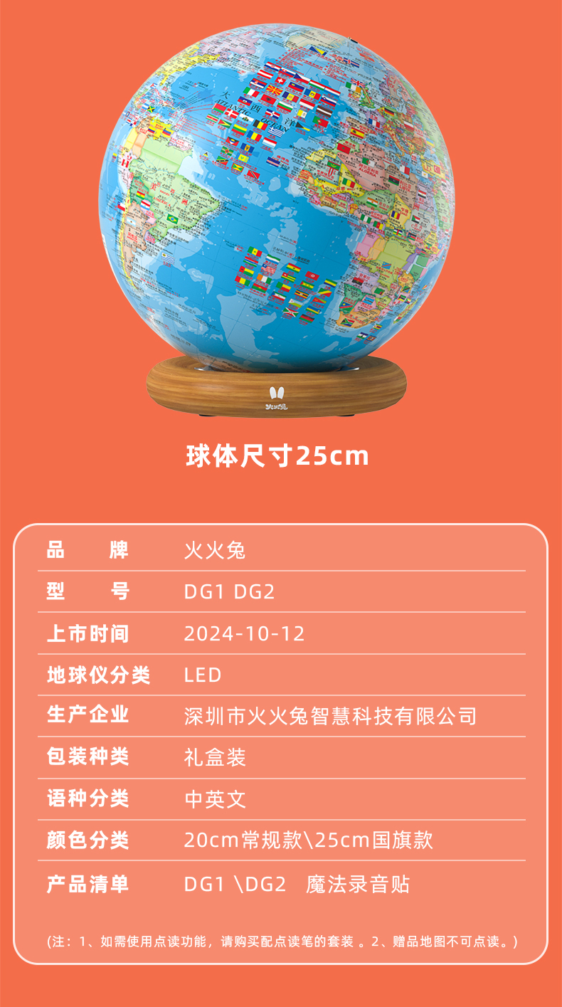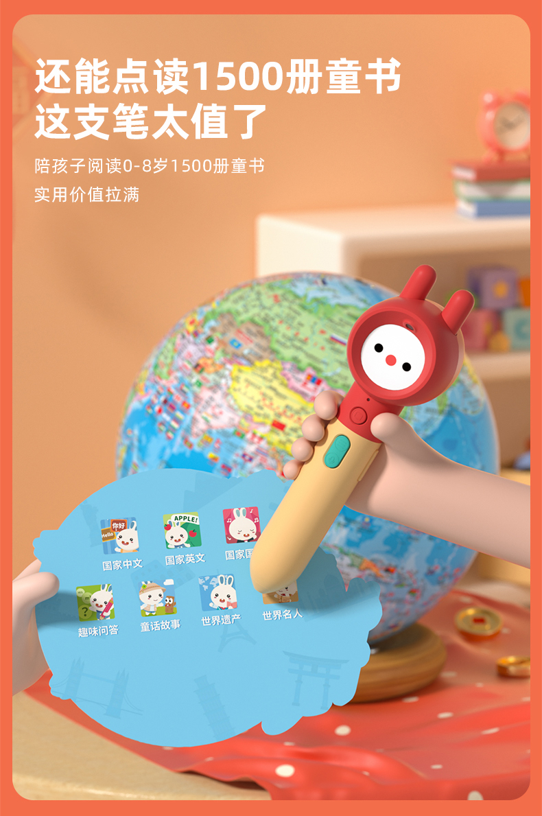 火火兔点读地球仪正版AR夜灯儿童地理启蒙点读笔幼儿男孩点读地图