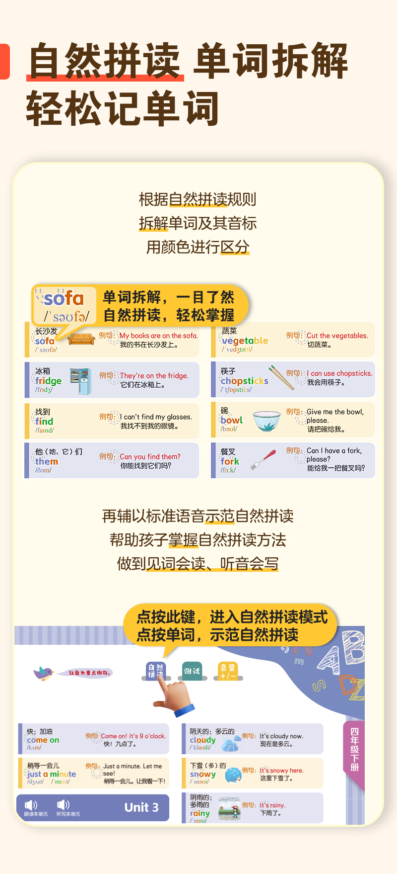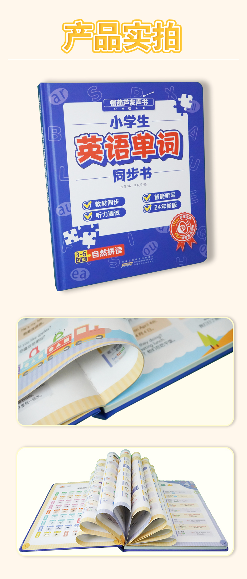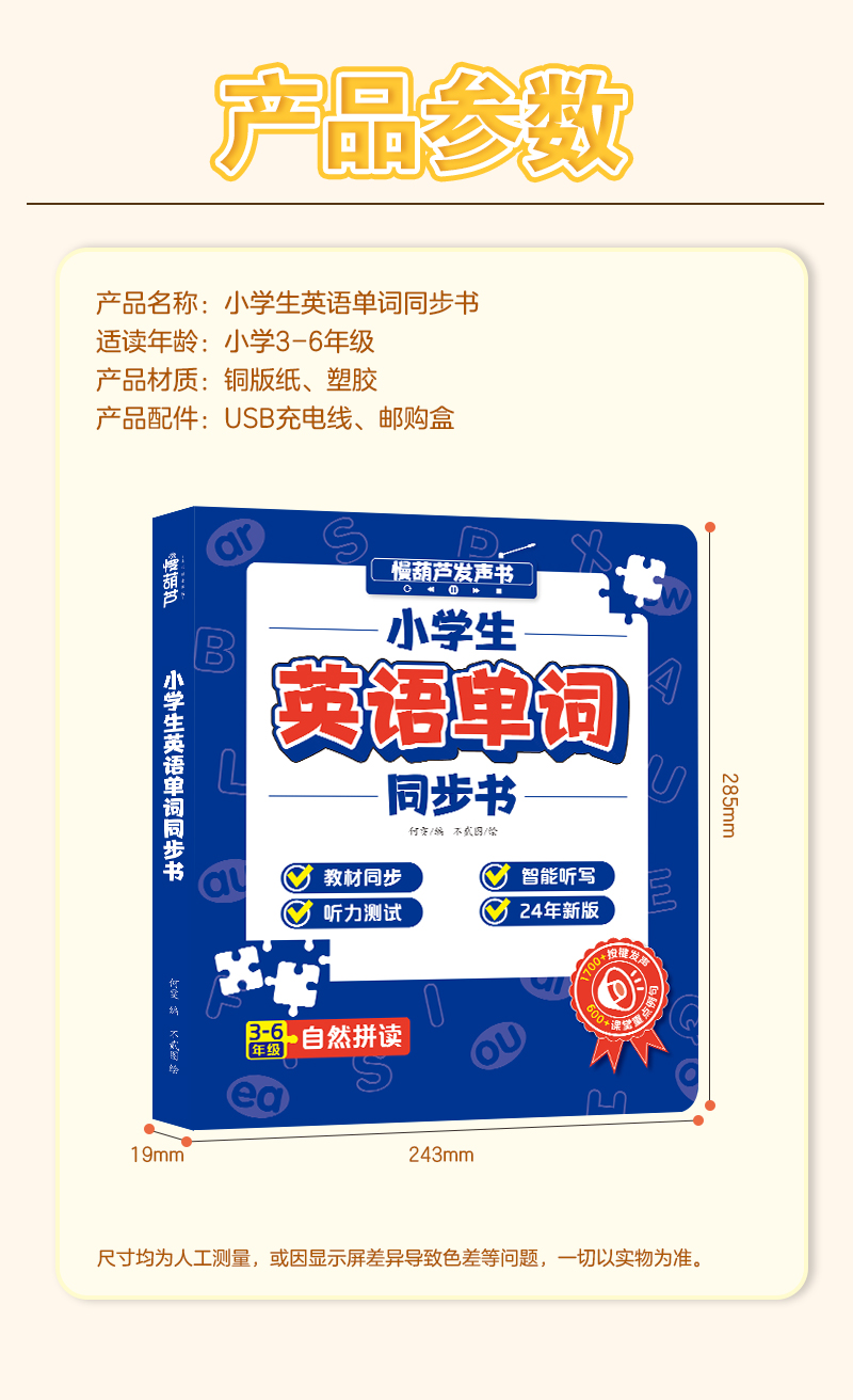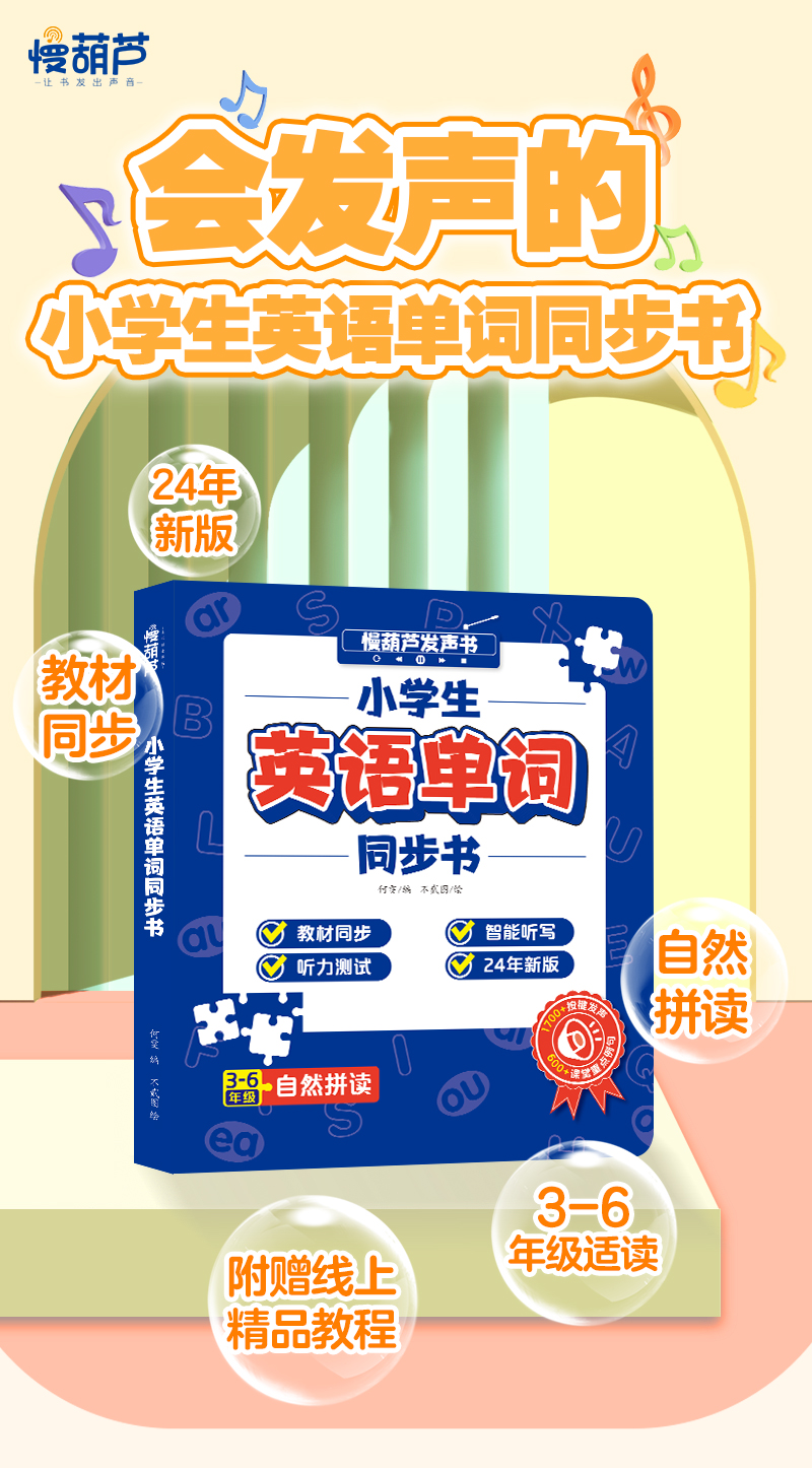 慢葫芦英语自然拼读就记单词发声书小学生3-6年级教材同步点读书