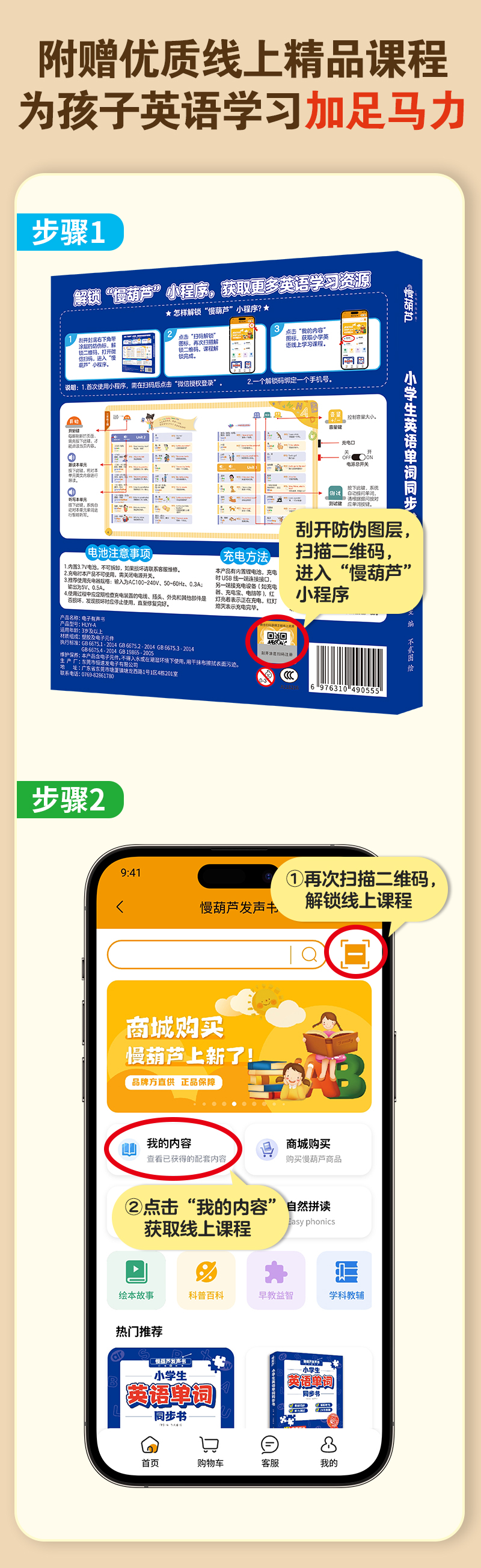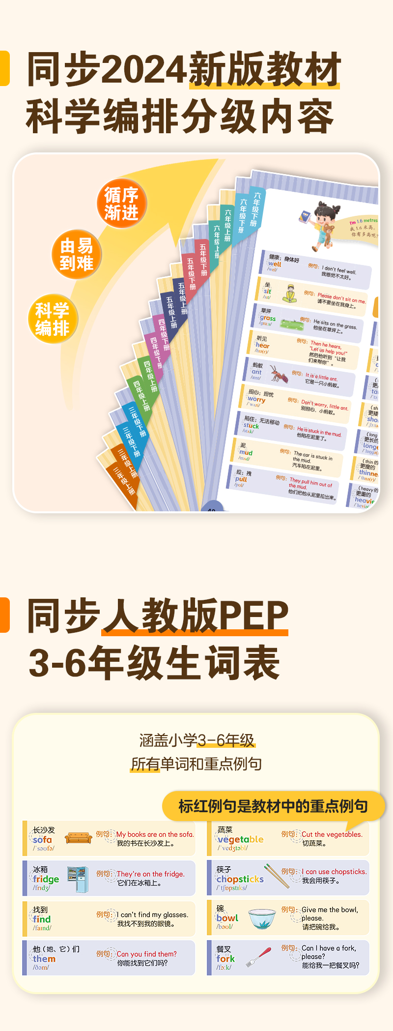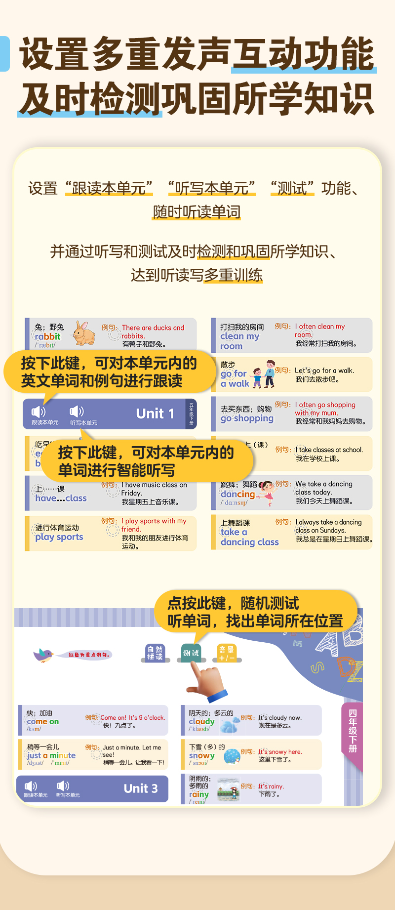慢葫芦英语自然拼读就记单词发声书小学生3-6年级教材同步点读书