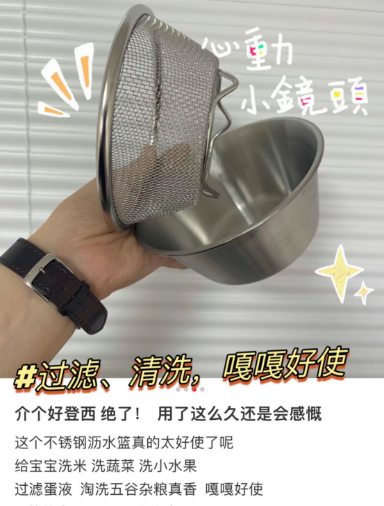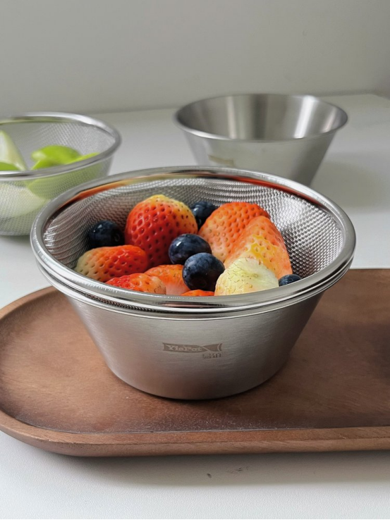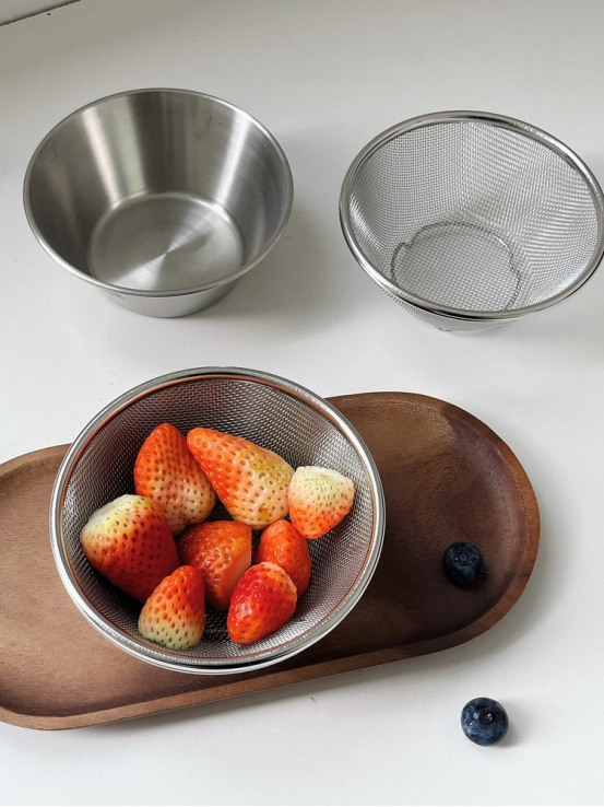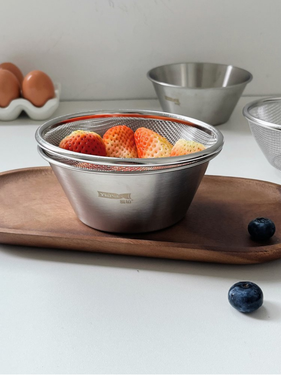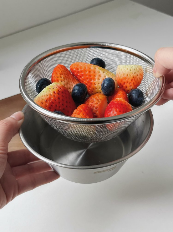 👏不锈钢材质结实耐用 无论装水果还是过滤液体,或者装面粉做甜品都可以
