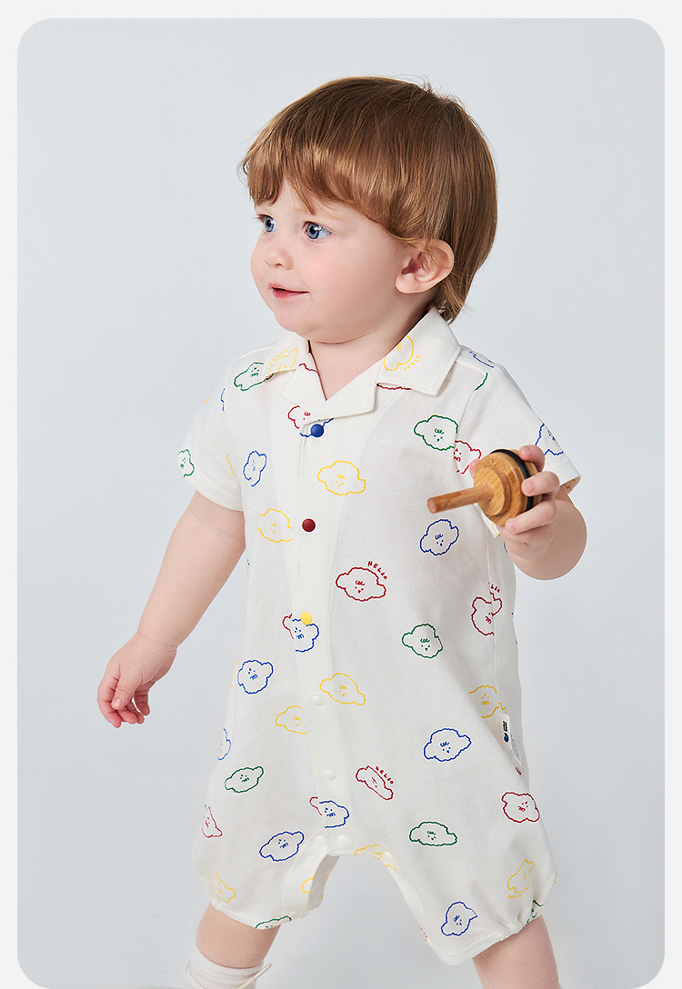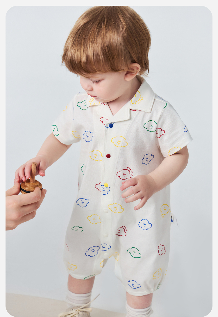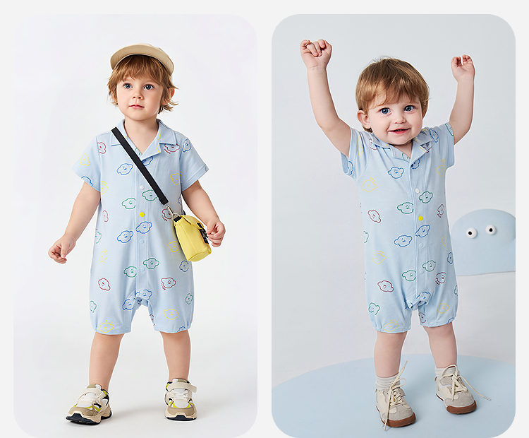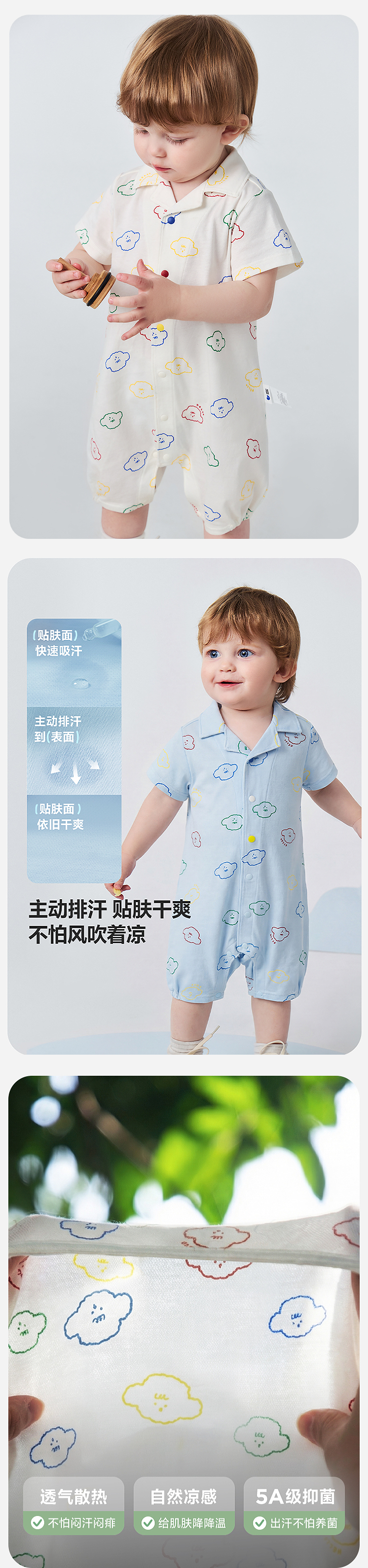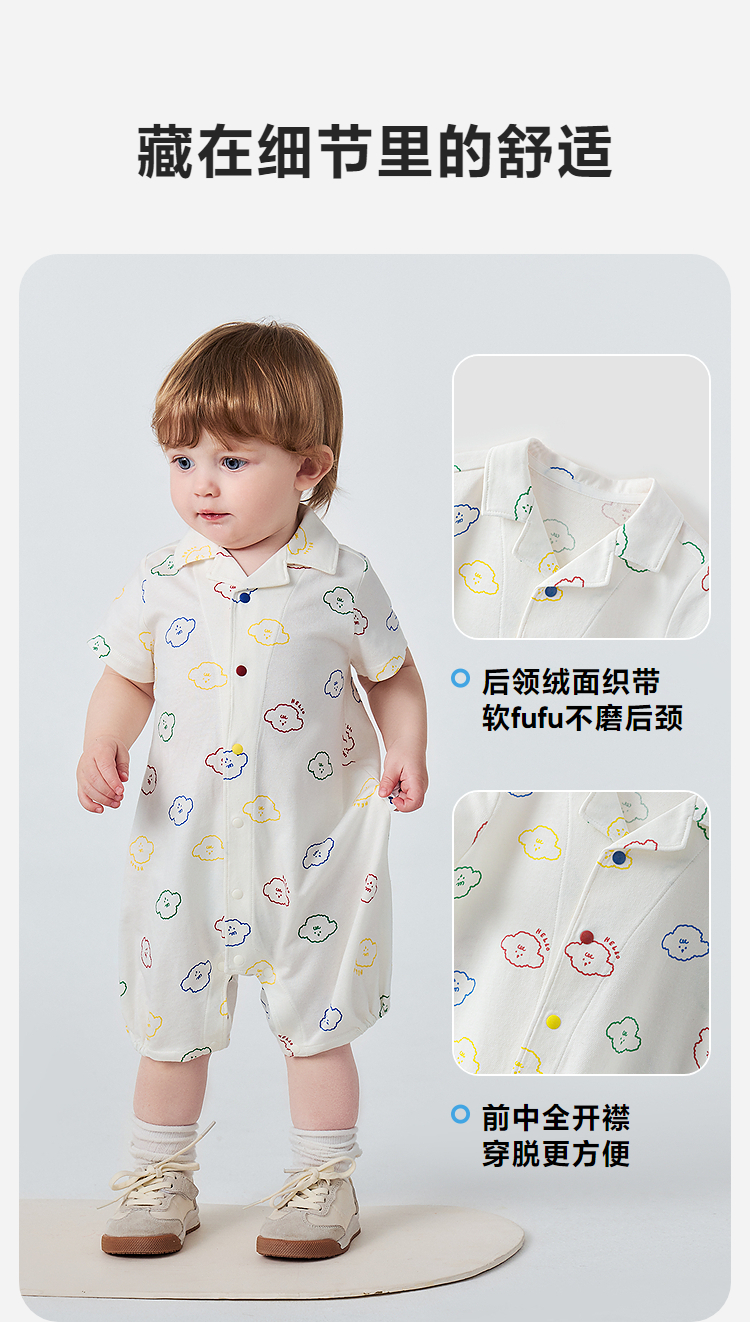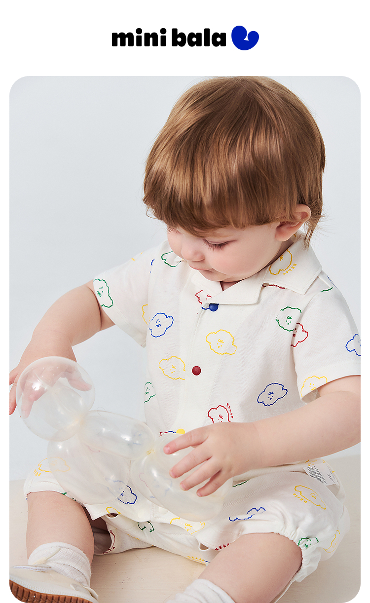 迷你巴拉巴拉婴儿连体衣休闲翻领宝宝外出爬服亲肤排汗抑菌26夏