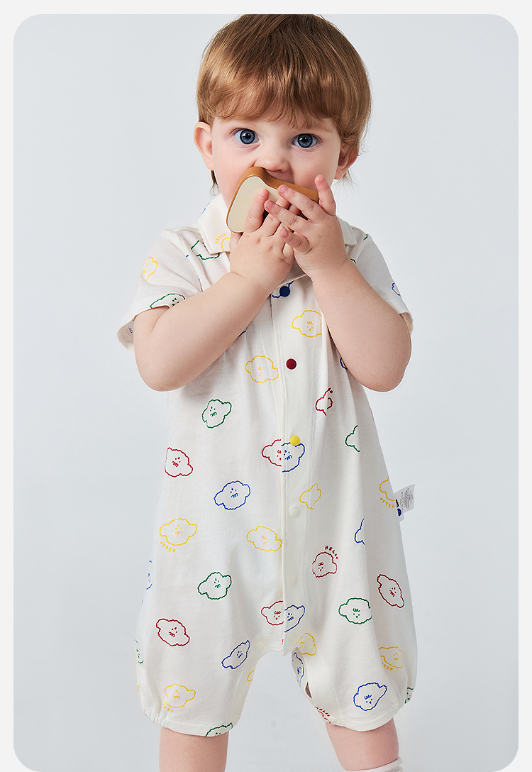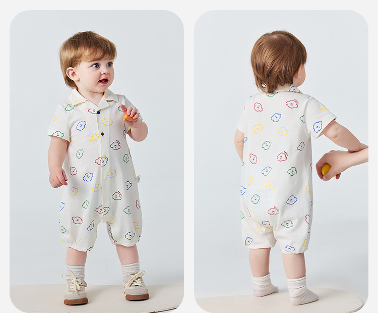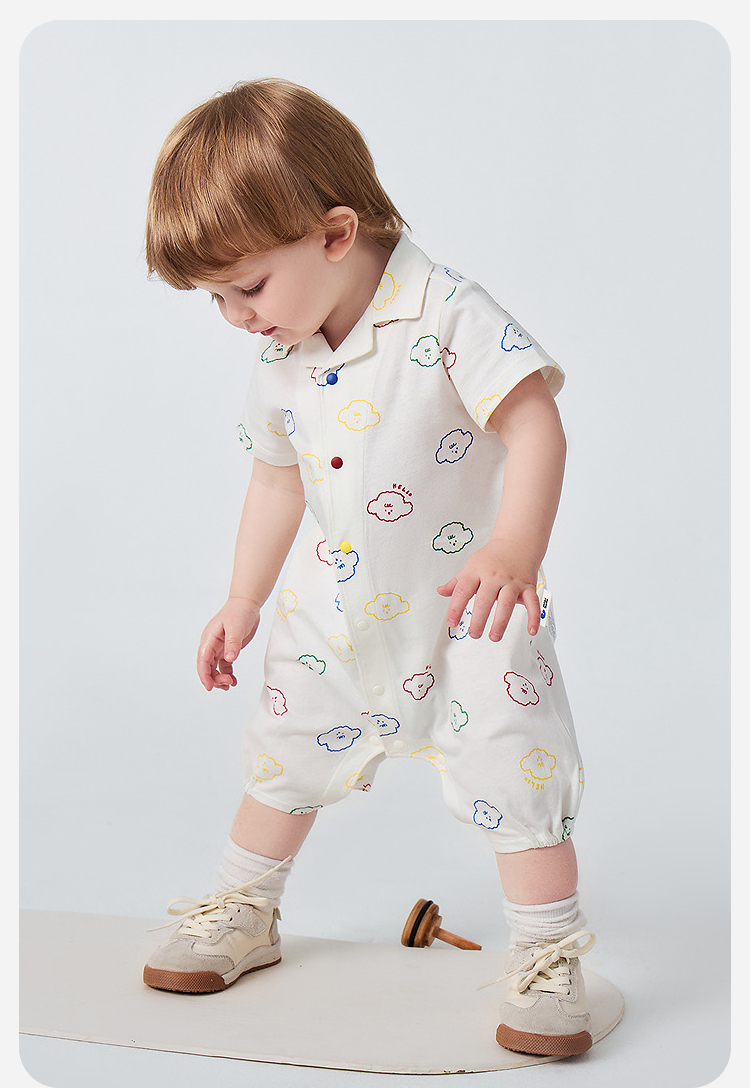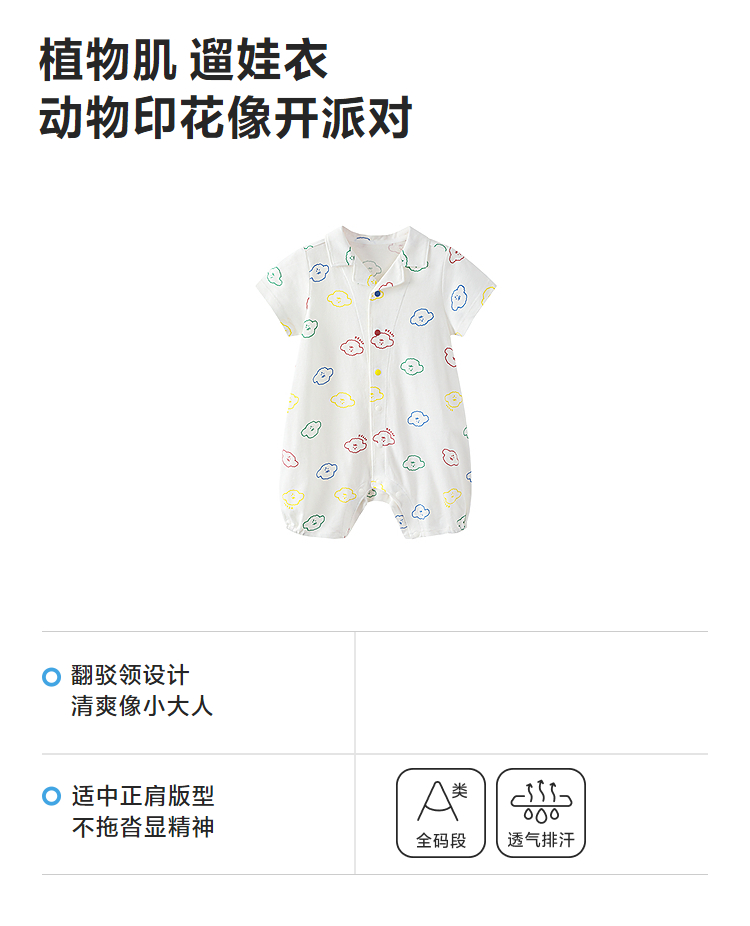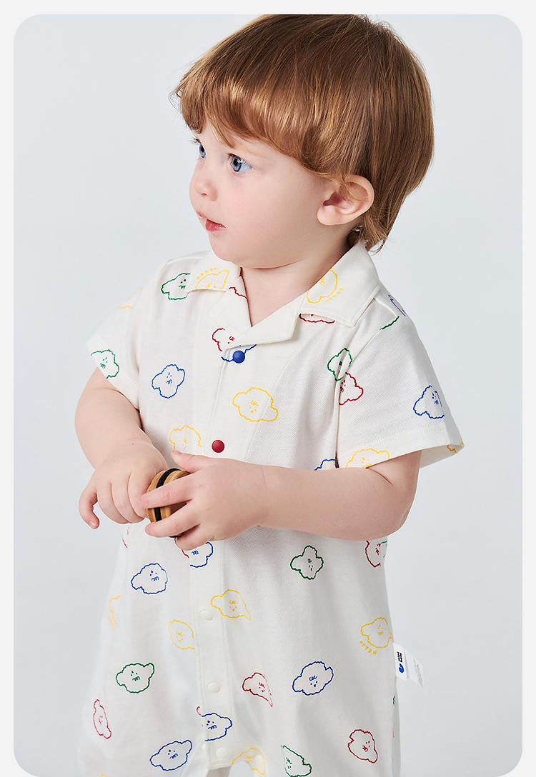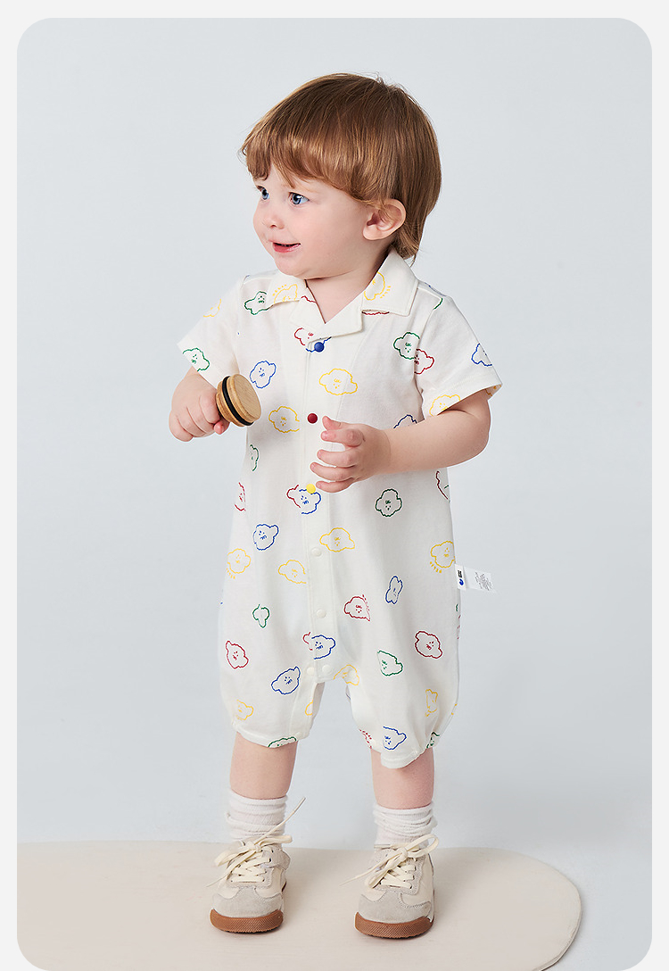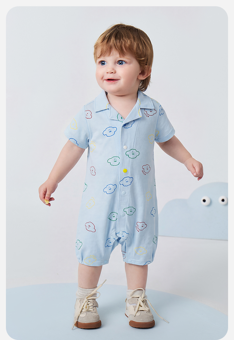 迷你巴拉巴拉婴儿连体衣休闲翻领宝宝外出爬服亲肤排汗抑菌26夏