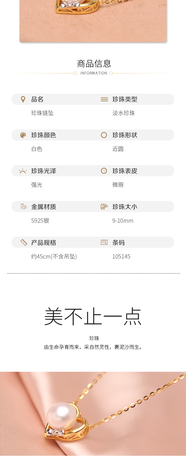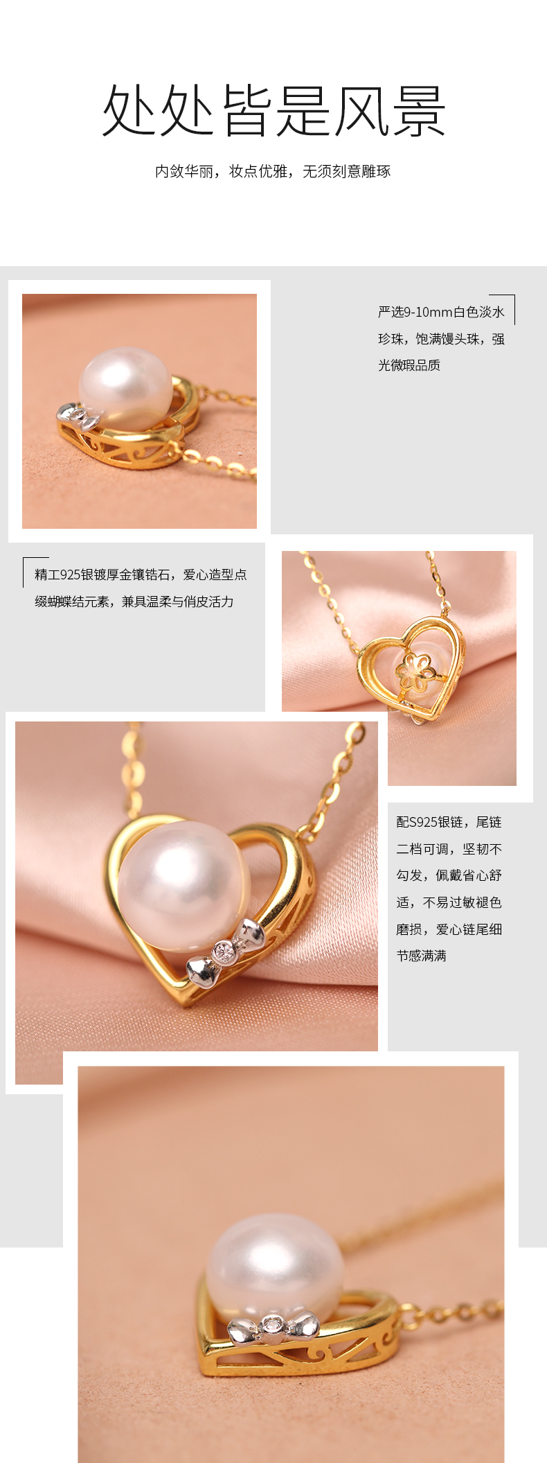美裕 【甜蜜爱恋】银925淡水珍珠链坠 9-10mm白 105145