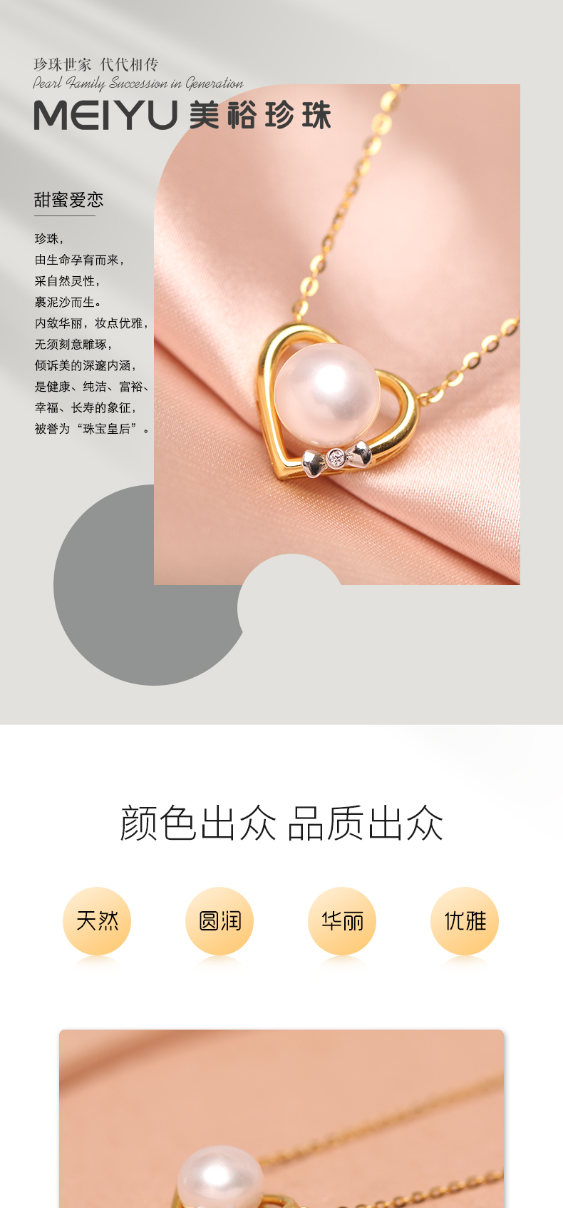 - 珍珠世家,代代相传。美裕珍珠,1933年起源于印尼,成长于海南岛。依托海南资源优势和自身专业优势,以经营南珠、南洋珠为主,专注于珍珠文化的挖掘和传播,把珍珠代表的爱意,永不间断地传承下去。