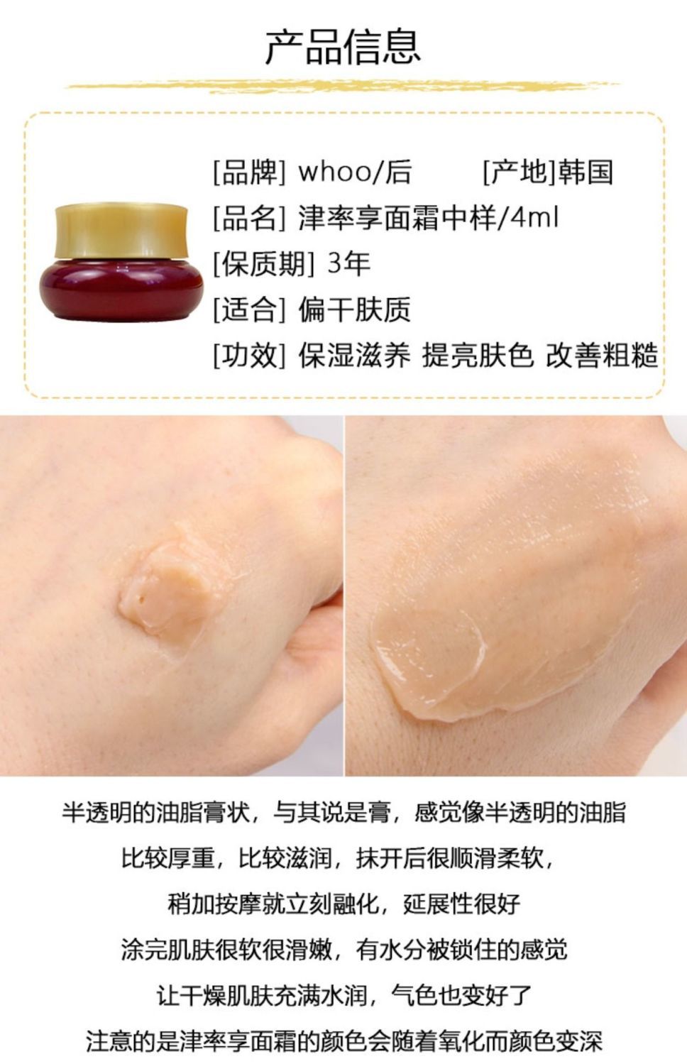 【爆款超低价预售 急单慎拍】韩国whoo后津率享面霜小样中样4ml红华凝香集锦膏焕颜滋润抗皱