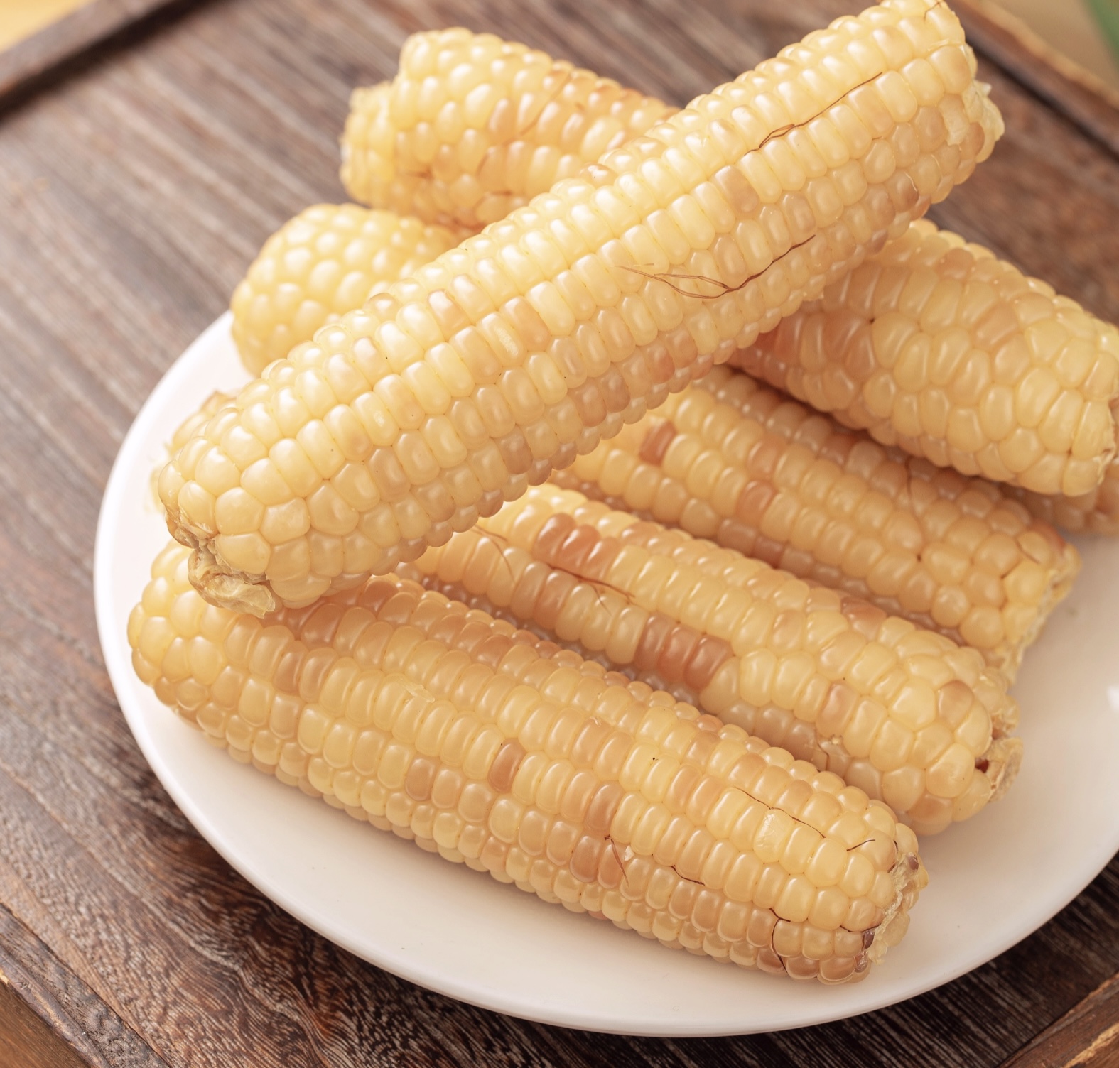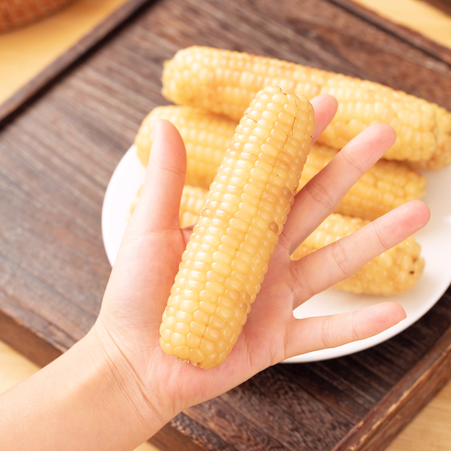 元气壹号小玉米比一般的花糯玉米略小,个头差不多跟女生巴掌一样,小巧可爱,珠圆玉润,口感也比普通的花糯玉米更糯,无渣