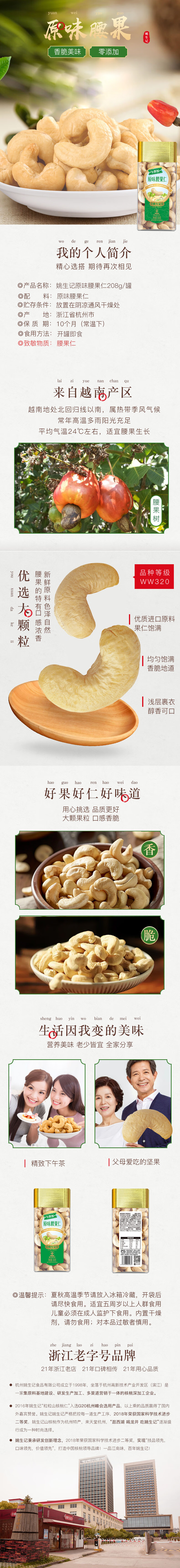 姚生记原味腰果仁208g/罐