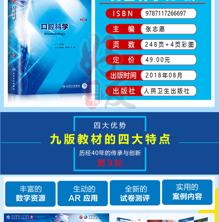 口腔科学第9九版 张志愿 本科临床西医教材 本科第9轮教材 西医实用口腔科学 人民卫生出版社9787117266697