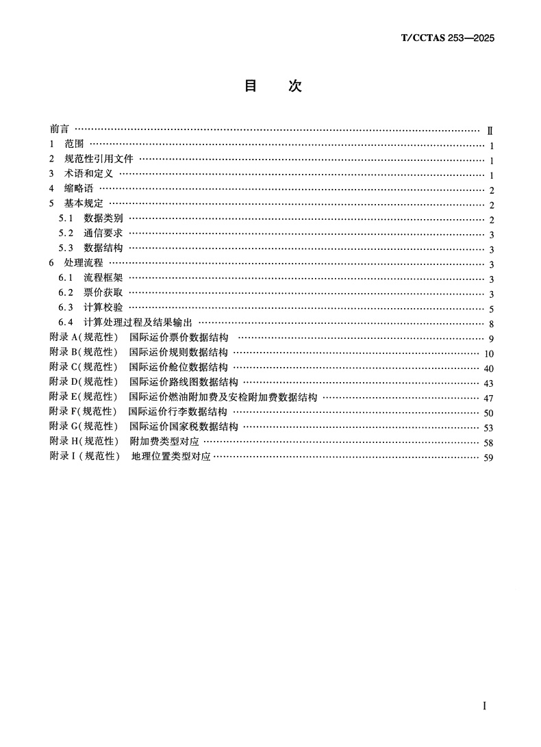 书名:民航客票国际运价数据及计算处理规范T/CCTAS 253-2025