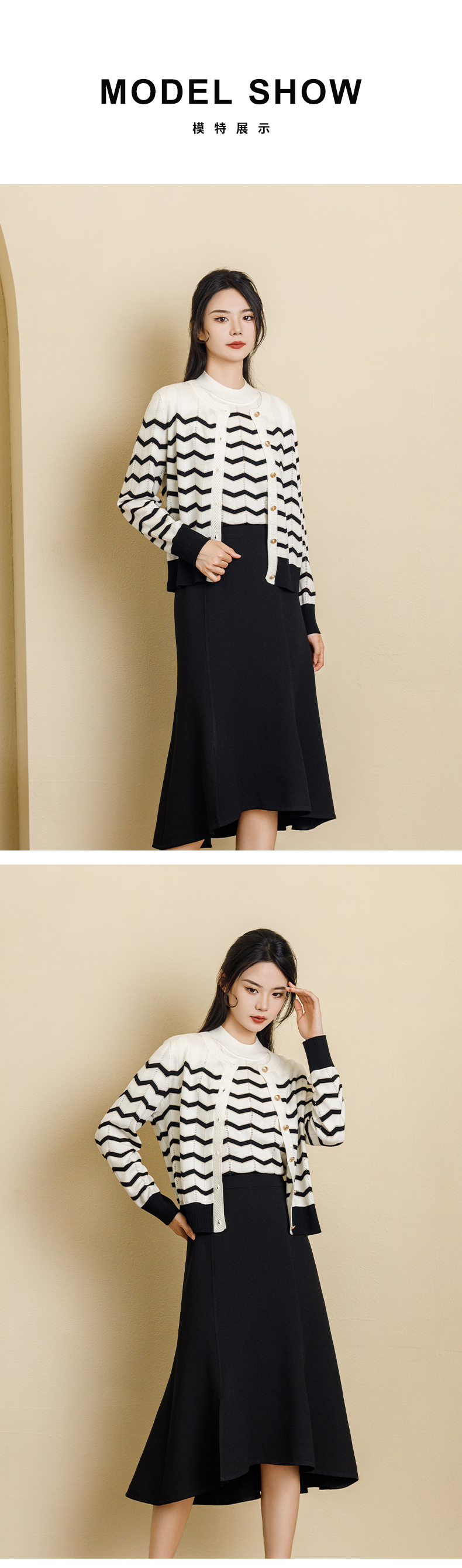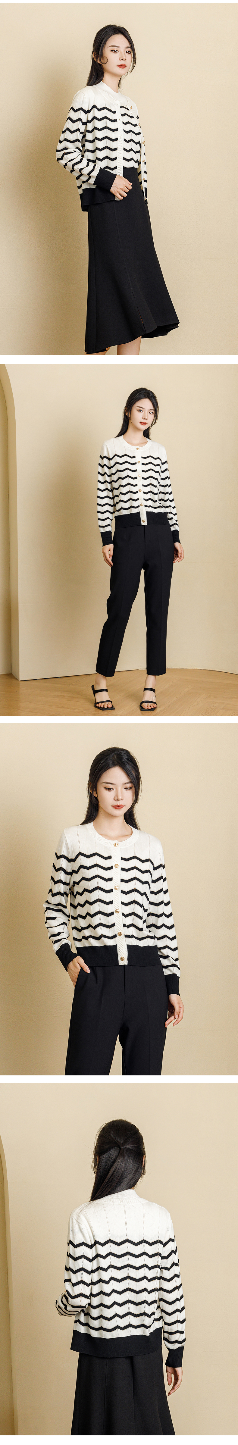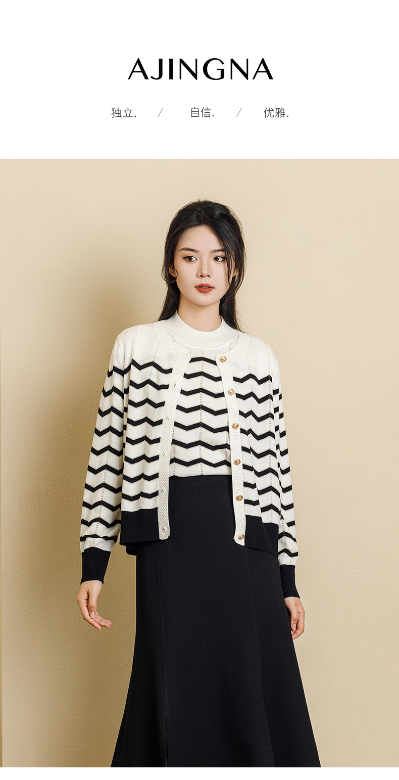 【商场同款】阿菁娜2024秋季新款经典黑白撞色长袖毛衫A29Q318018