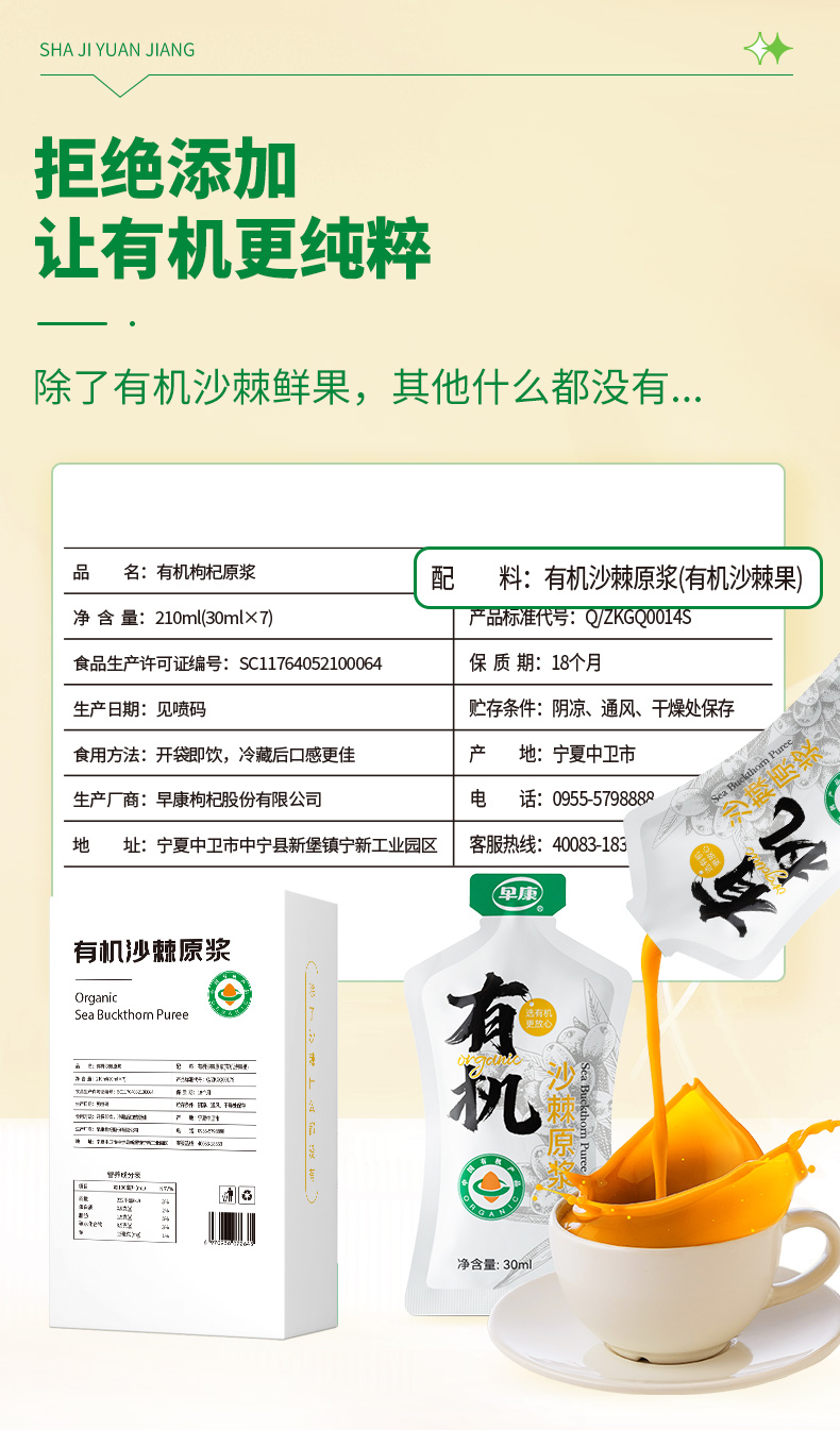 【有机】早康有机沙棘原浆210ml(30ml*7袋)