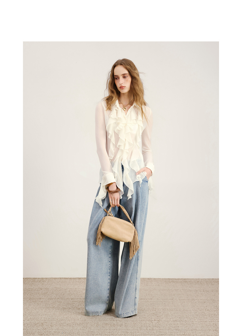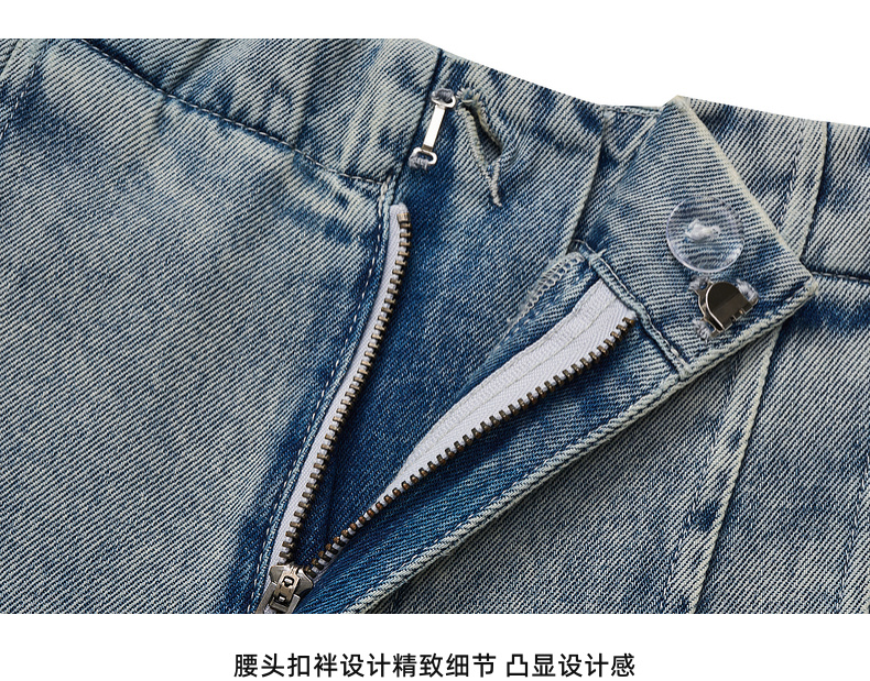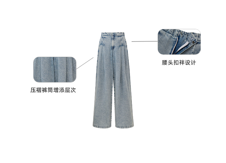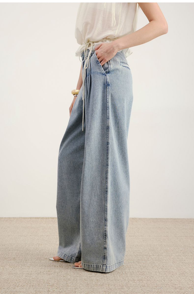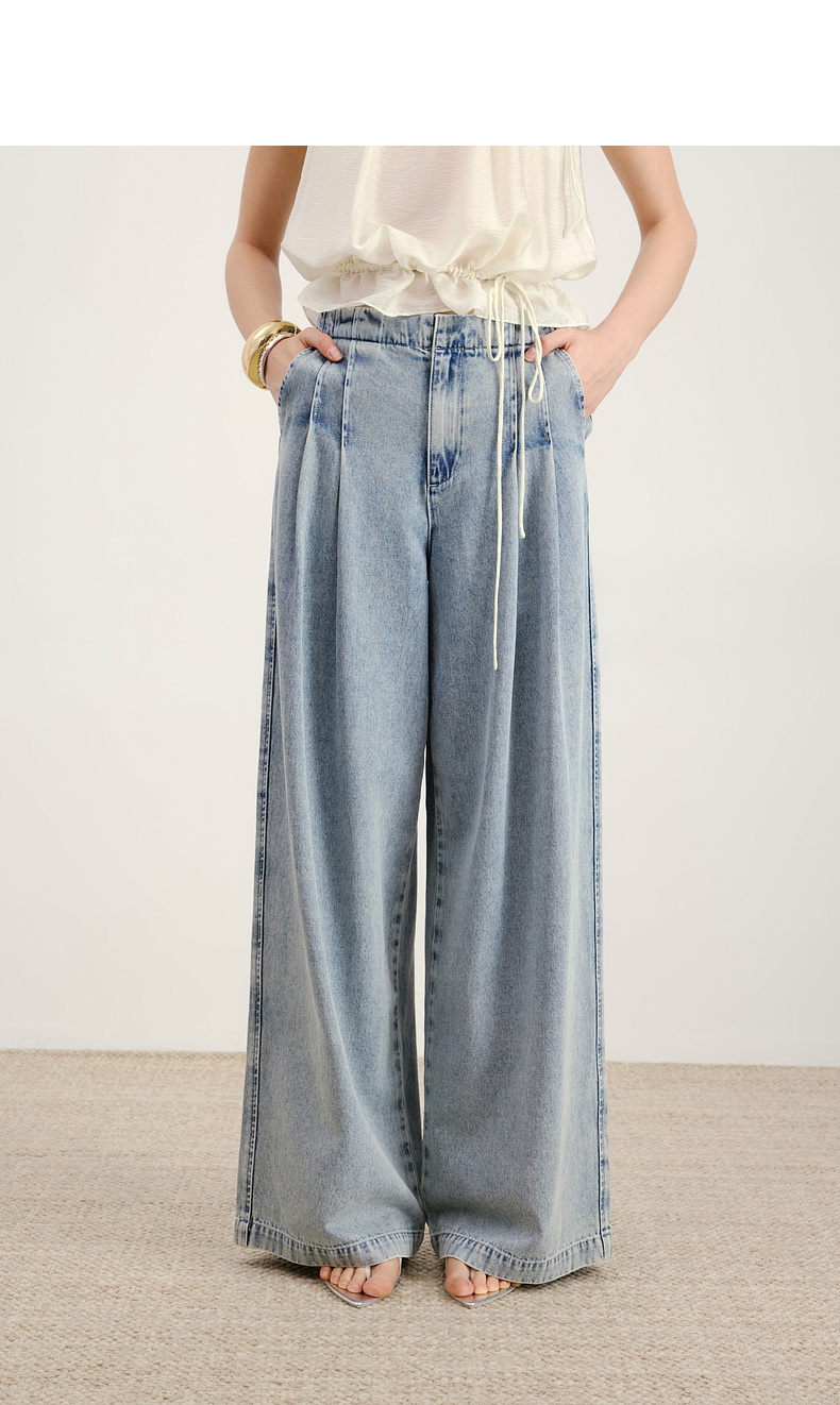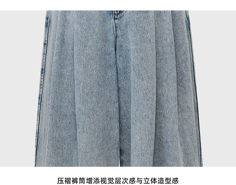 lost in echo2026年春夏新款时髦休闲宽松扣袢叠褶阔腿牛仔长裤女