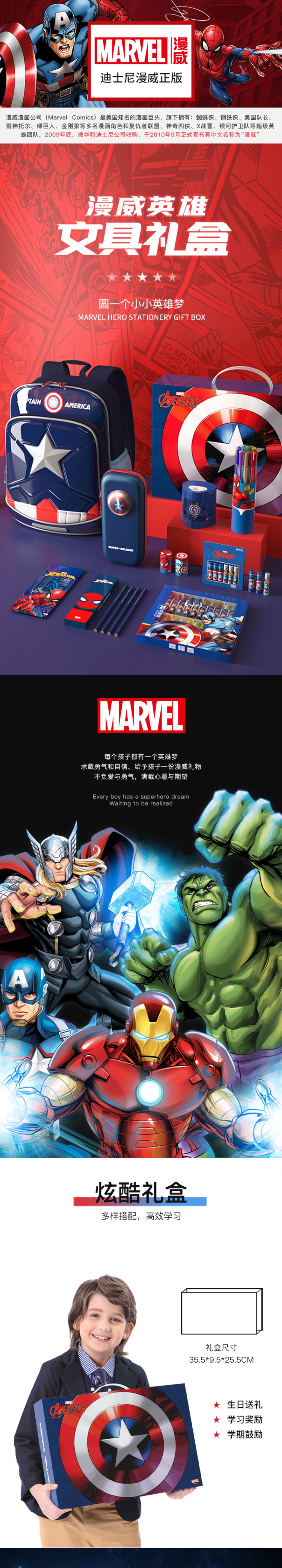 迪士尼(Disney)文具套装漫威笔盒铅笔绘画文具礼盒39件套开学大礼包学习用品套装赠礼品袋儿童礼物
