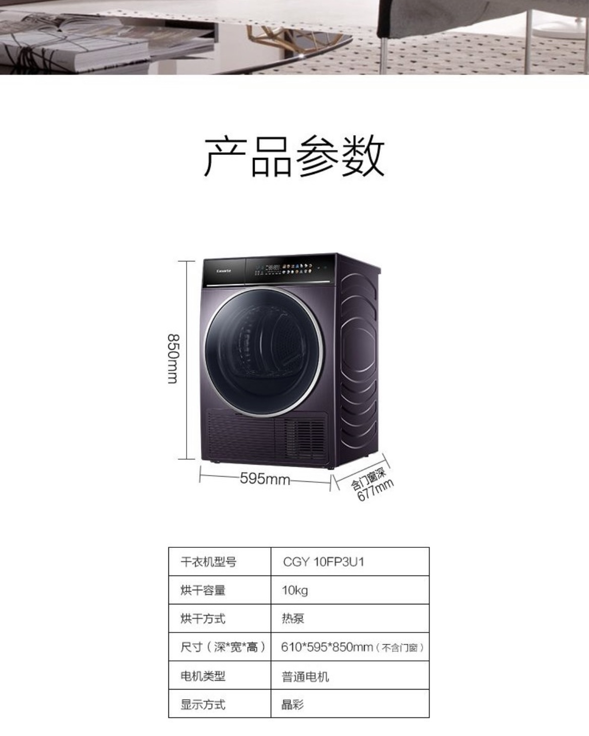 卡萨帝(Casarte)热泵烘干机CGY 10FP3U1 【晶钻紫】
