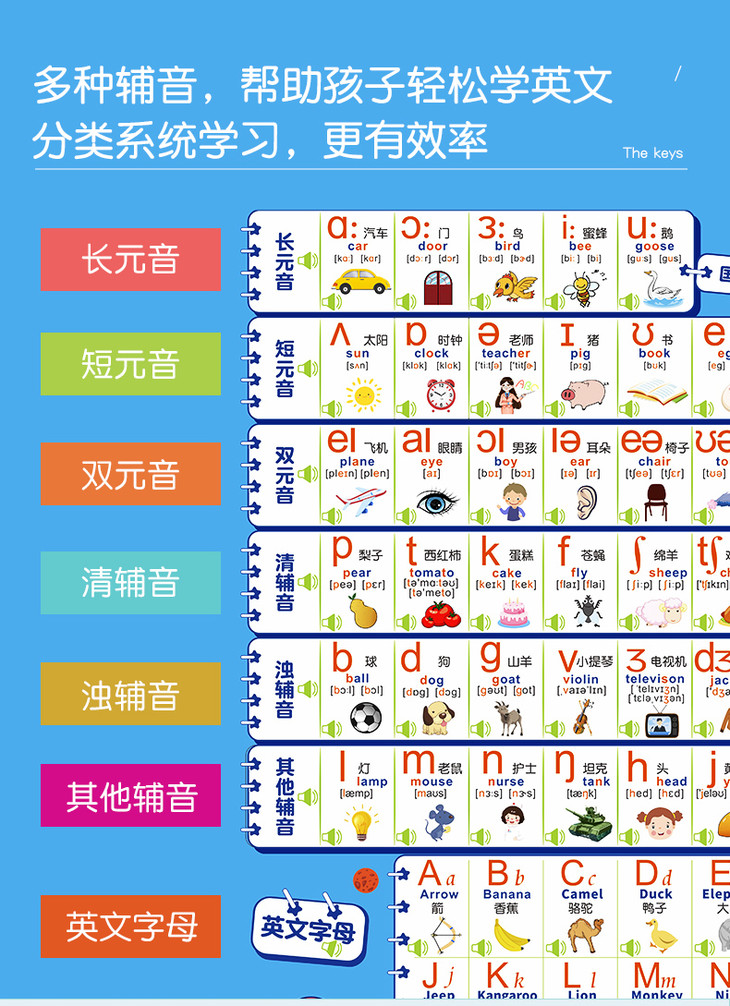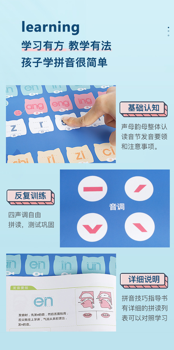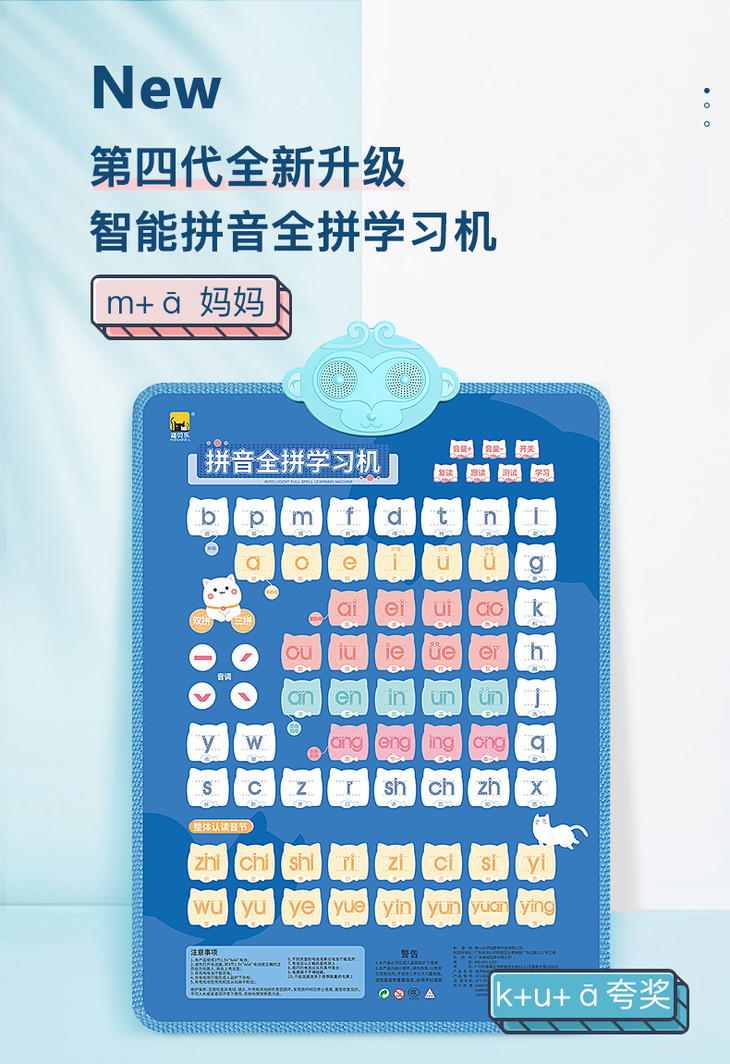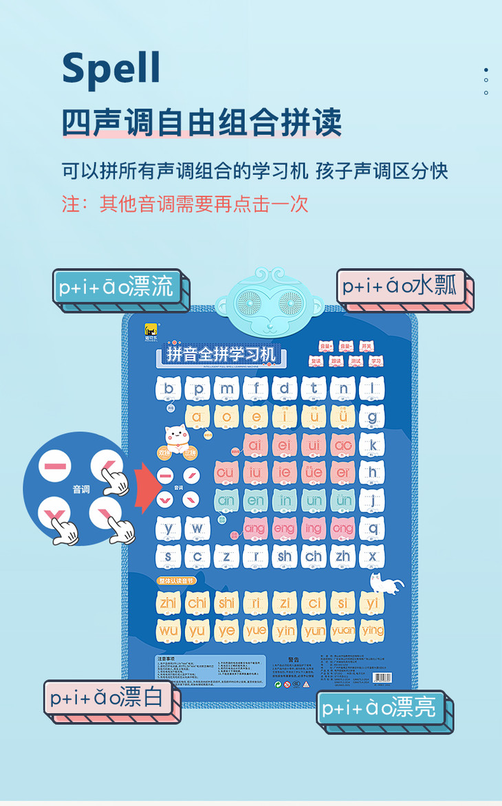 拼音4声调学习 拼音拼读训练 一年级汉语拼音学习神器拼读训练声母韵母表有声挂图识字墙贴全套 电子类