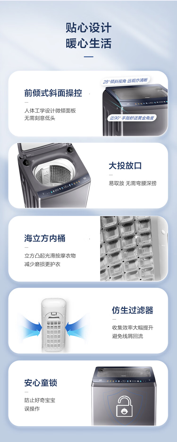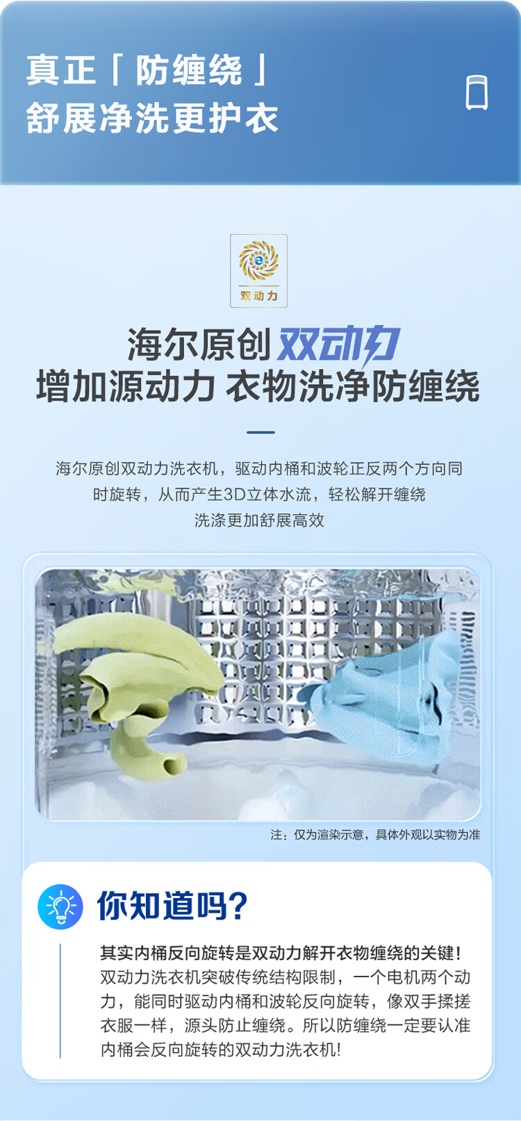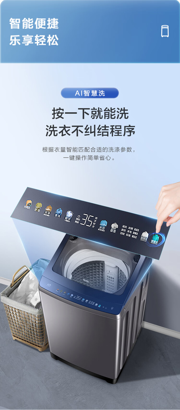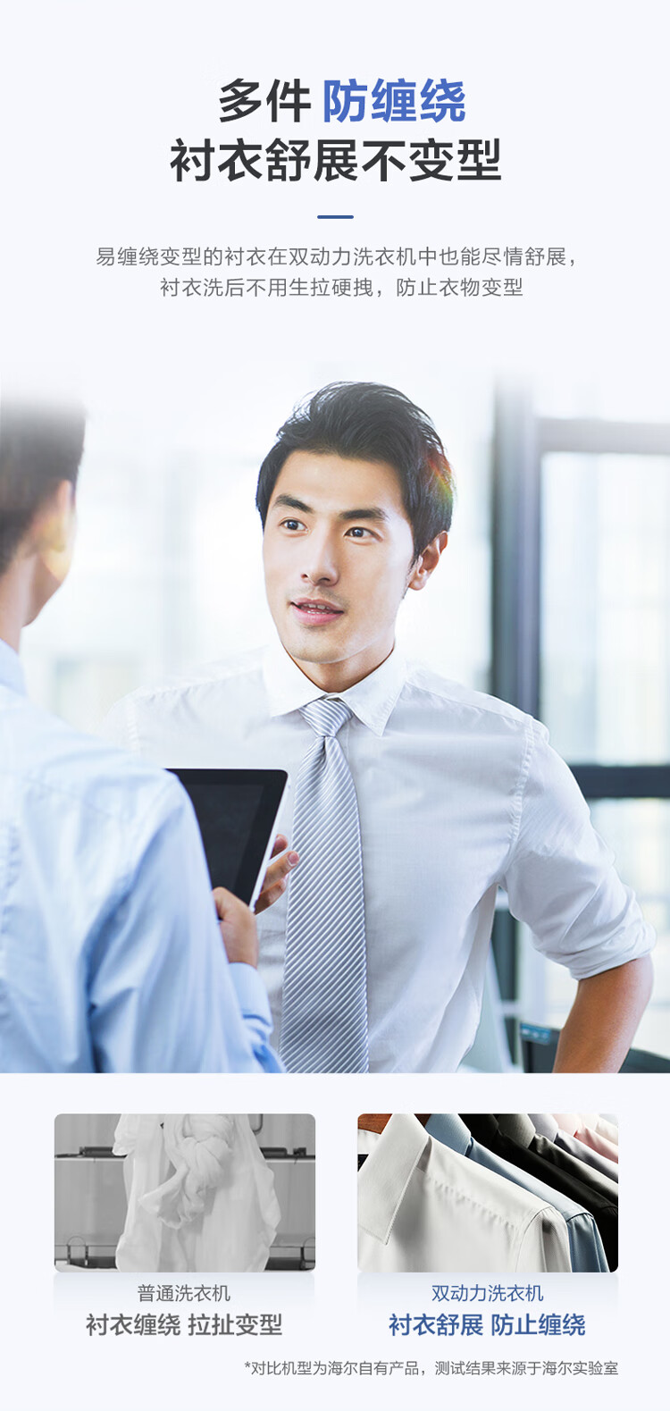 海尔(Haier)10公斤 波轮洗衣机 变频全自动 双动力系列 晶彩触控大屏 高洗净比 玻璃盖XQS100-BZ556