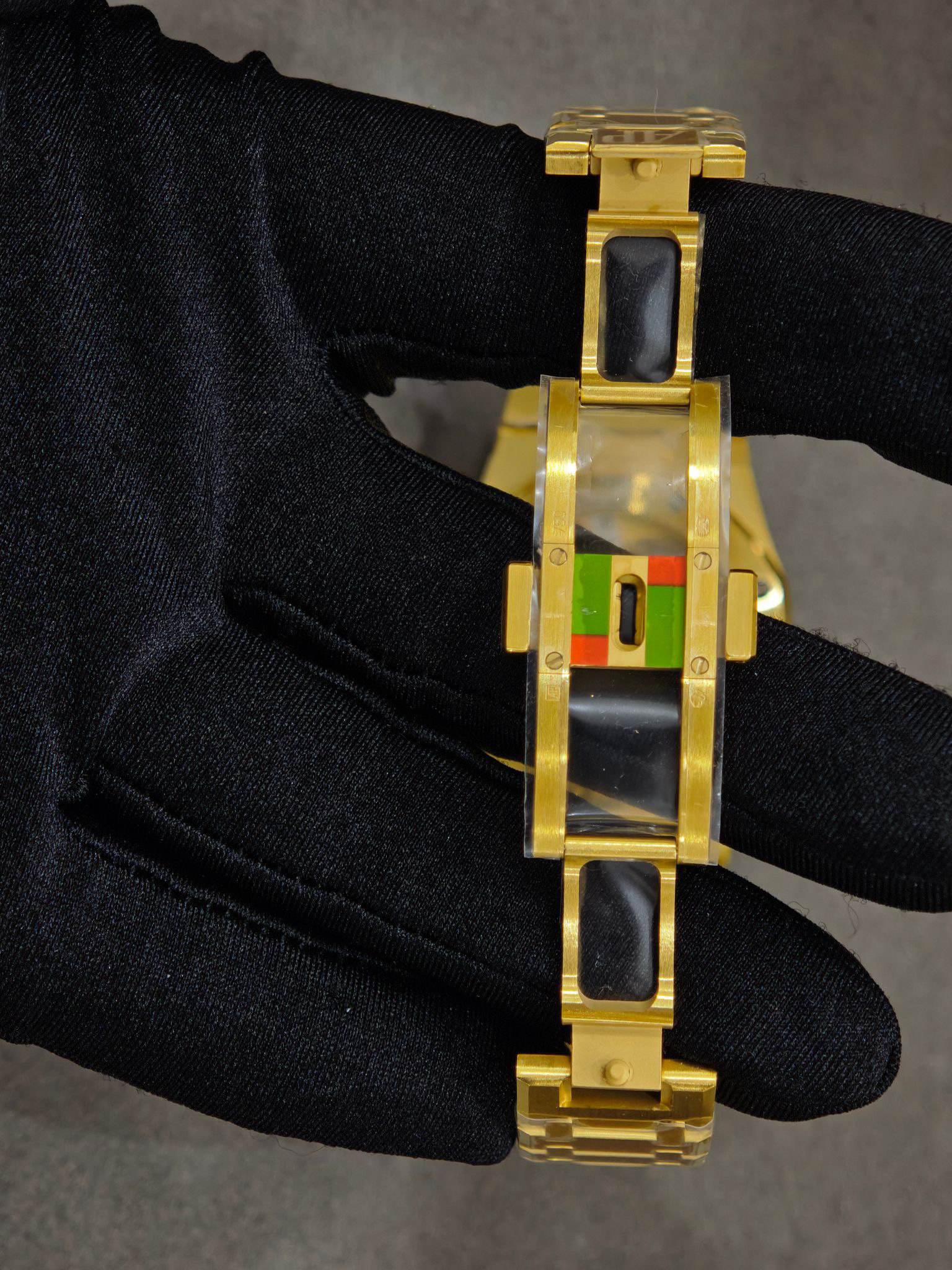 【壳套】高辨识度的八角形39MM表壳,采用先进的CNC数控加工技术对精钢原料进行初步切割与塑形,再使用精湛的拉丝工艺和锻面抛光处理在表壳上完美交织,呈现出独特光泽与质感。表带链节同样经过多道复杂打磨抛光工序制作,使链节表面细腻感十足,衔接紧密且灵活。确保佩带时的舒适度与贴合度。表扣上的AP标志,经过精雕细刻,线条清晰,钢硬立体。在表壳侧面,表耳与表带自然衔接,过渡圆润,展现出浑然一体的和谐美感!