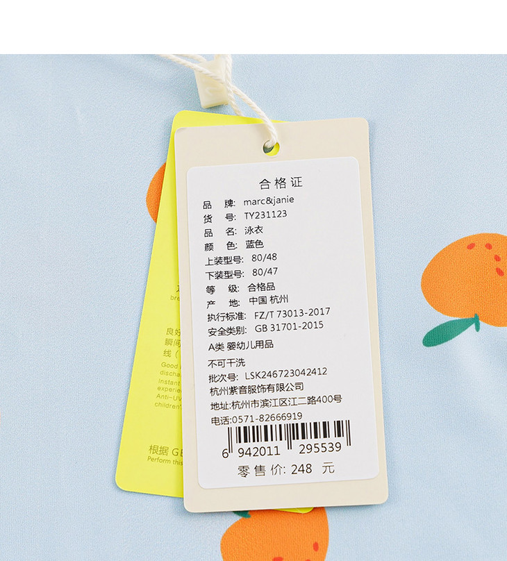 【凉感防晒】马克珍妮夏装新款女童趣味图案游泳衣分体泳衣231123