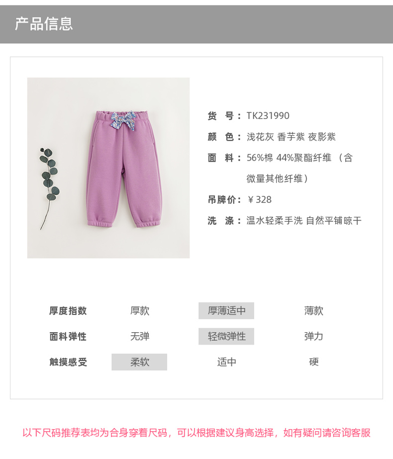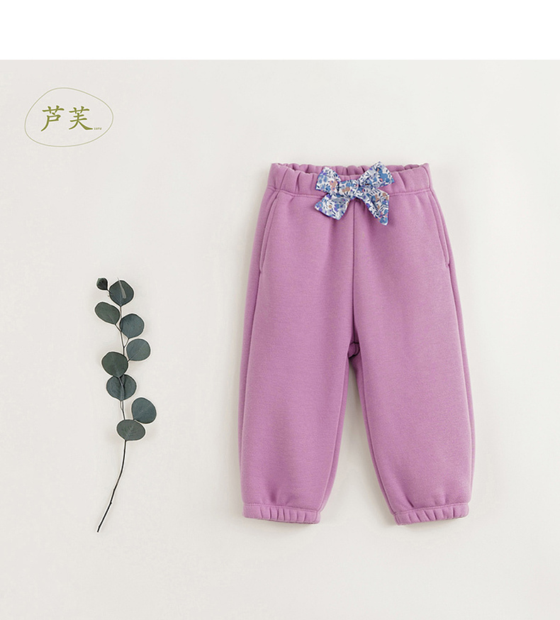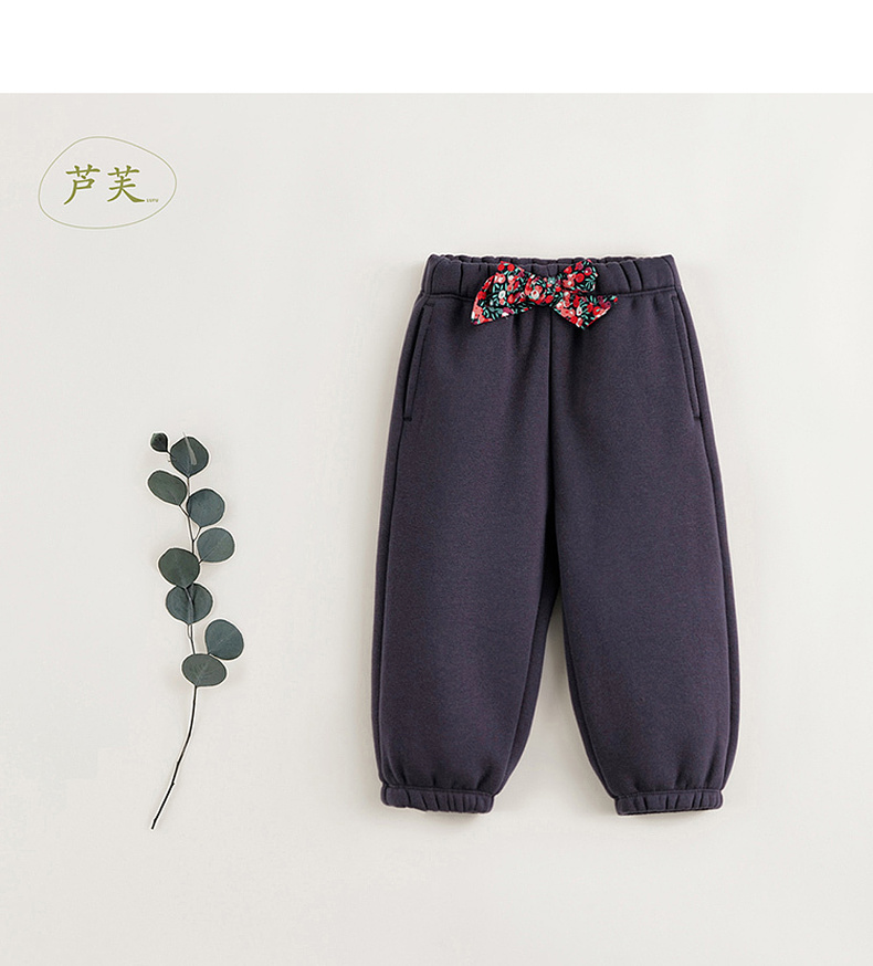 【马克珍妮 芦芙】冬装新款 女童蝴蝶结加绒加厚保暖运动裤231990
