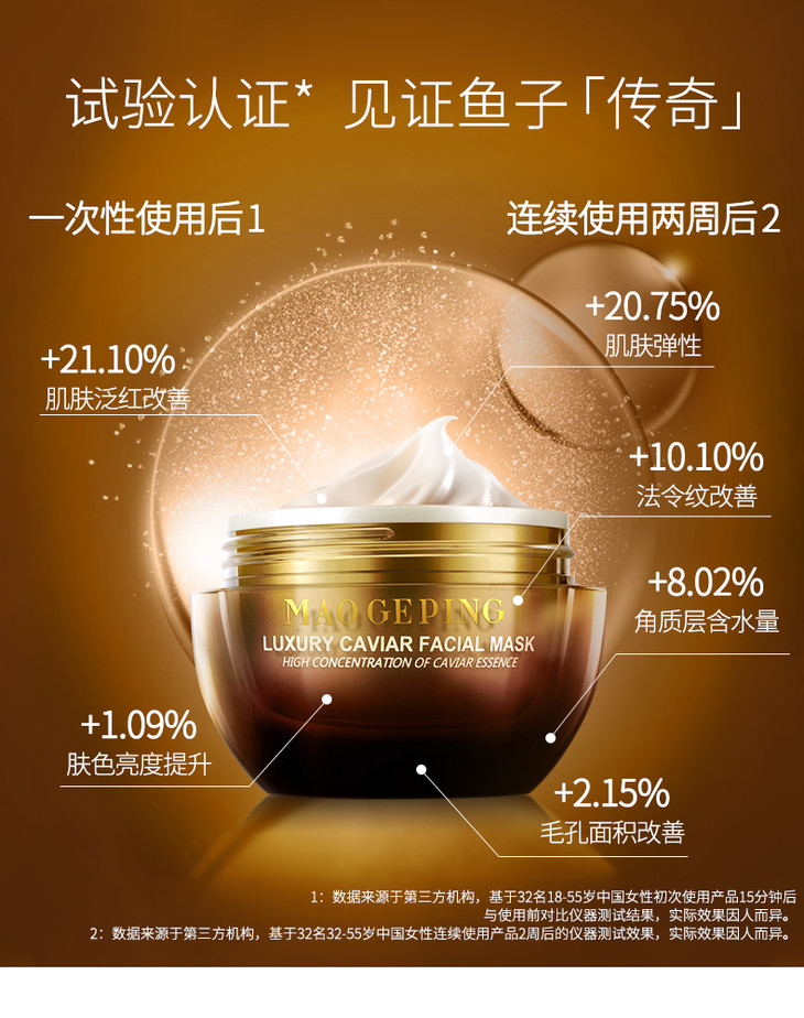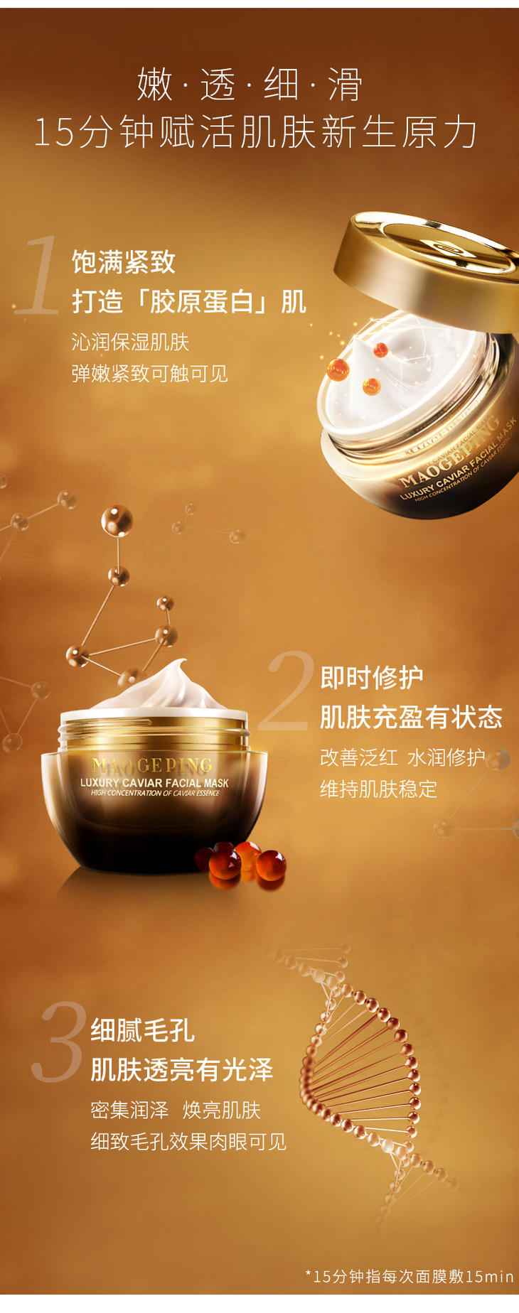 「奢华鱼子酱面膜」毛戈平MAOGEPING奢华鱼子面膜密集修护补水保湿提亮 嫩透细滑 滋润面膜