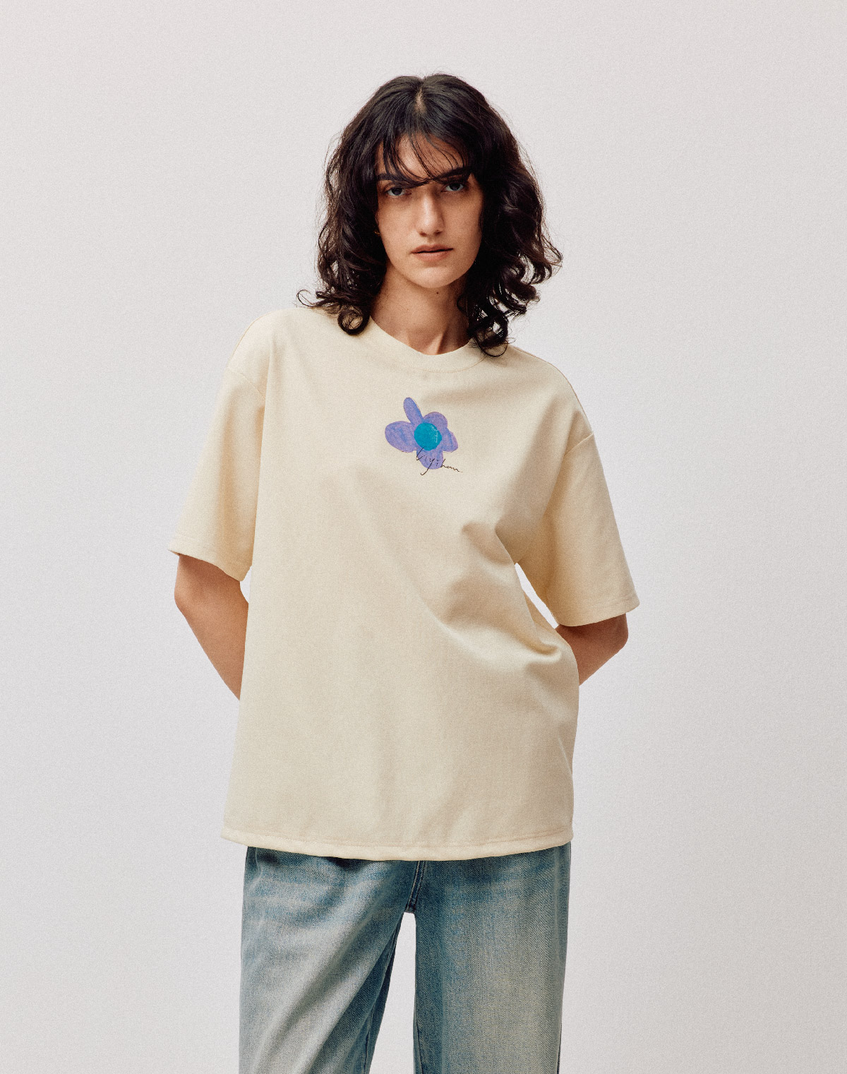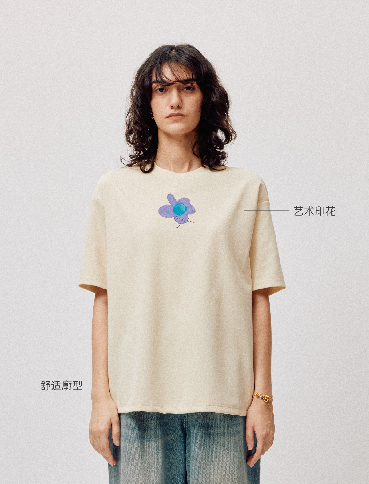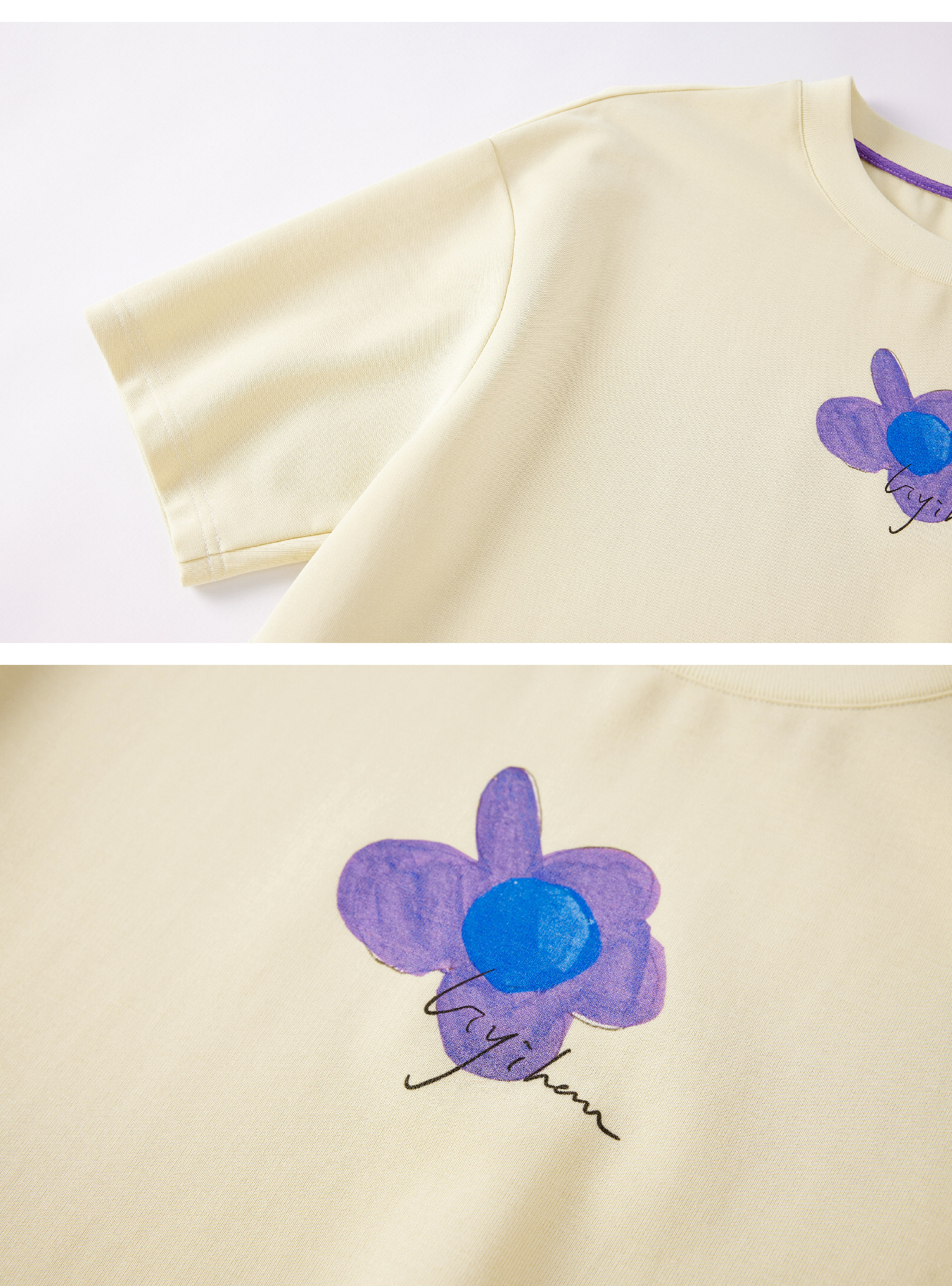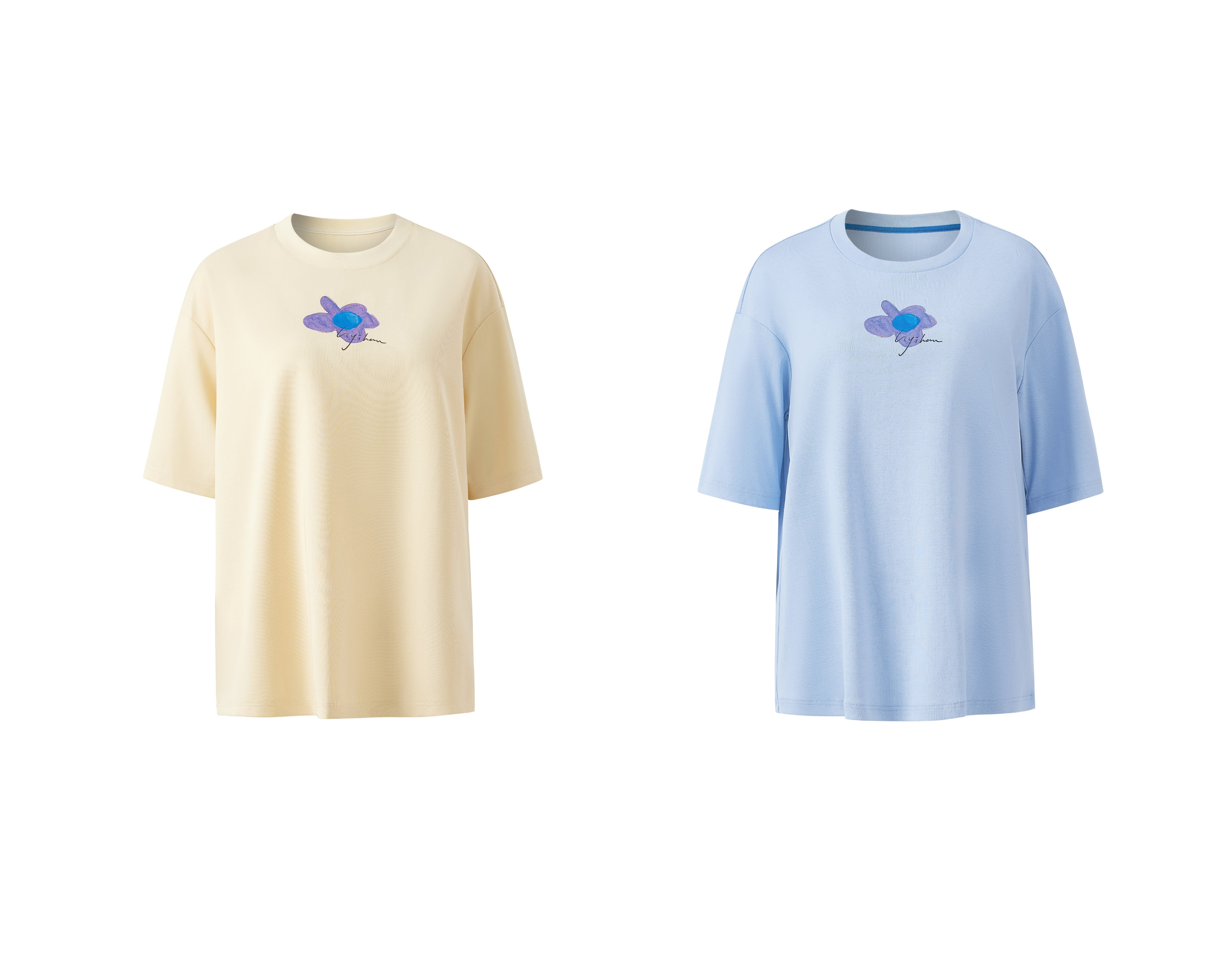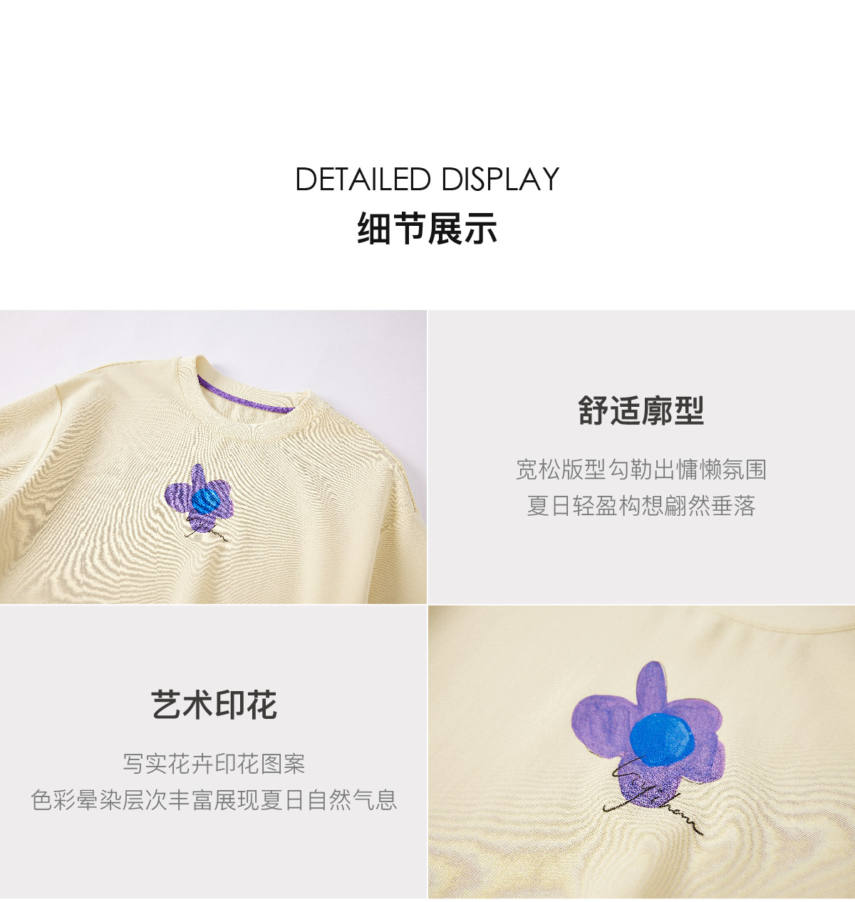 LIYIHAN序章 高端爽滑裸感棉印花花朵针织T恤宽松短袖时尚感