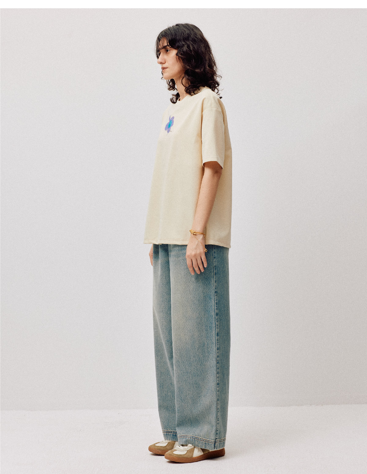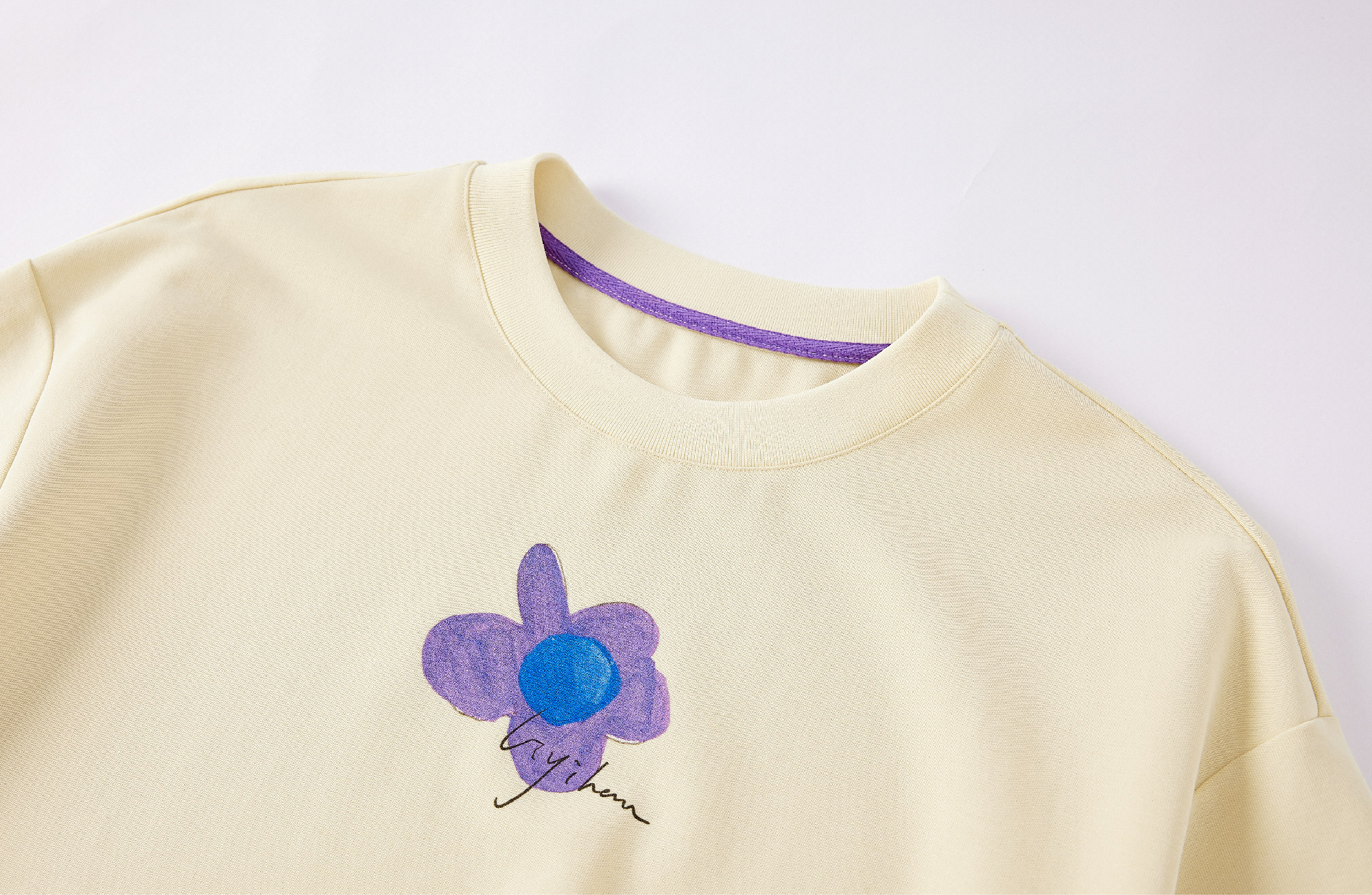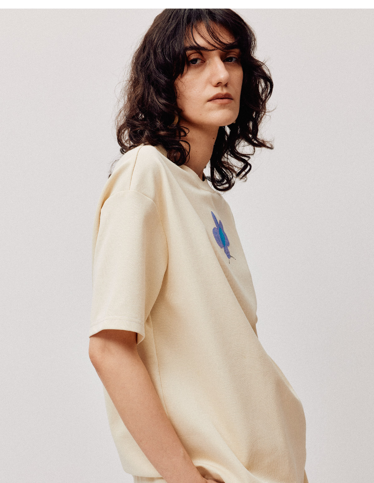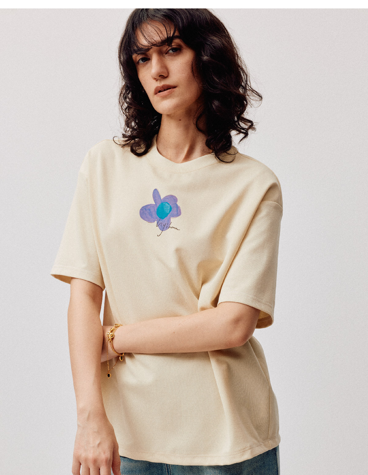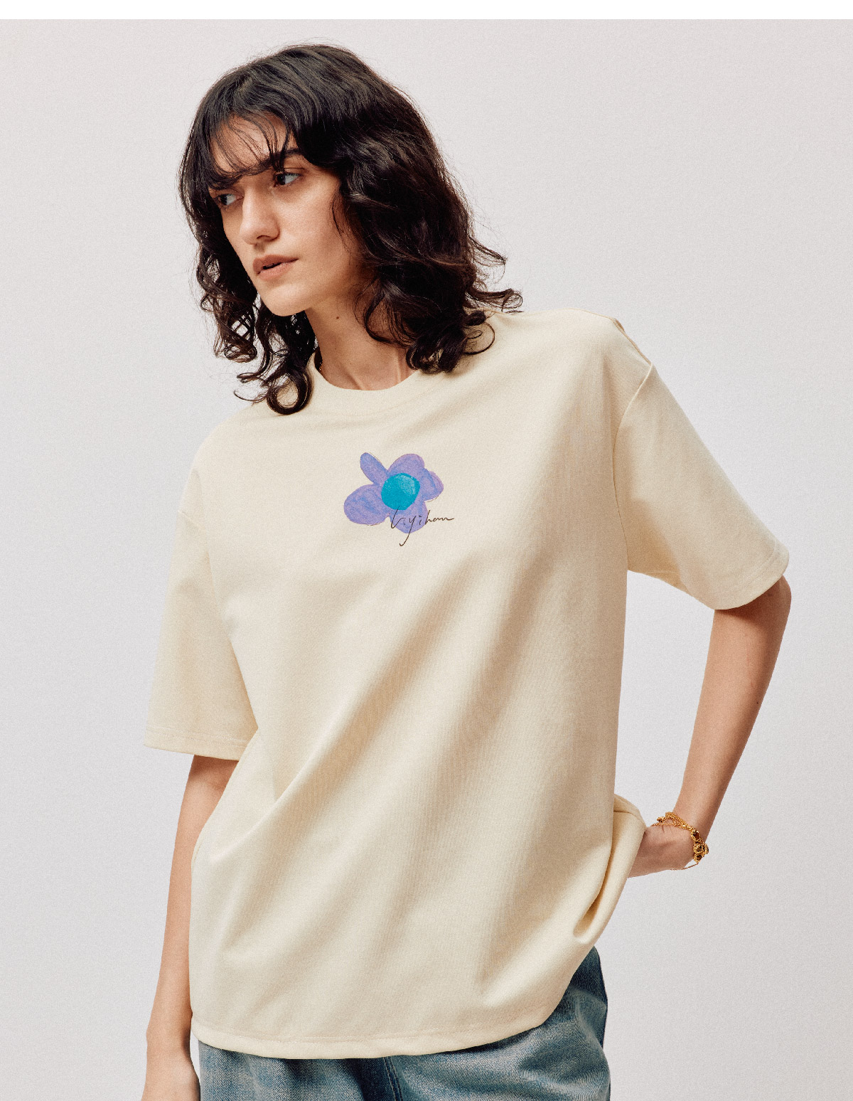 LIYIHAN序章 高端爽滑裸感棉印花花朵针织T恤宽松短袖时尚感