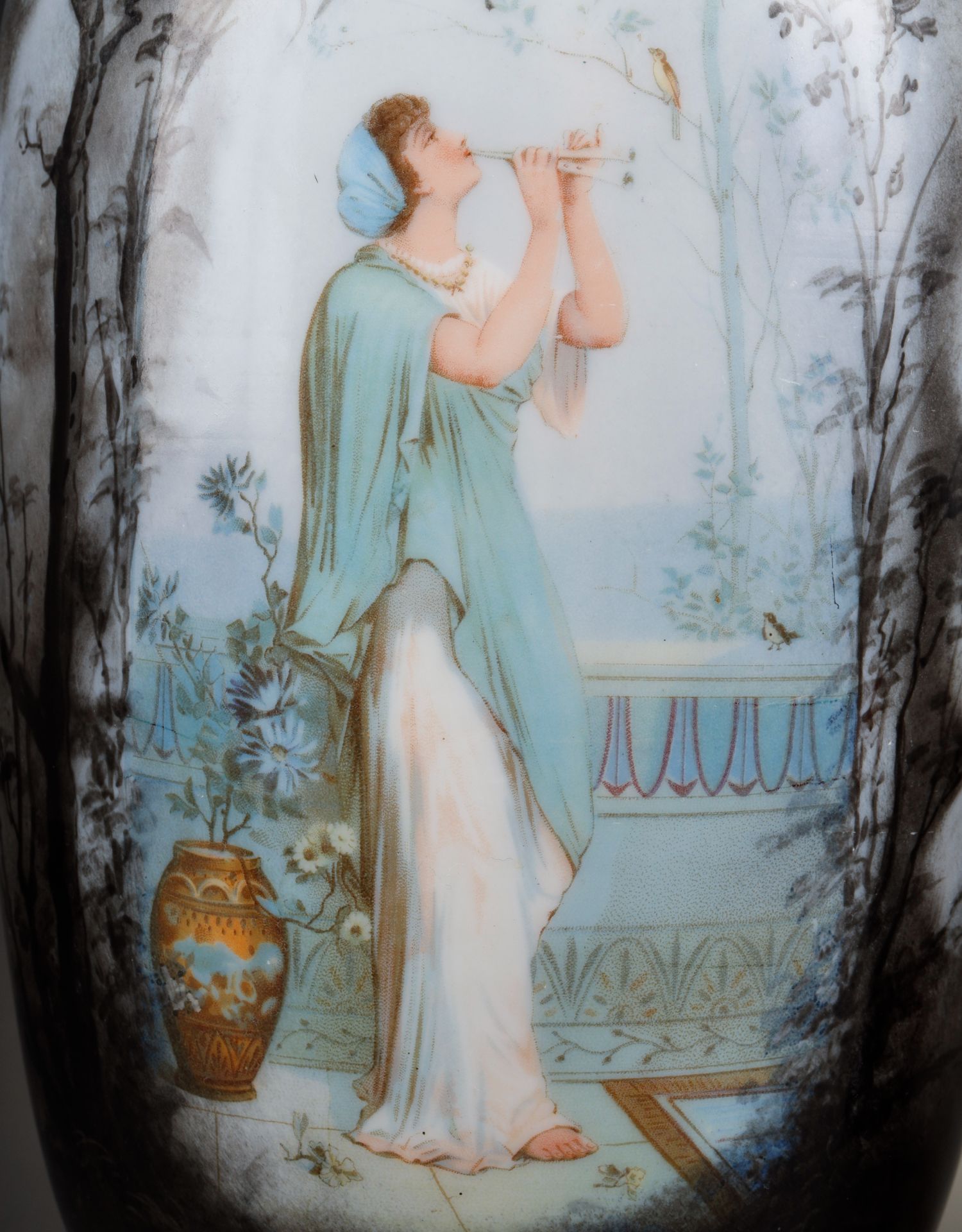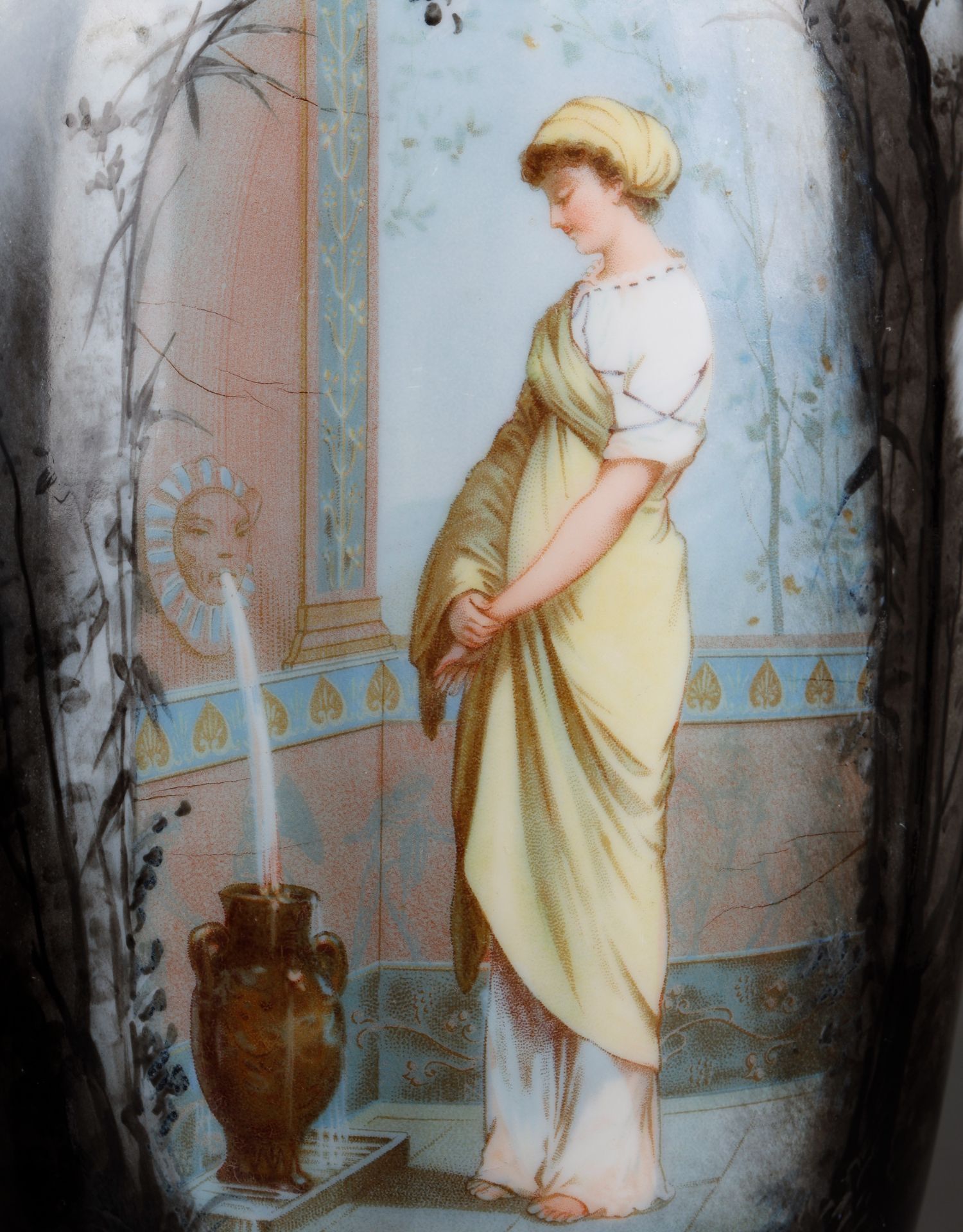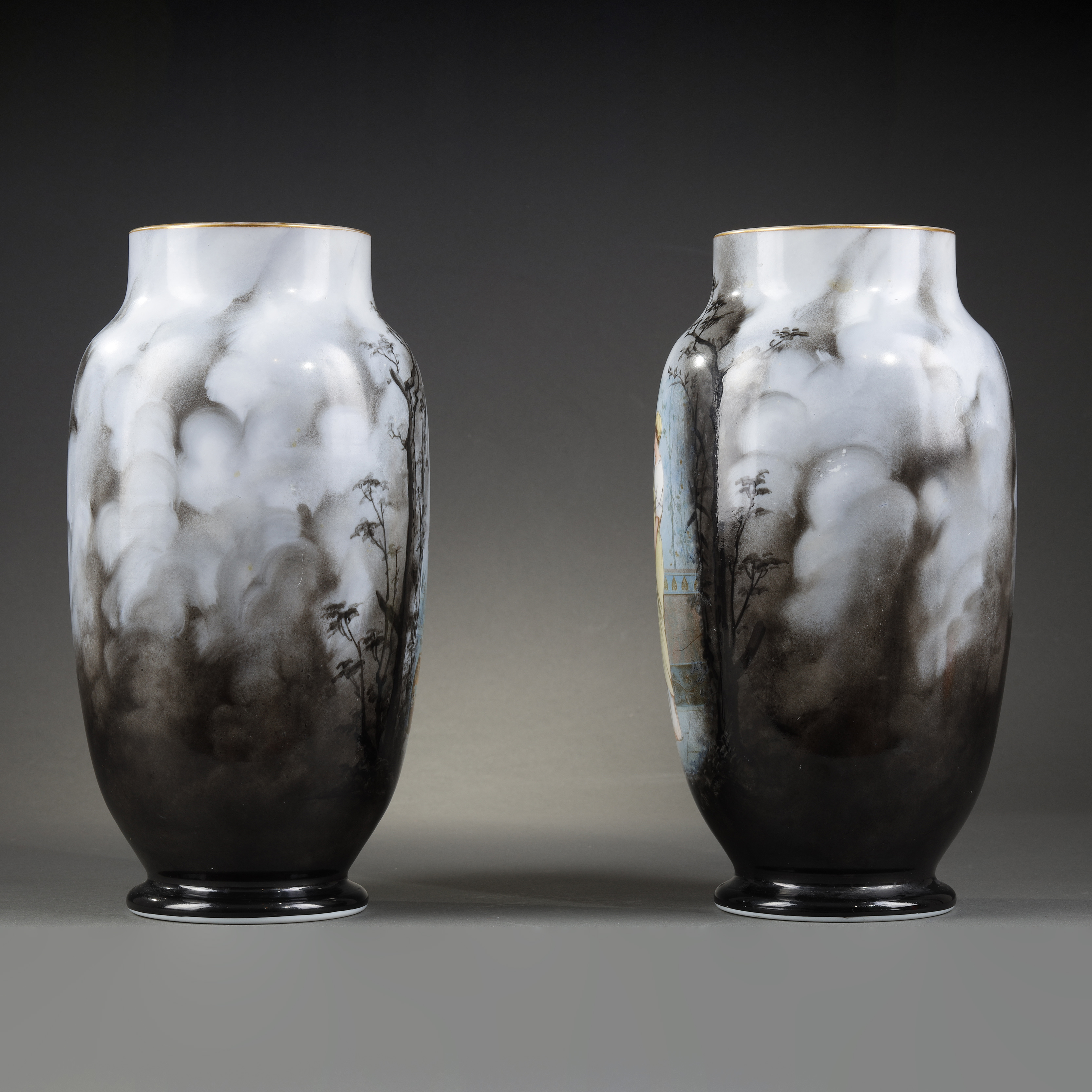 独角鹿西洋古董瓷器法国出品新艺术风格少女主题欧珀水晶花瓶一对