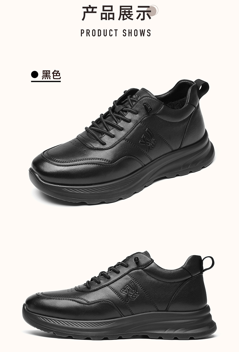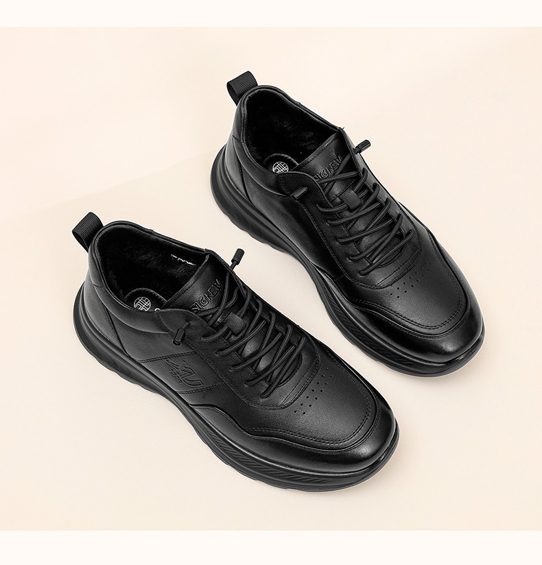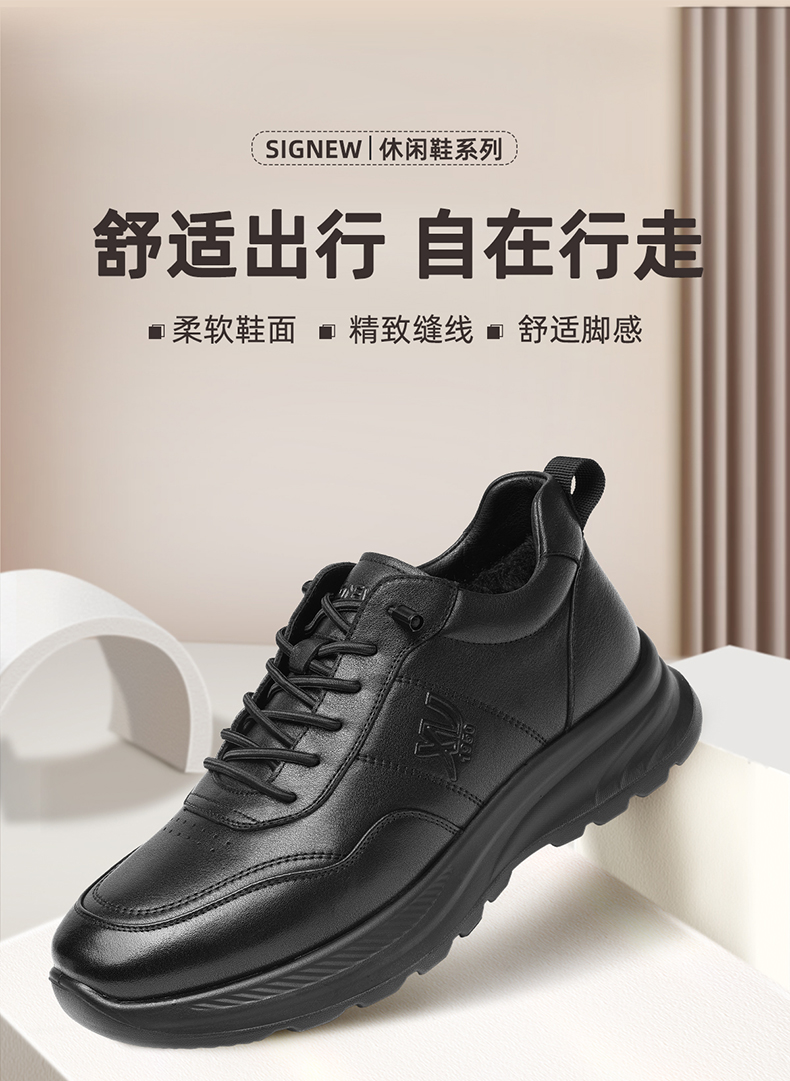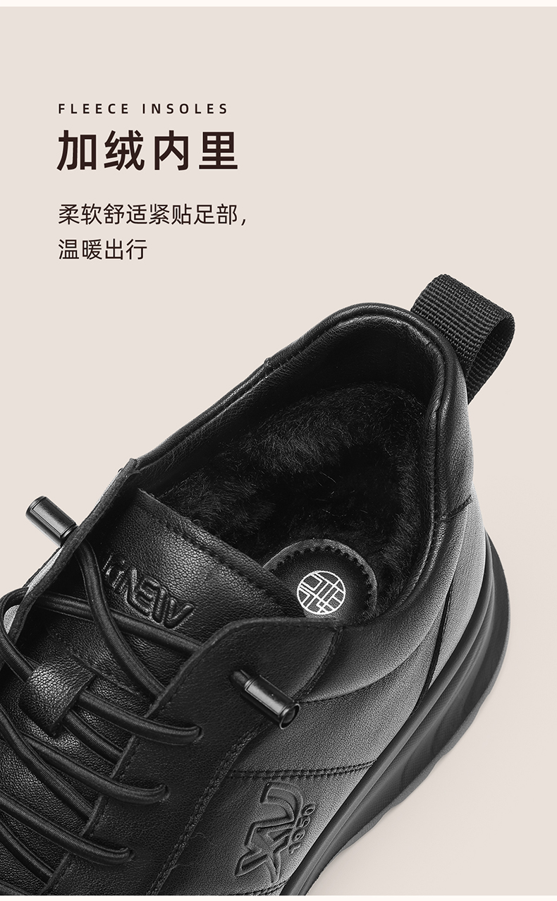 男士休闲皮鞋真皮软底舒适爸爸鞋中老年加绒保暖棉鞋2025冬季新款N5M115-243Z