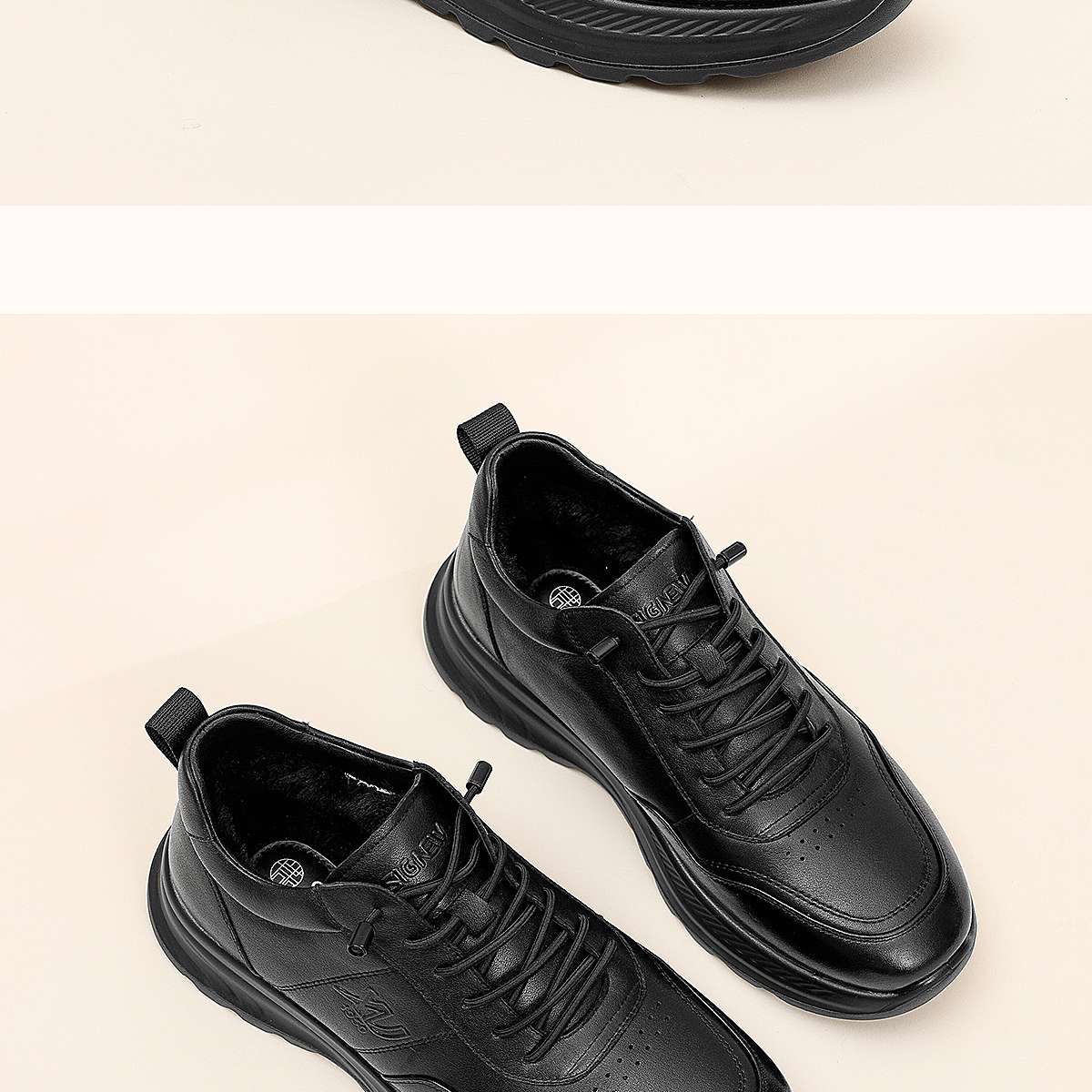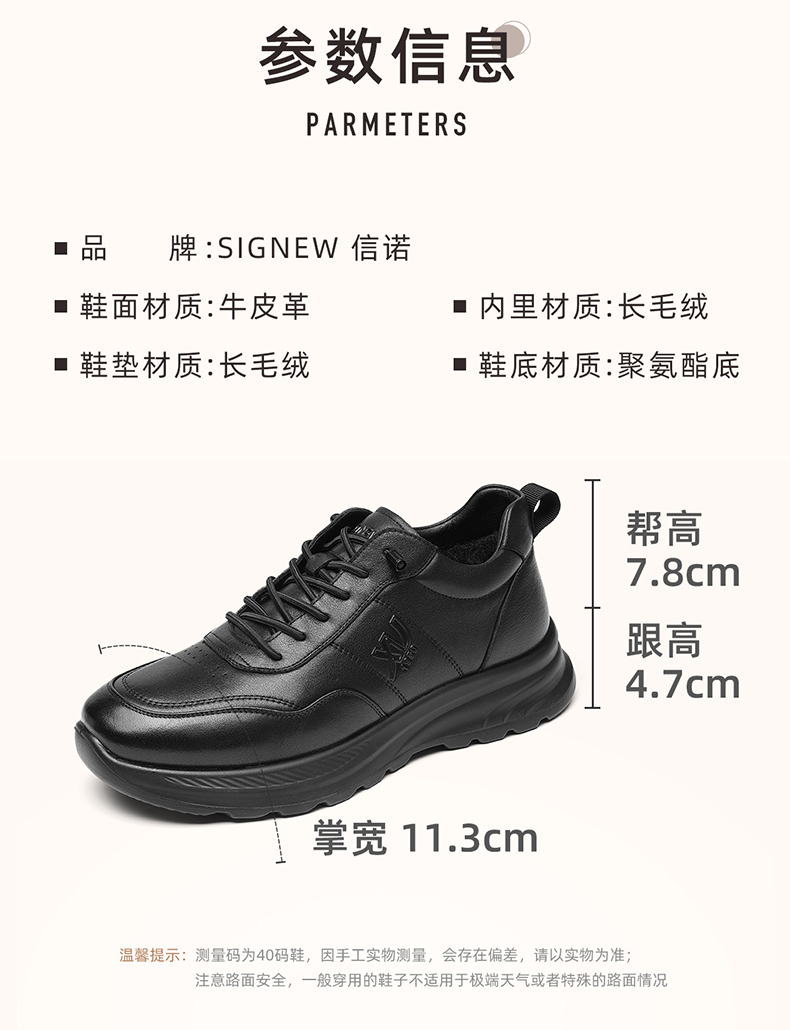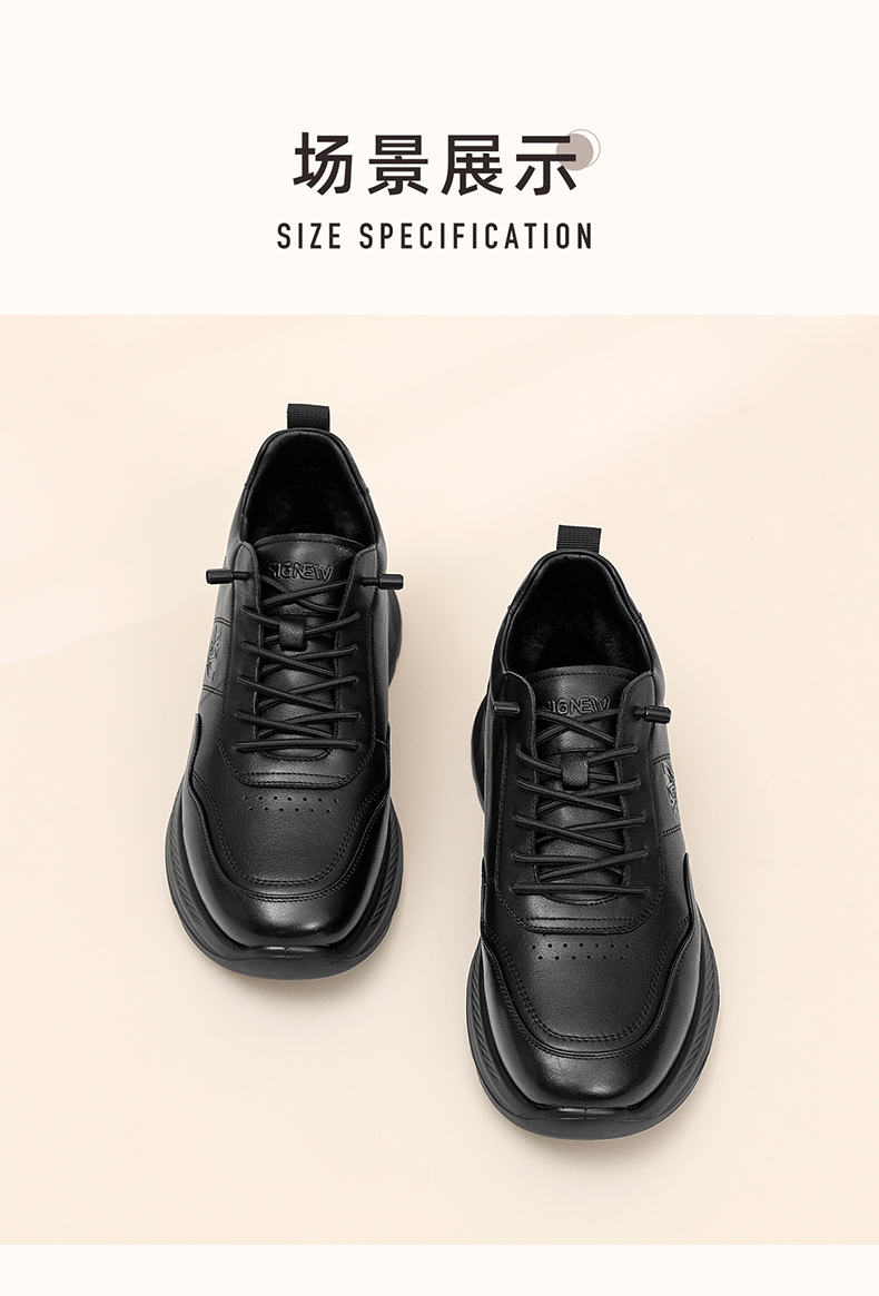 男士休闲皮鞋真皮软底舒适爸爸鞋中老年加绒保暖棉鞋2025冬季新款N5M115-243Z