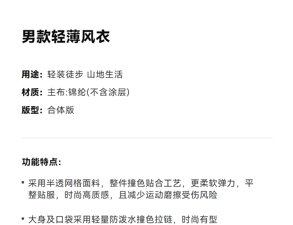 KAILAS凯乐石 男款轻薄风衣 KG2526108【Z】