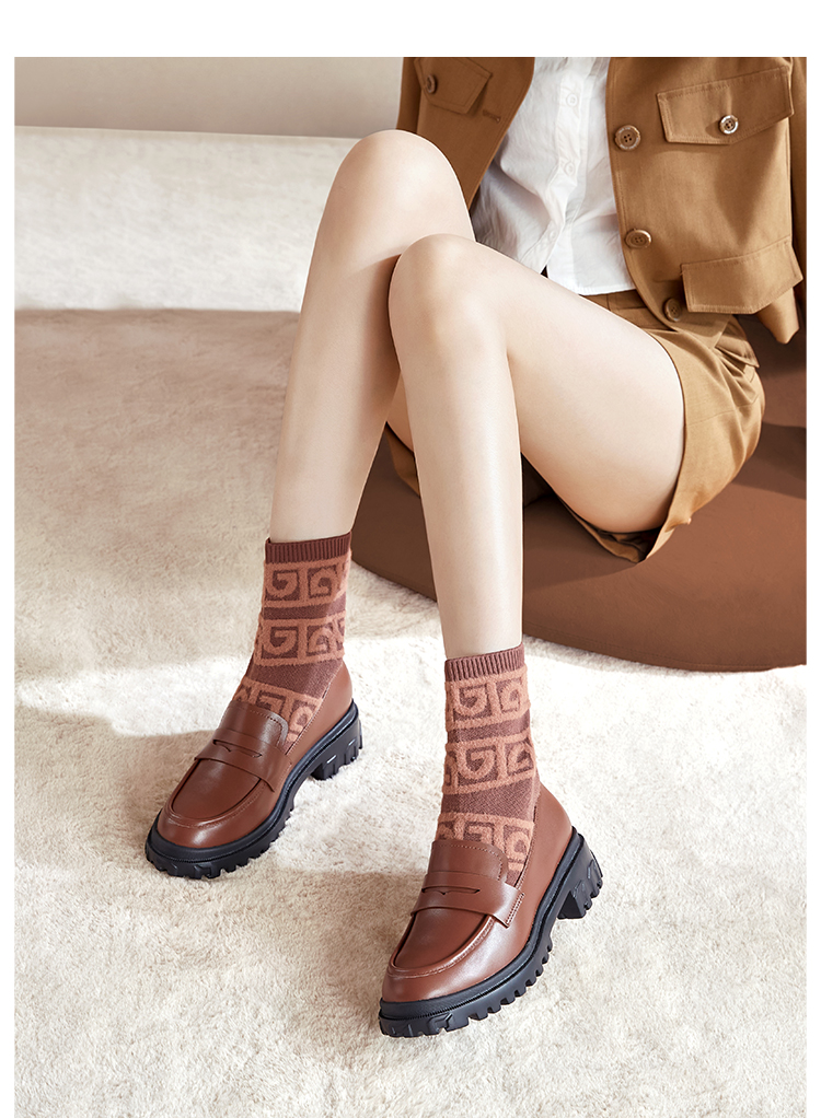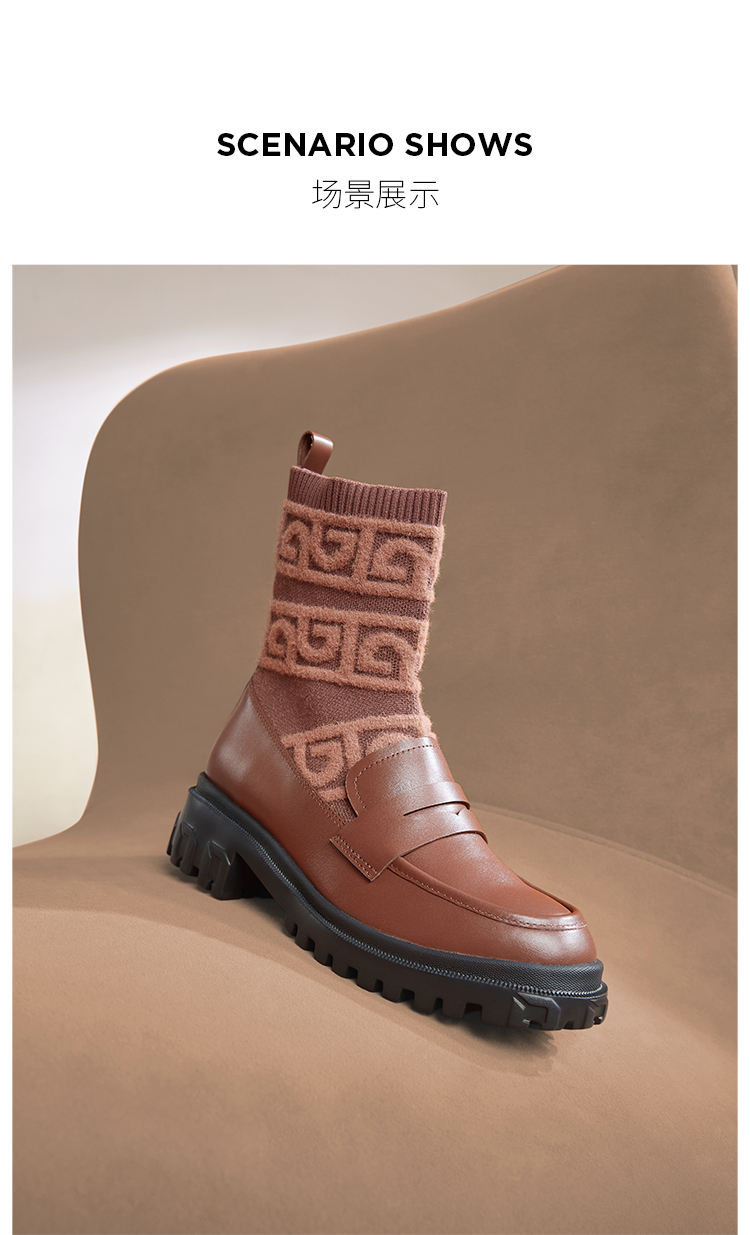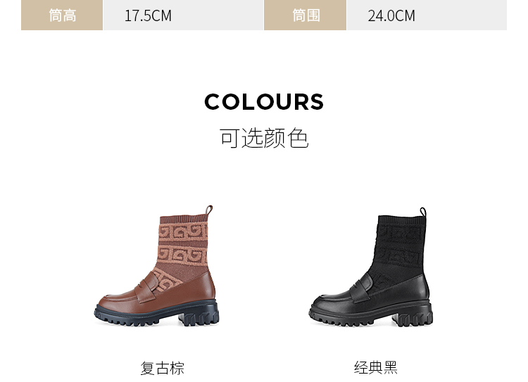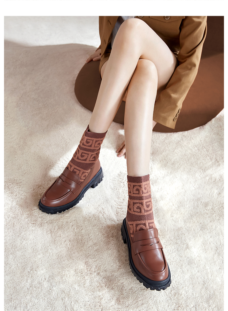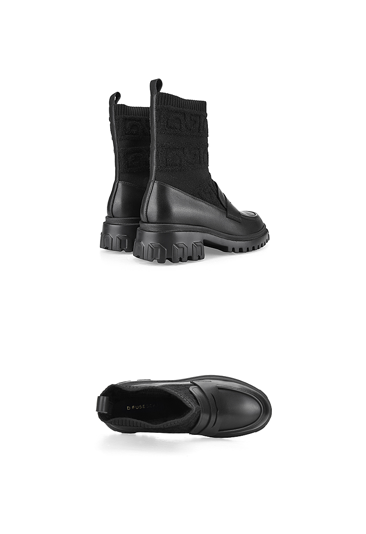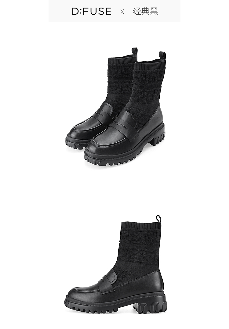 Dfuse迪芙斯2023冬季新款圆头针织弹力袜靴乐福短靴女DF34116006
