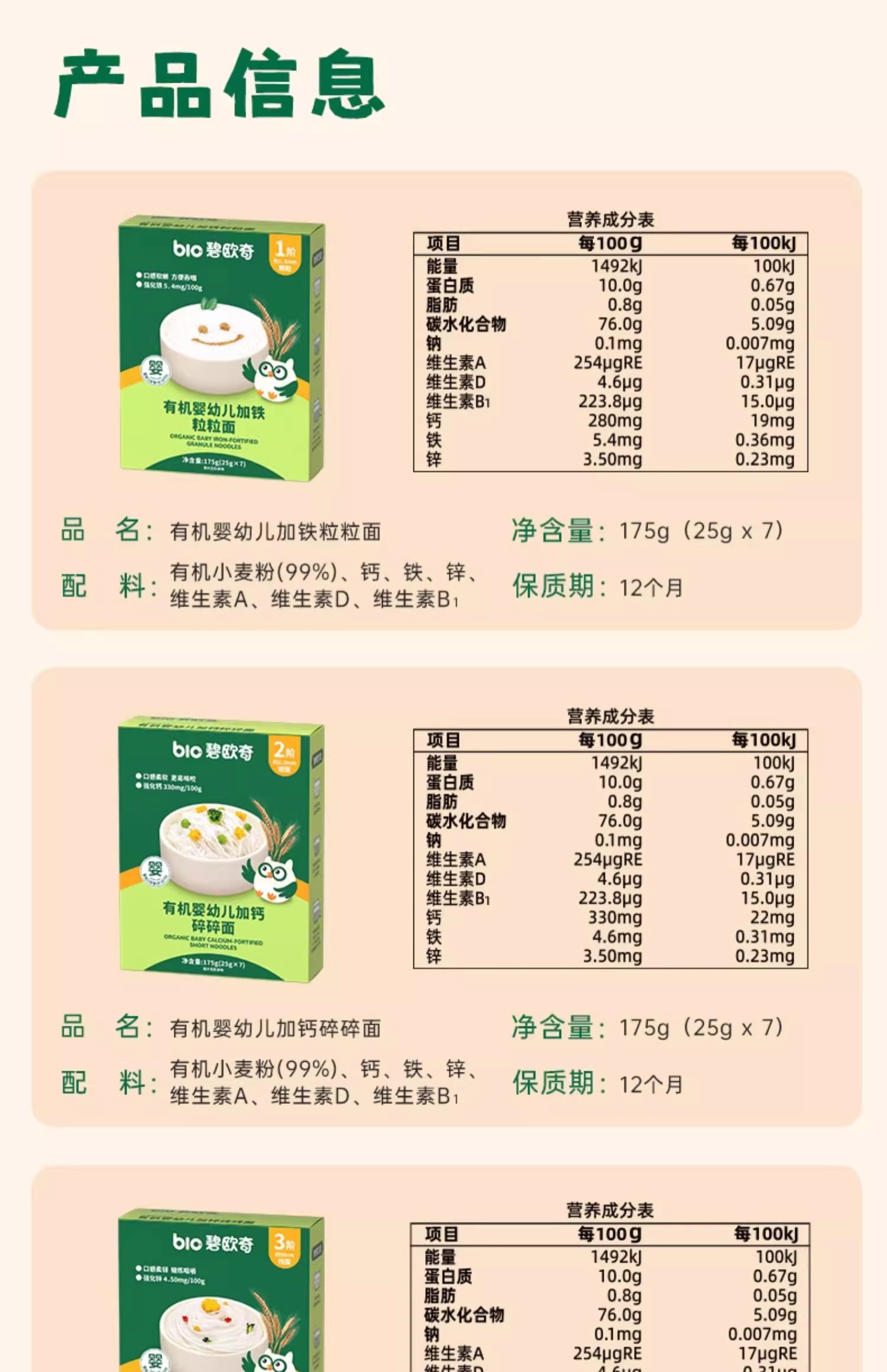 碧欧齐有机婴幼儿面条类