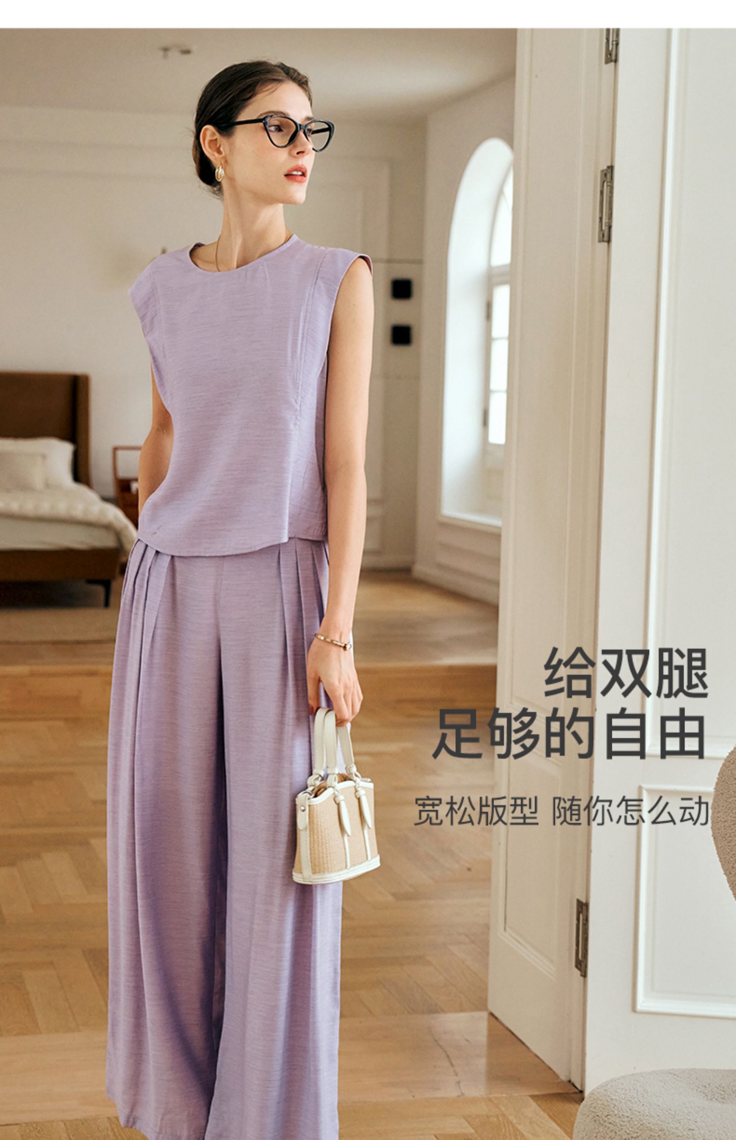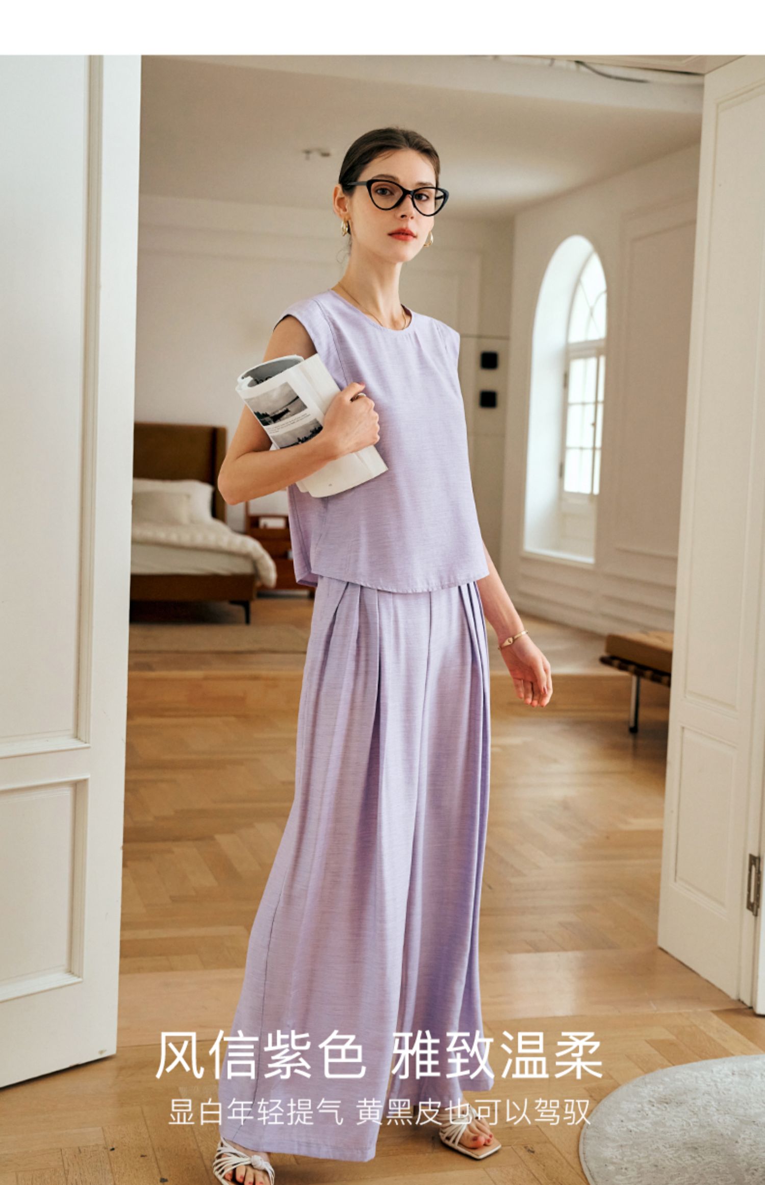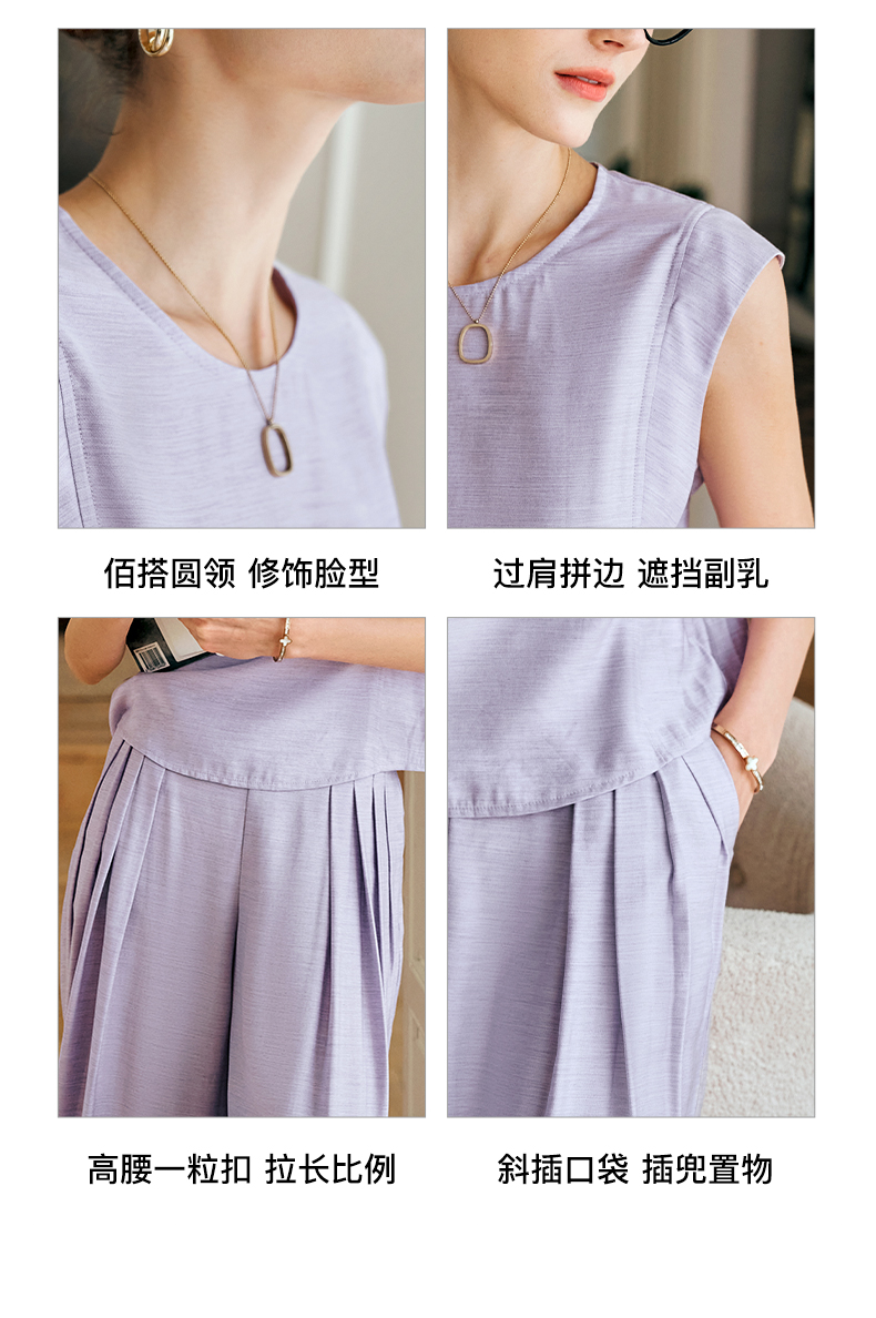 OLrain欧芮儿紫色时尚套装女夏季2024新款通勤高级感度假风两件套