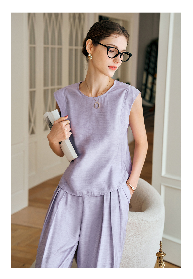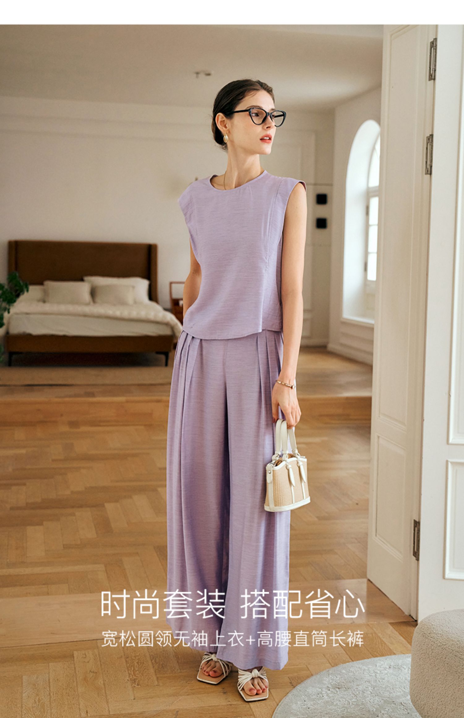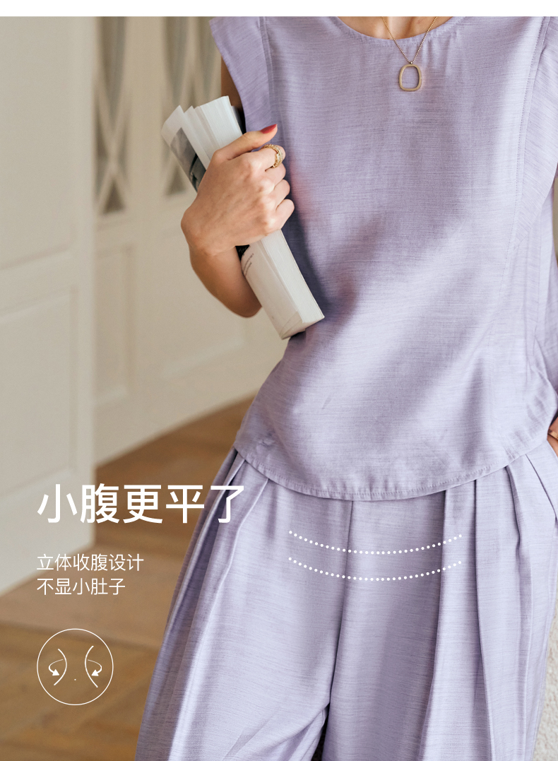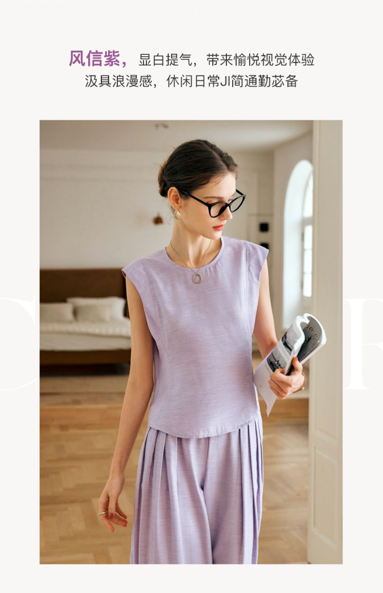OLrain欧芮儿紫色时尚套装女夏季2024新款通勤高级感度假风两件套
