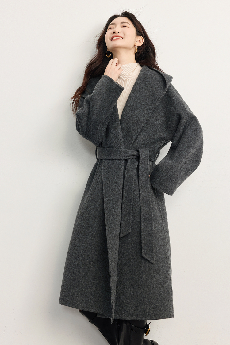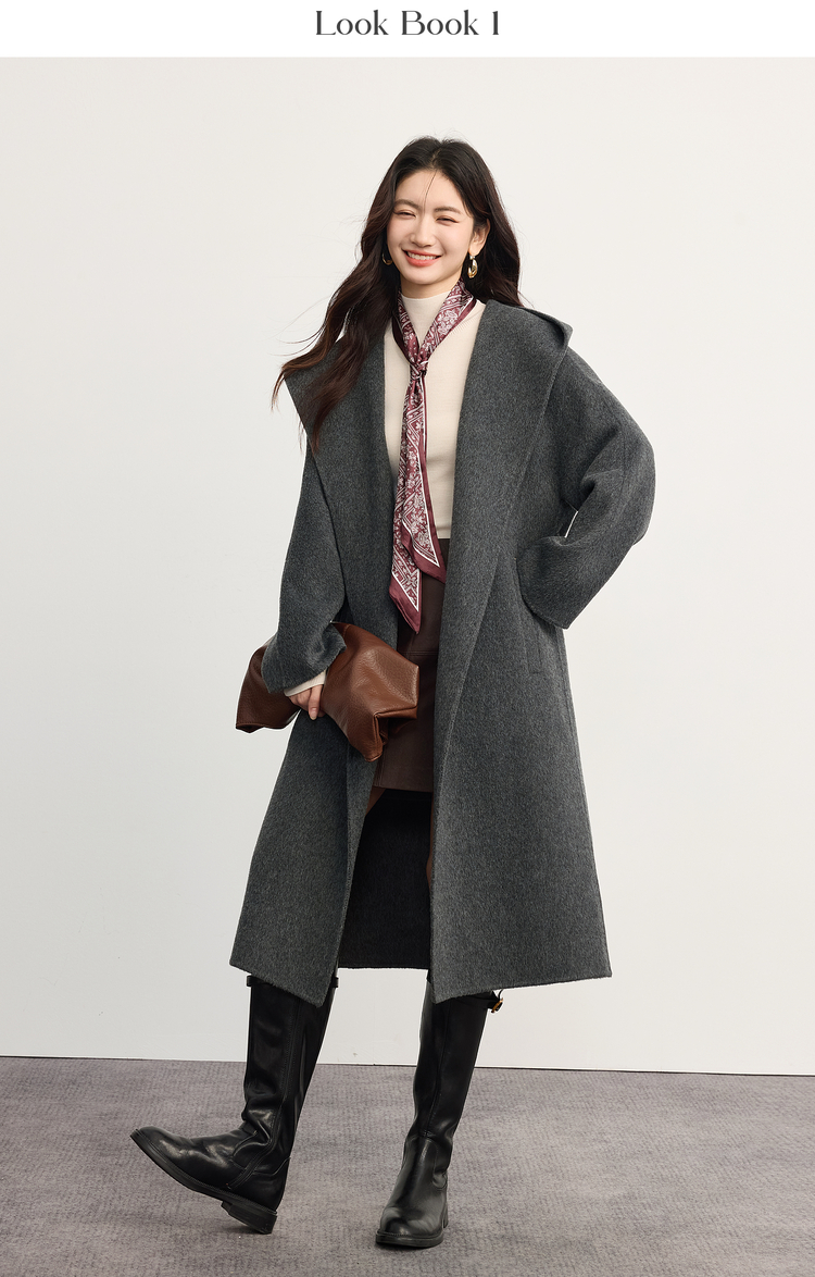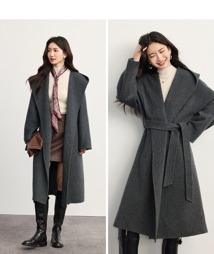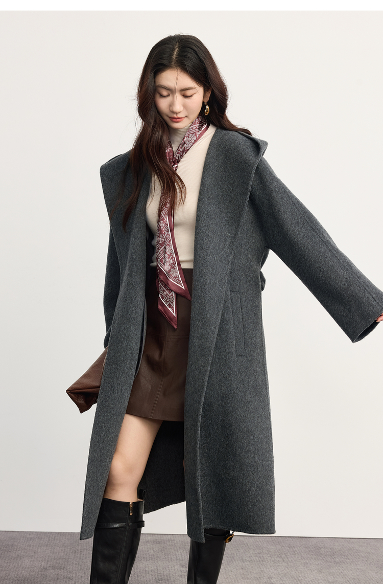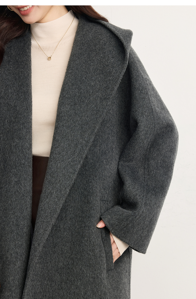 【10/23新品】熙世界斗篷式100.%羊毛双面呢大衣女连帽秋冬季宽松长款毛呢外套