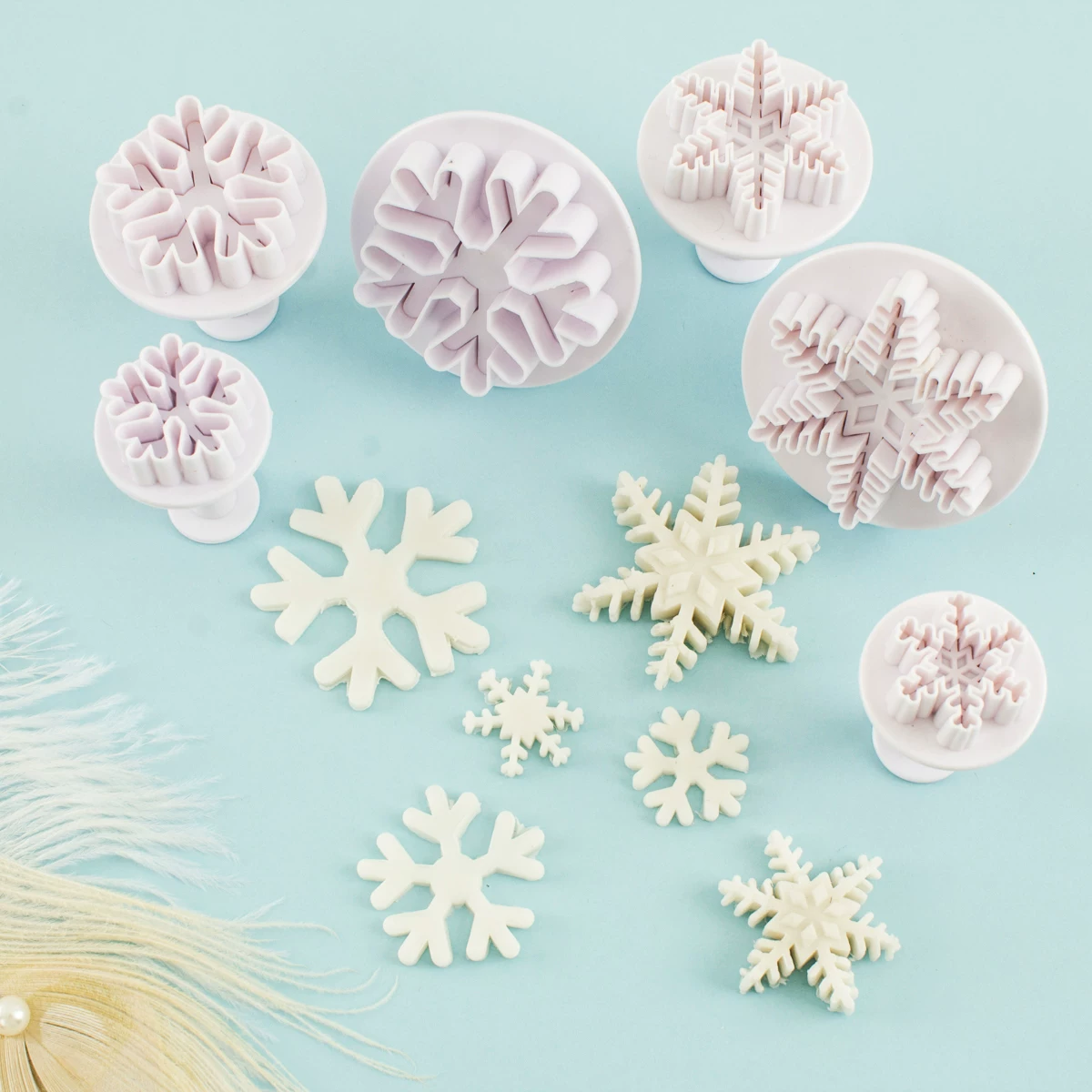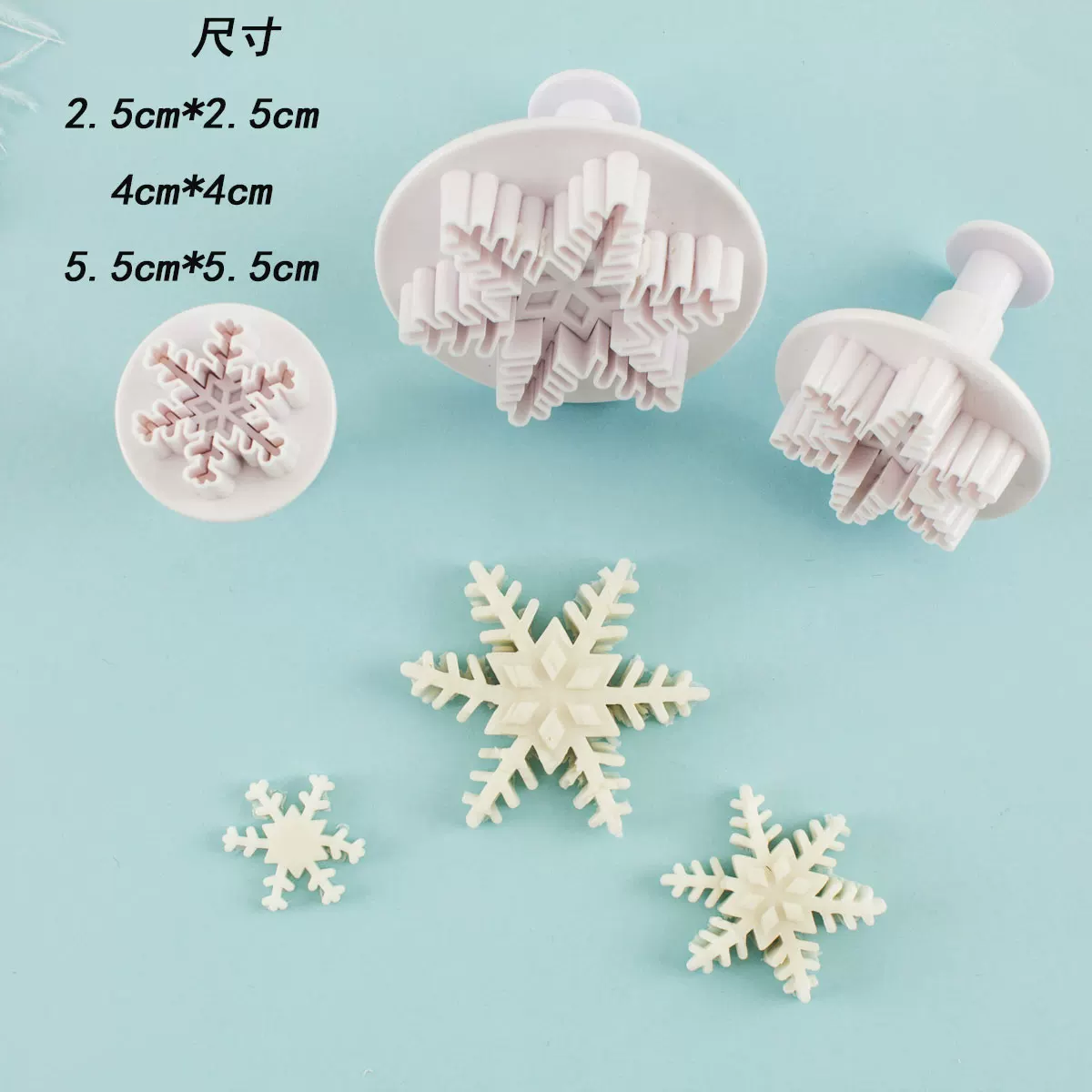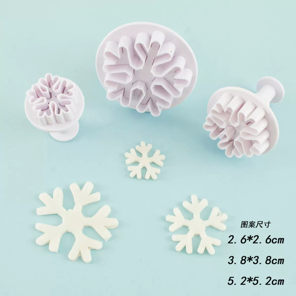 圣诞雪花饼干模3件套 粗雪花/细雪花 弹簧按压模 翻糖印花饼干切模