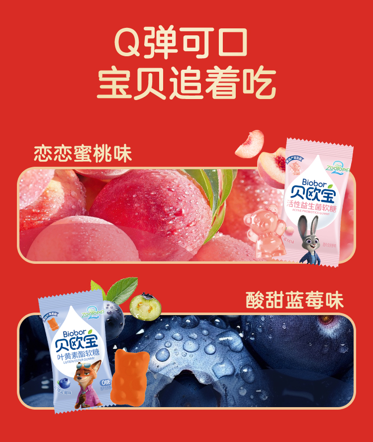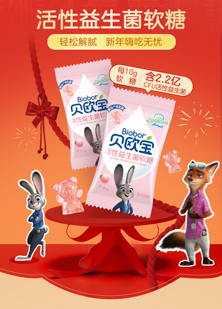 贝欧宝软糖活性益生菌乳酸菌软糖qq糖橡皮糖网红糖果儿童零食小熊