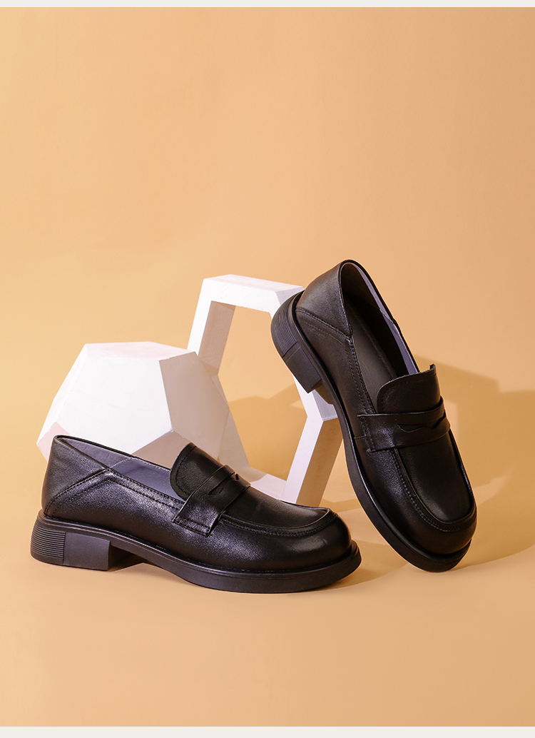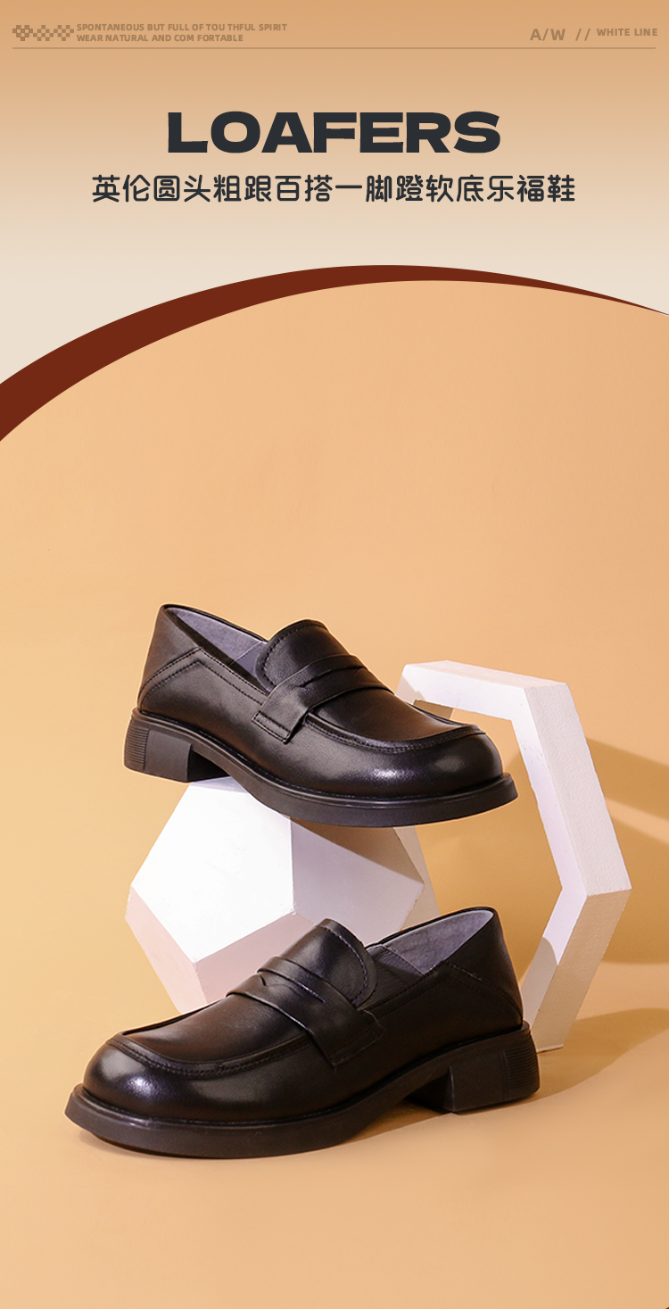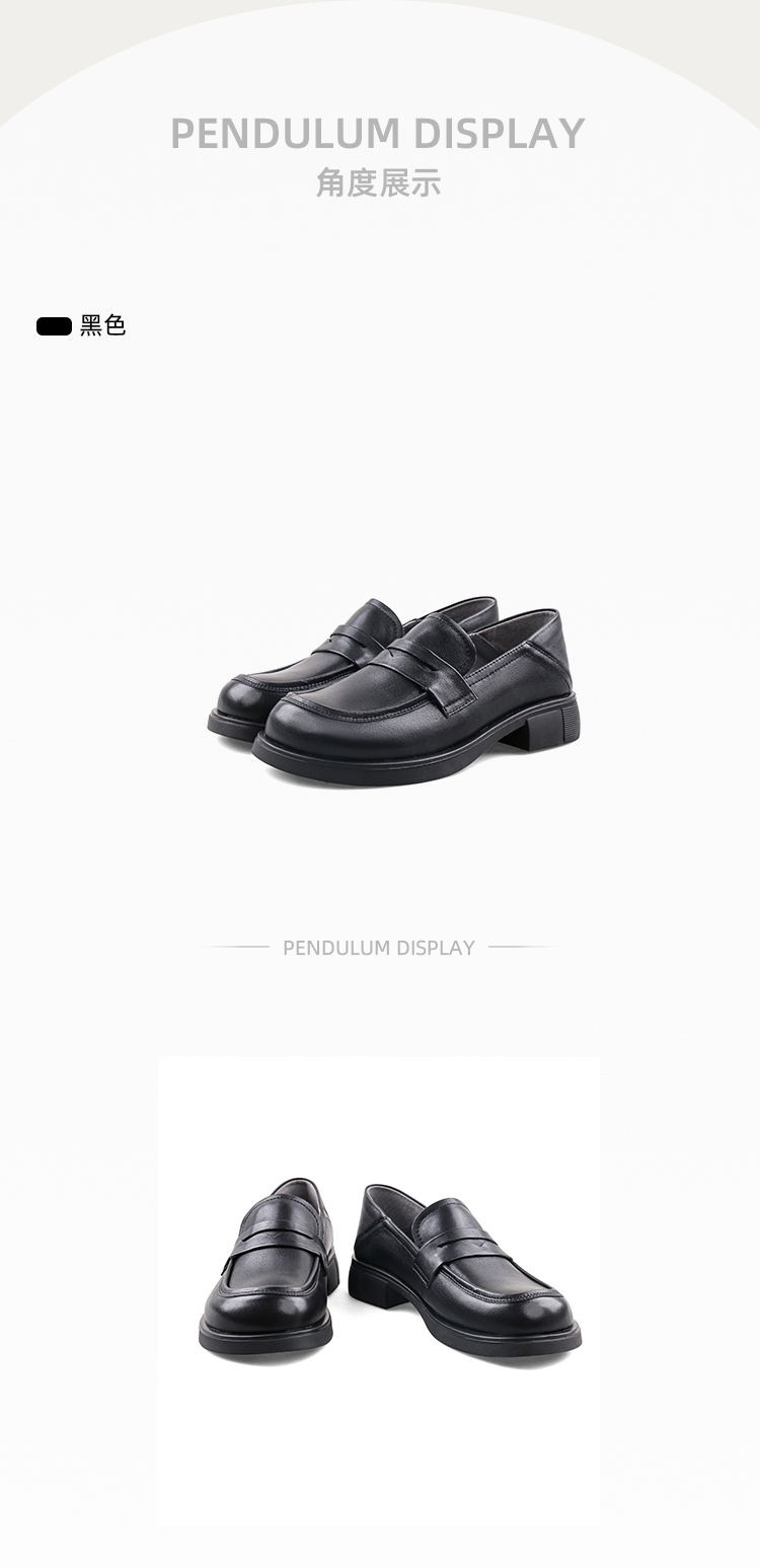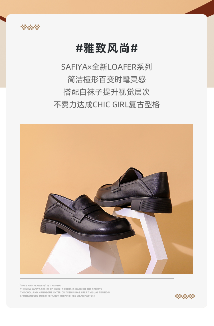 Safiya/索菲娅2023秋冬新品 英伦圆头粗跟百搭一脚蹬软底乐福鞋 SF33112136