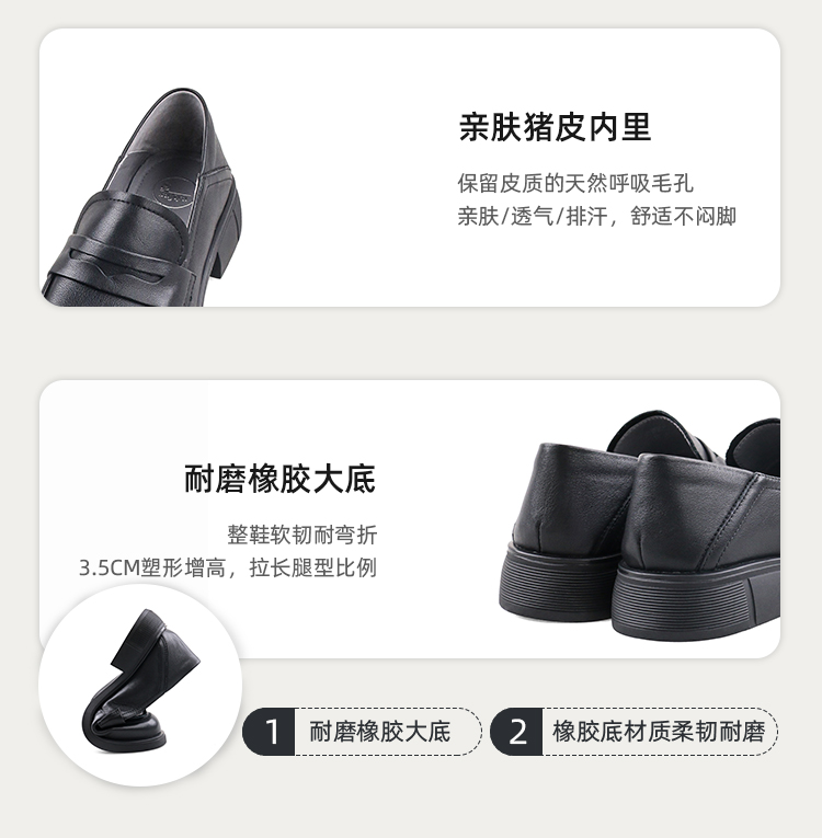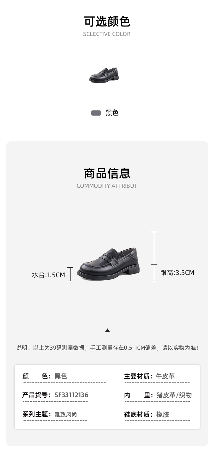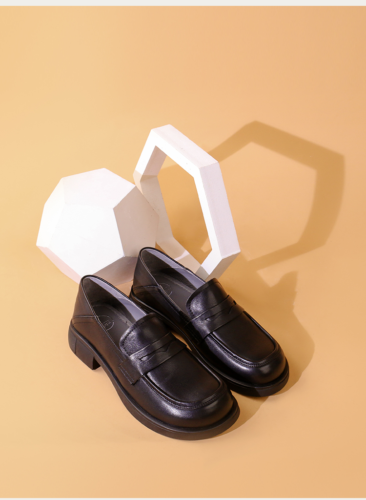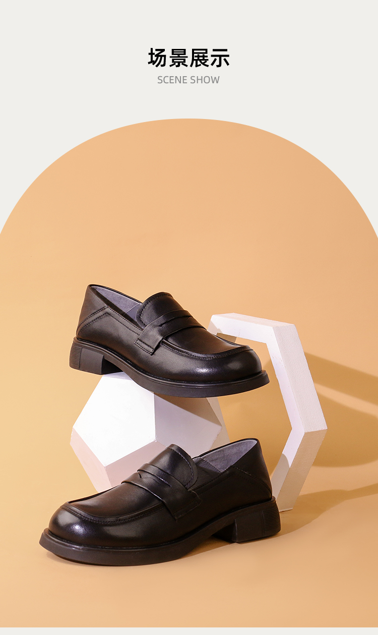 Safiya/索菲娅2023秋冬新品 英伦圆头粗跟百搭一脚蹬软底乐福鞋 SF33112136