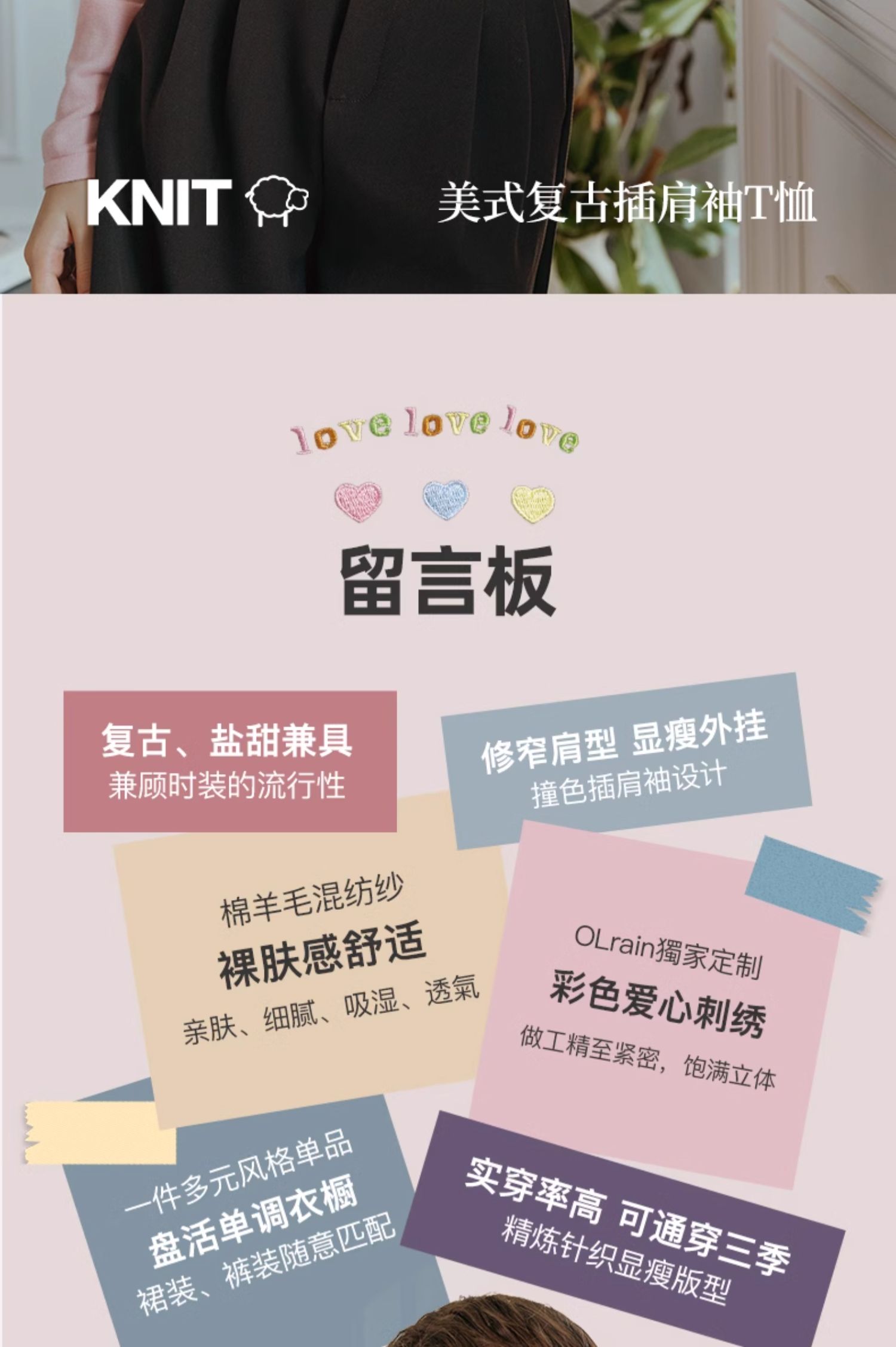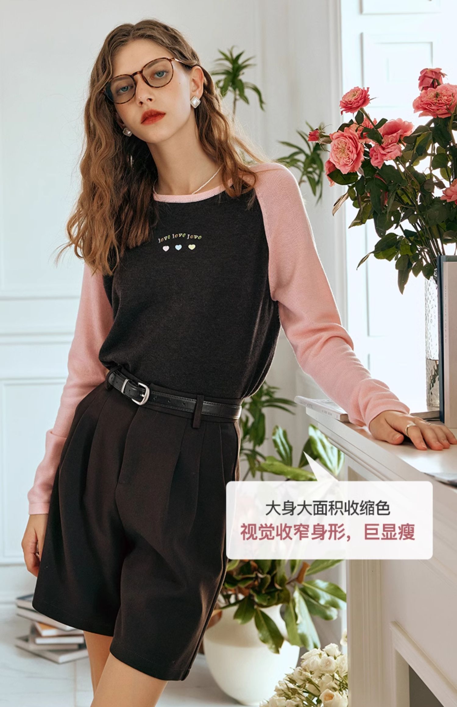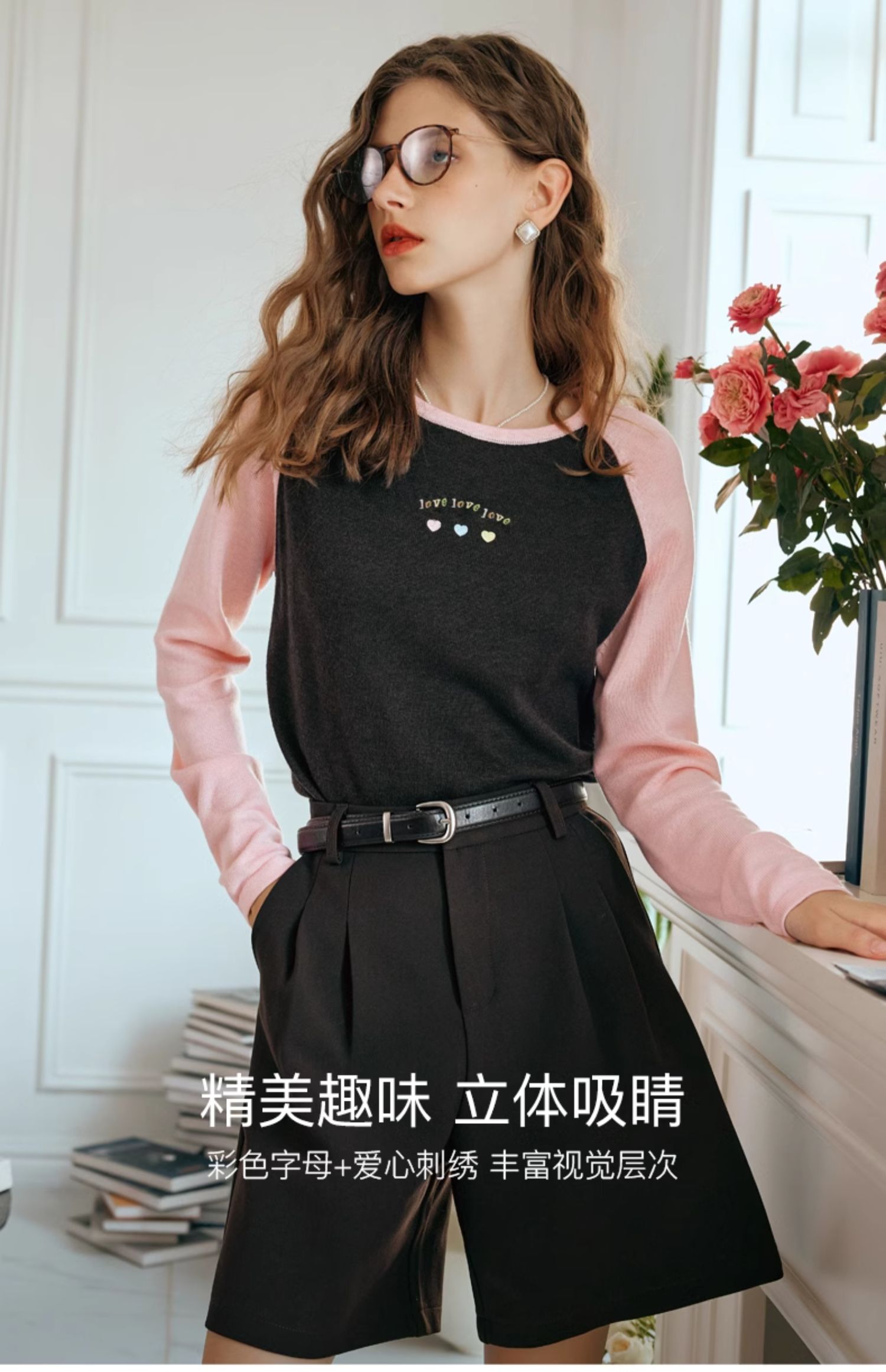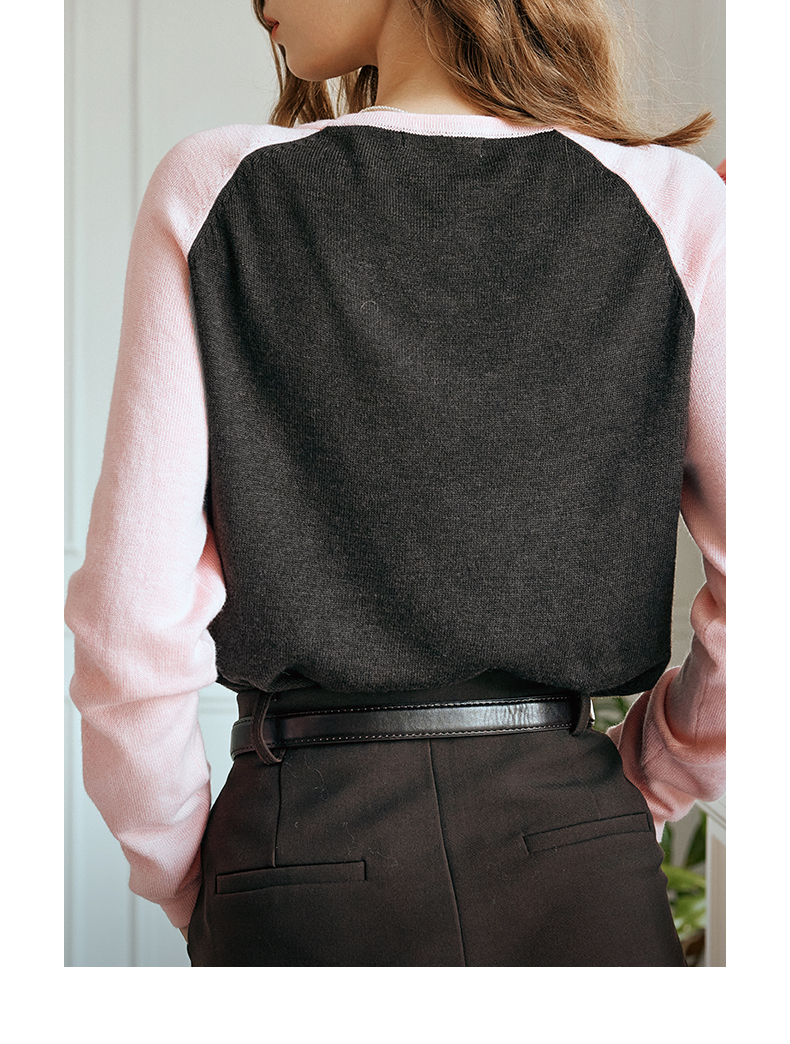 OLrain欧芮儿拼色针织衫女早春2024年新款修身设计感薄款打底衫