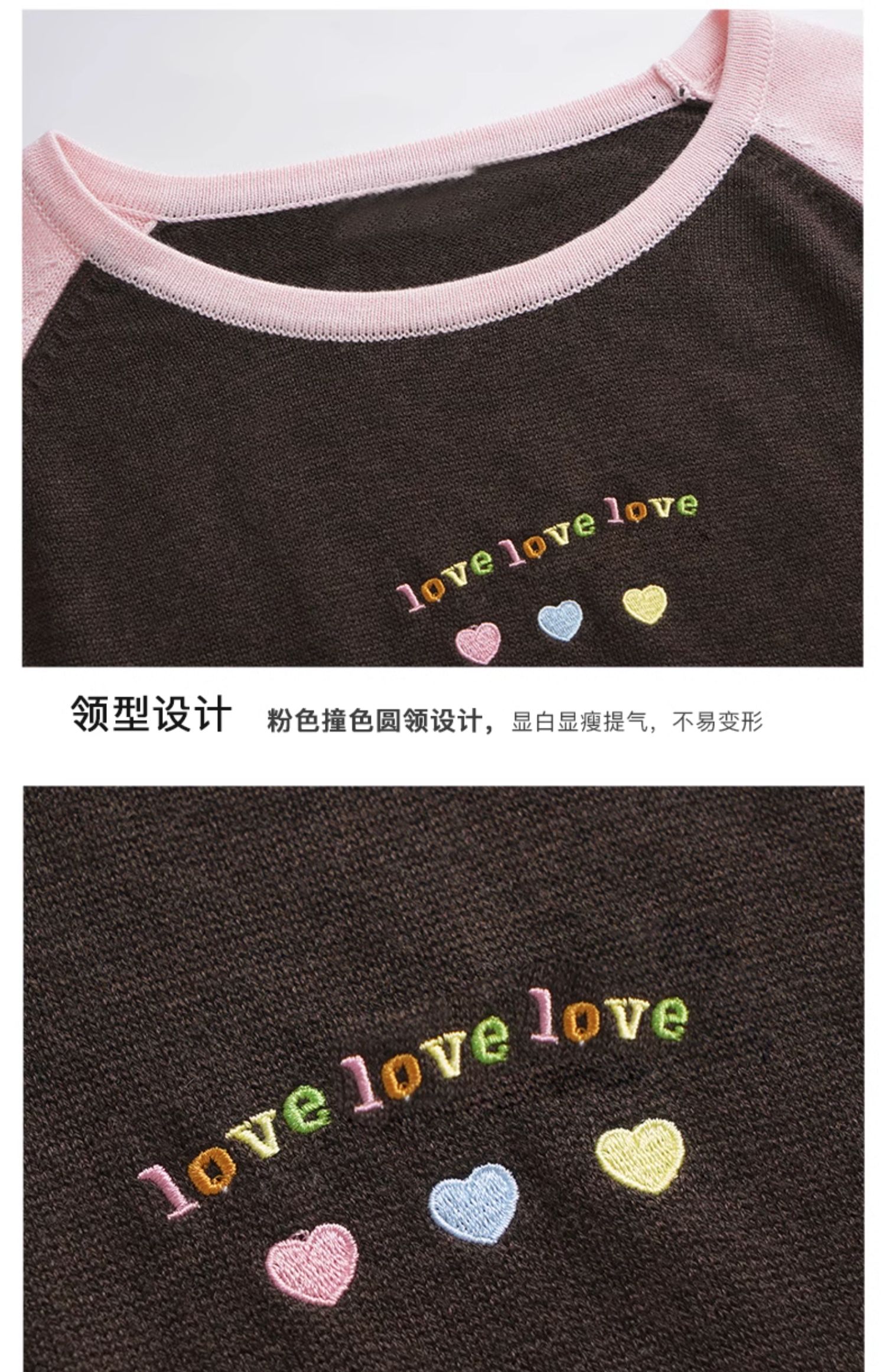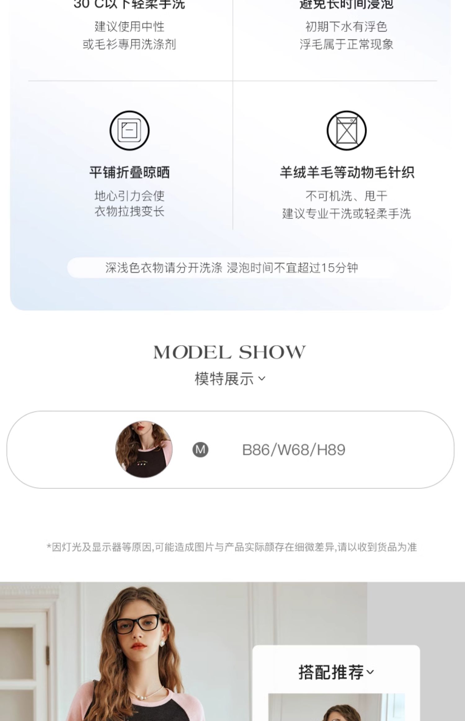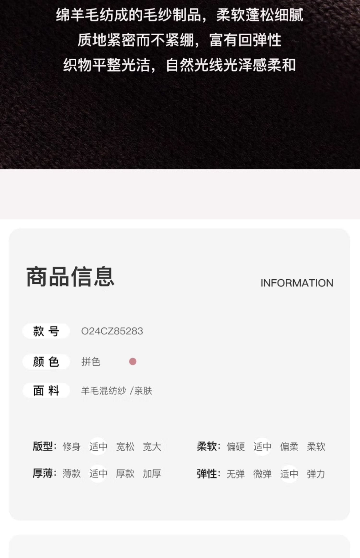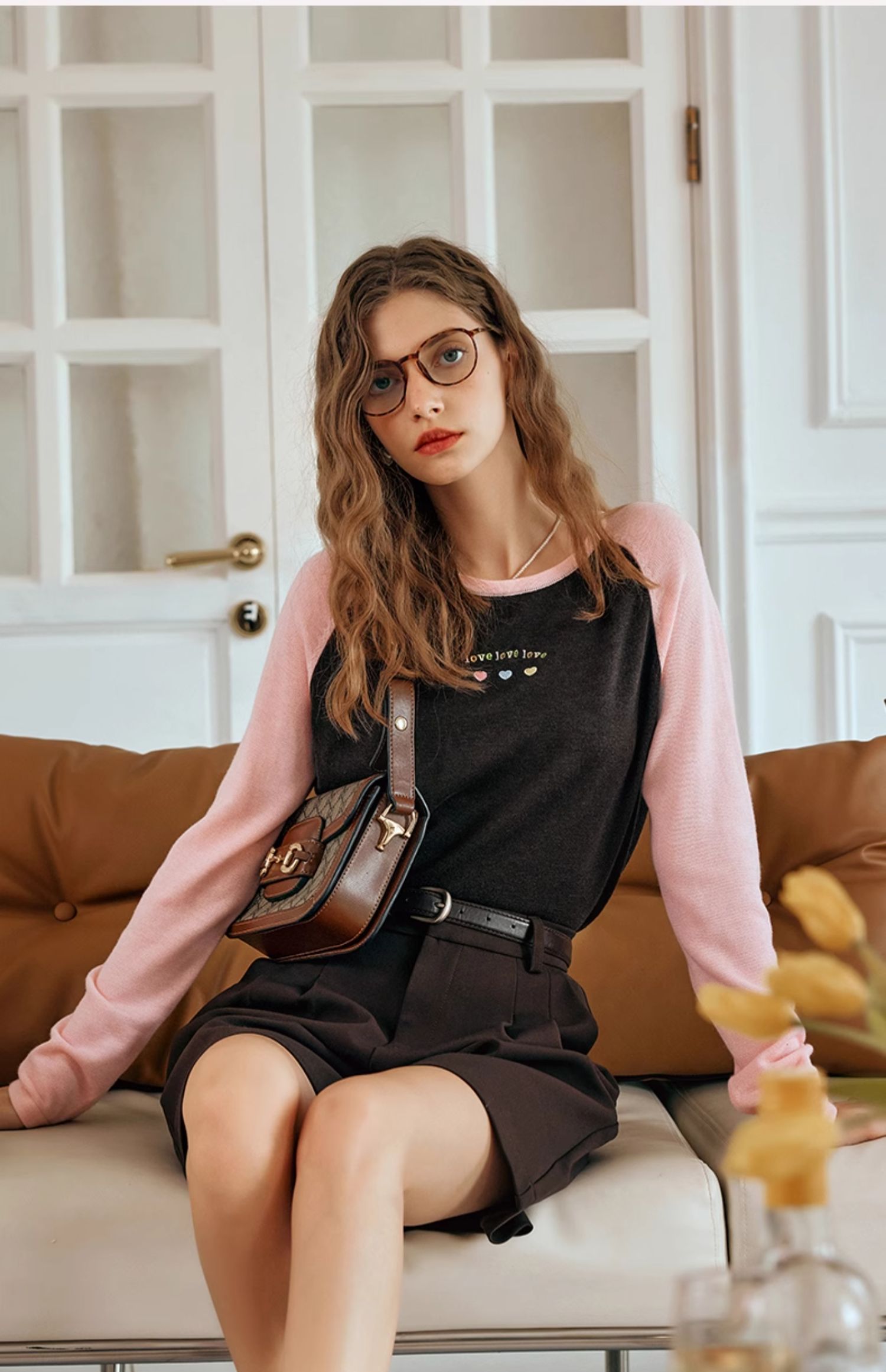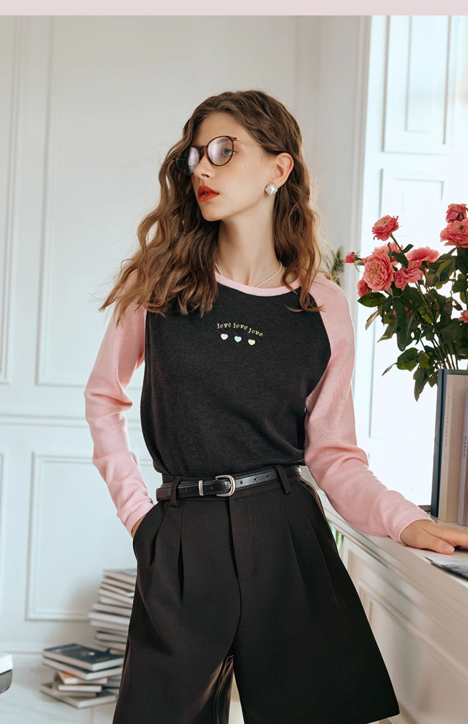 OLrain欧芮儿拼色针织衫女早春2024年新款修身设计感薄款打底衫