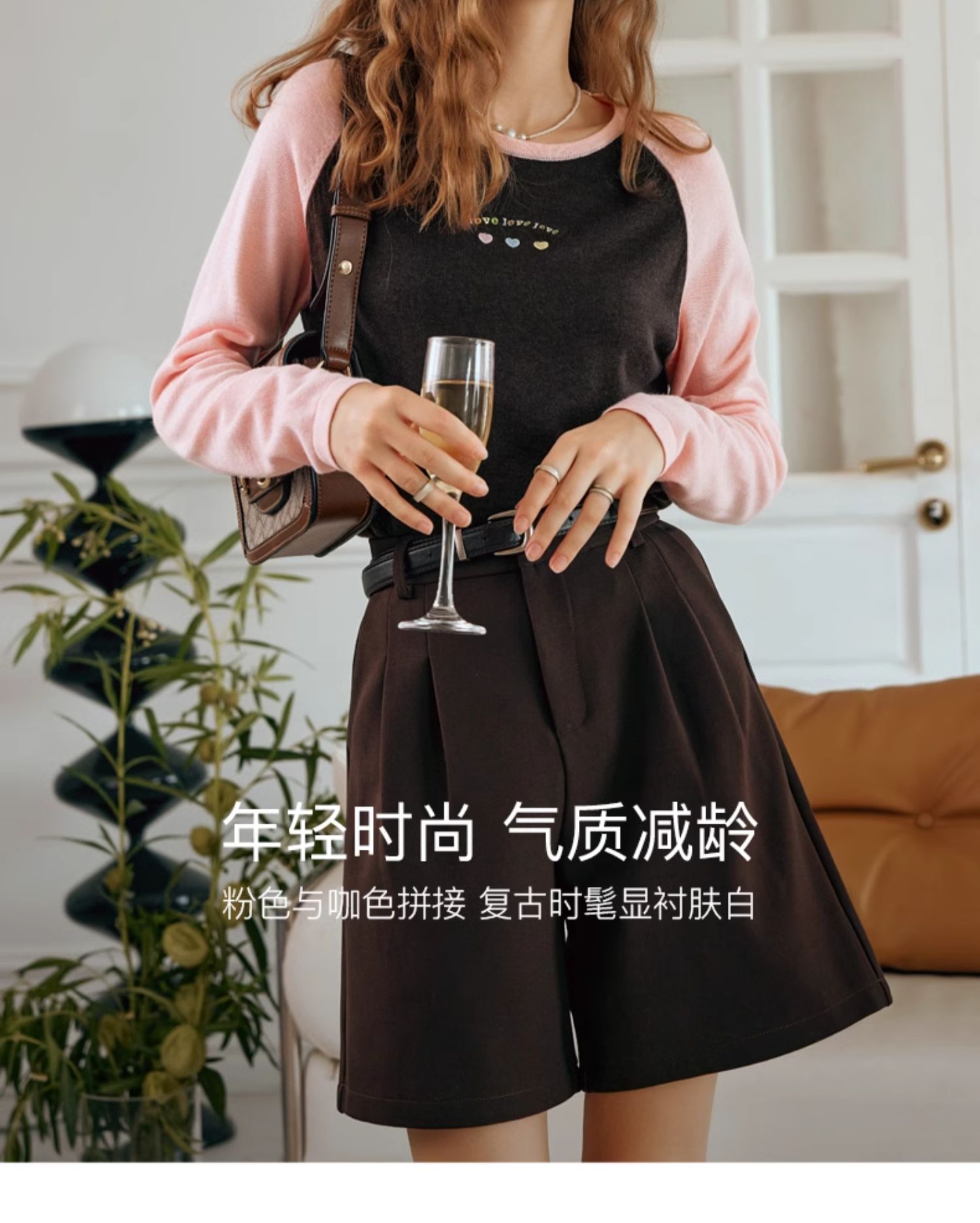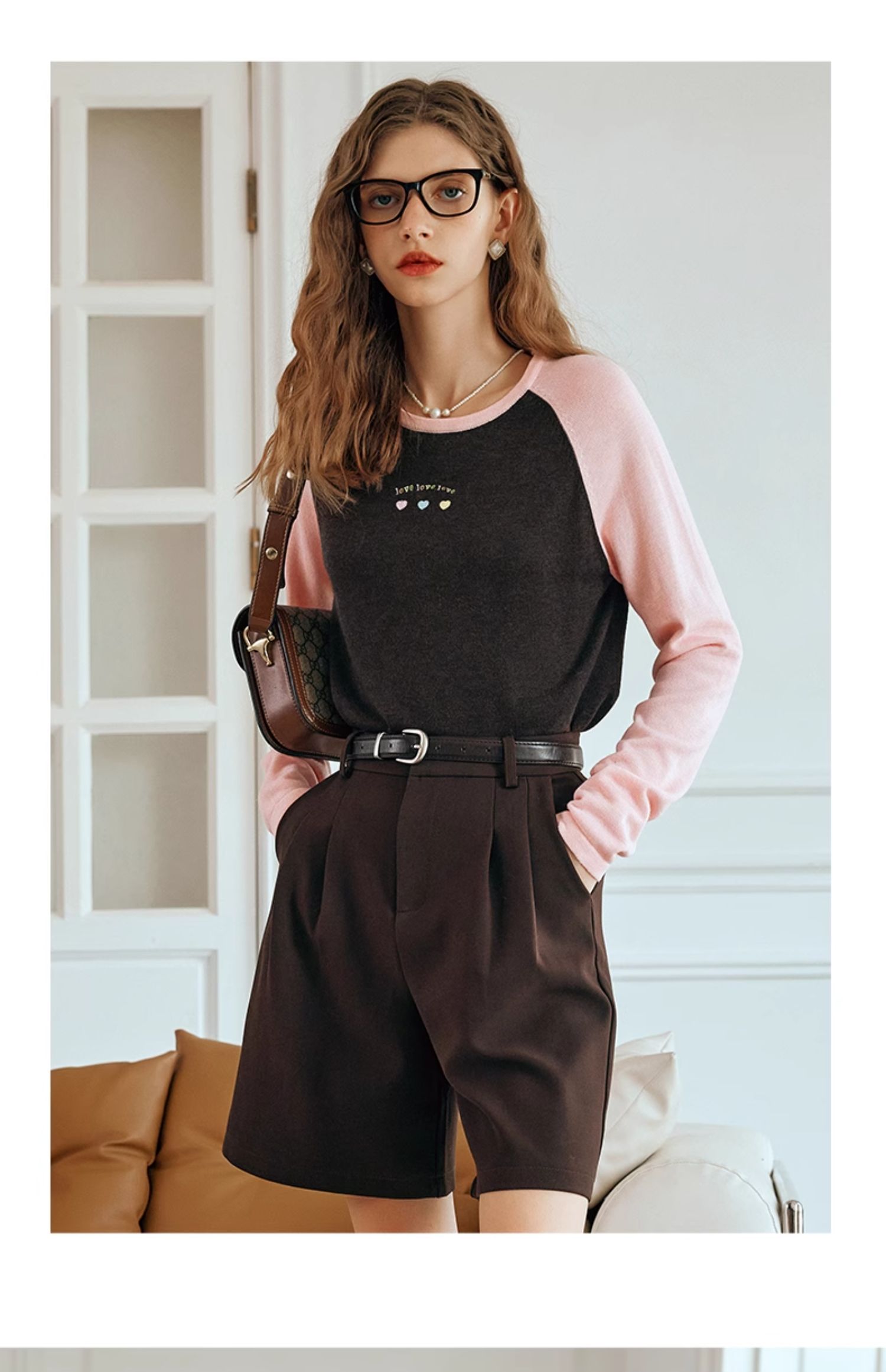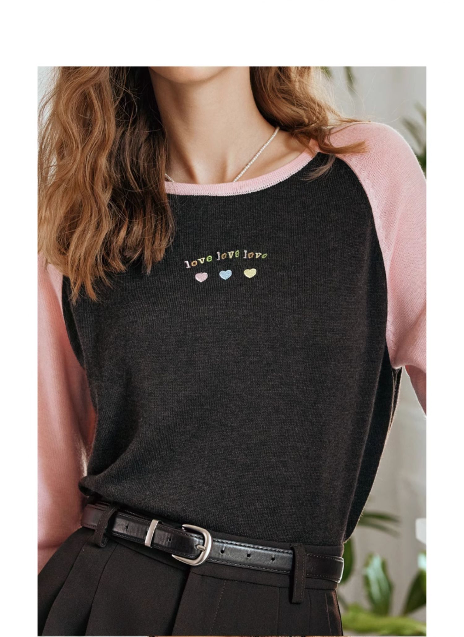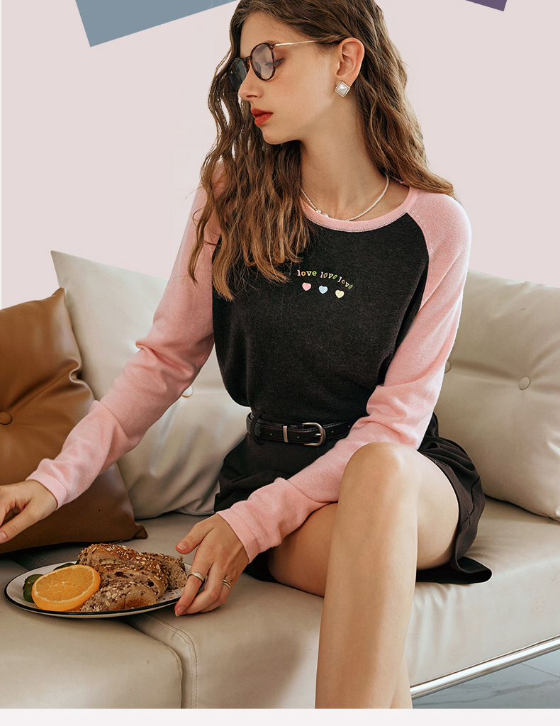 OLrain欧芮儿拼色针织衫女早春2024年新款修身设计感薄款打底衫