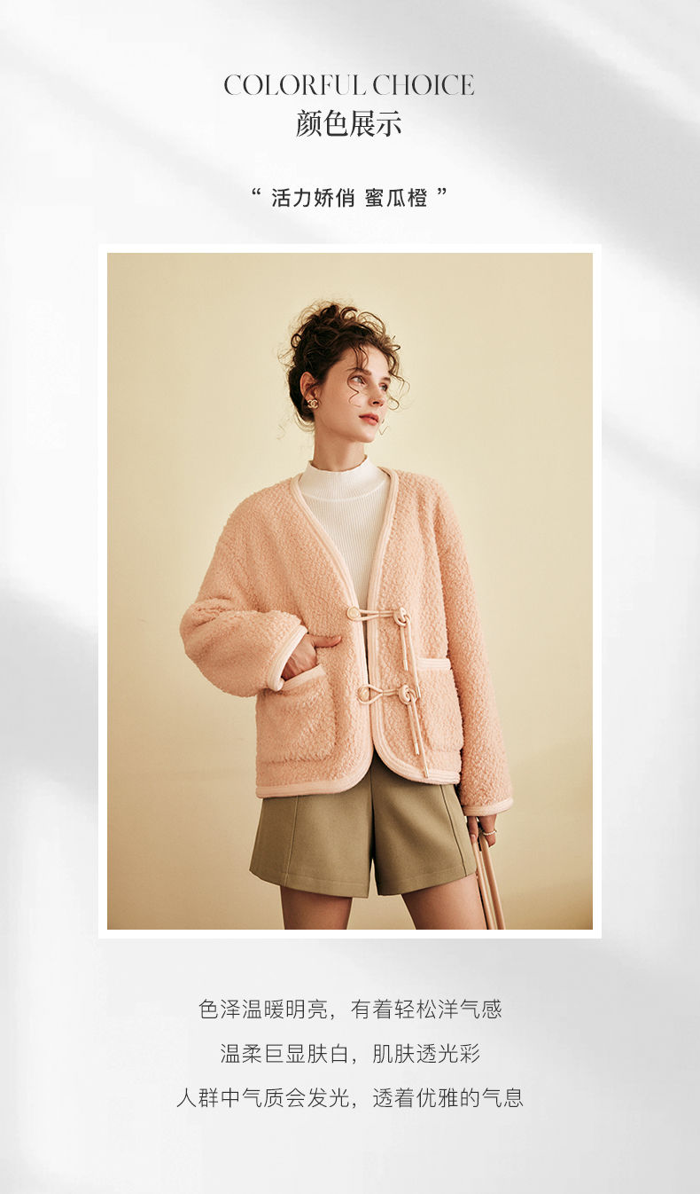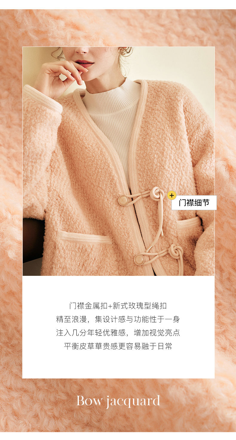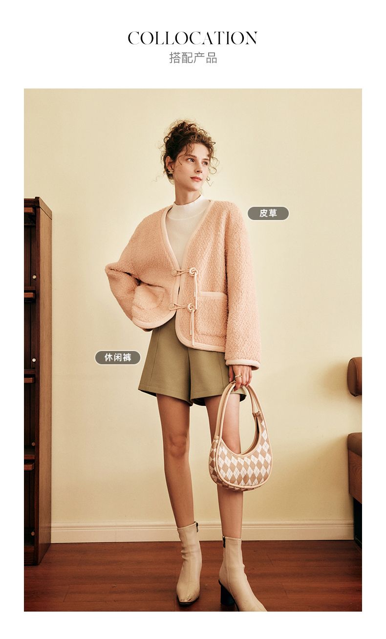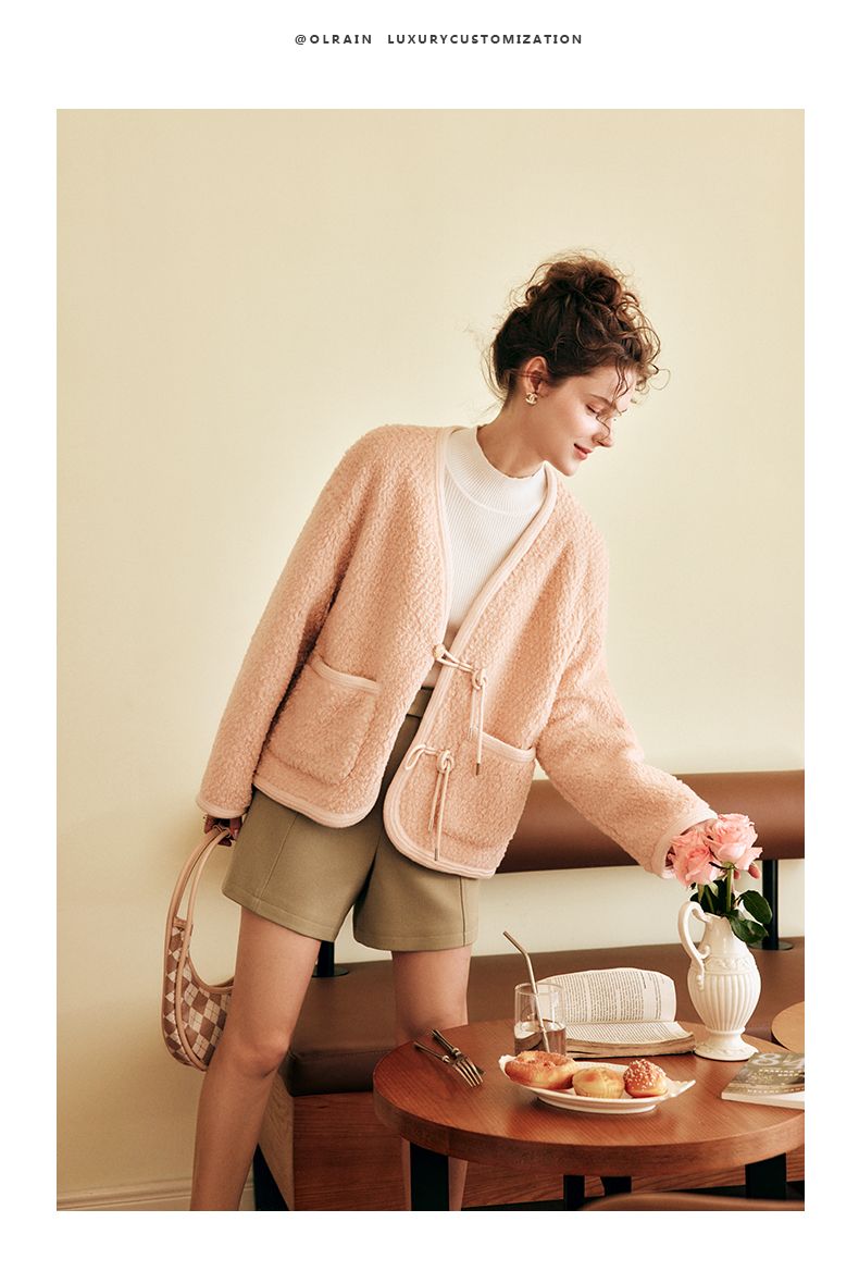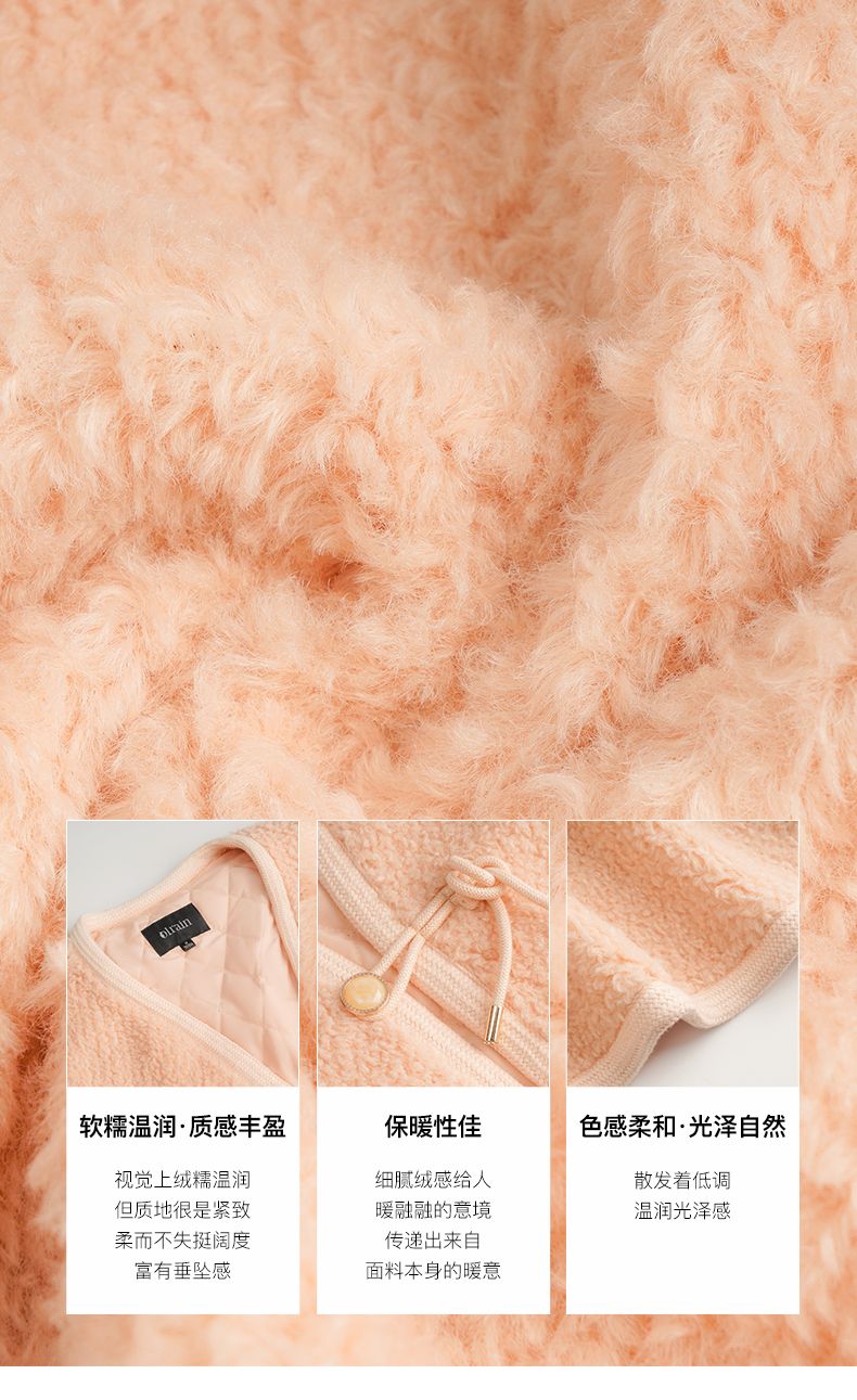 OLrain欧芮儿法式粉色皮草外套女春季2025新款保暖新中式短款大衣