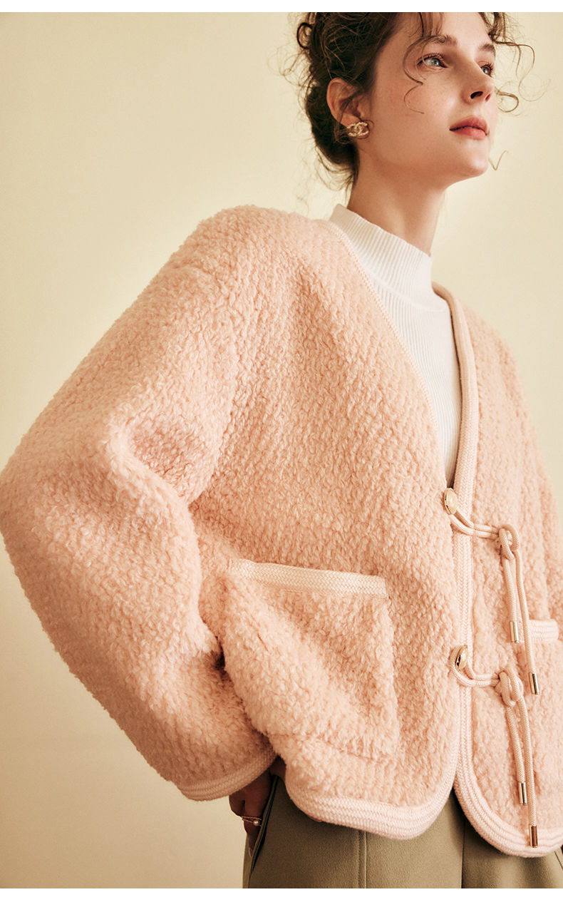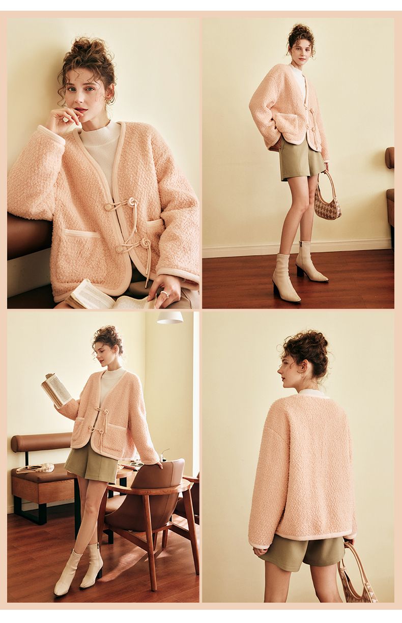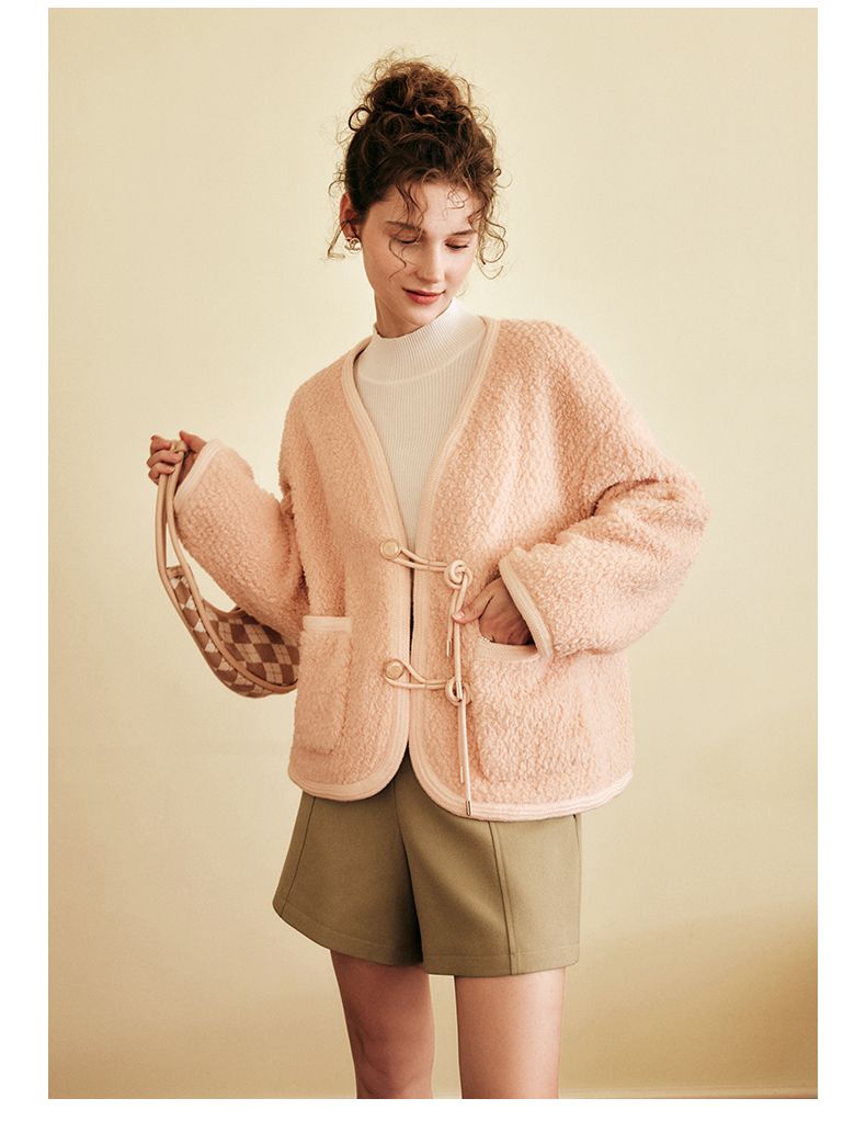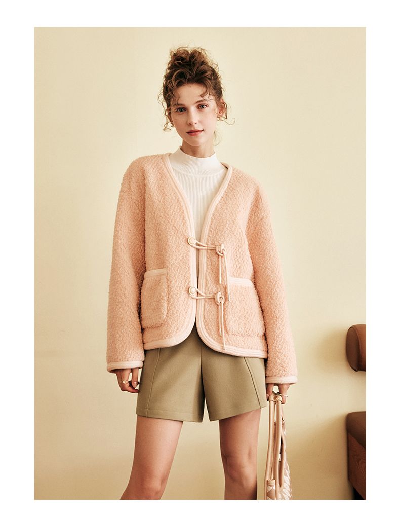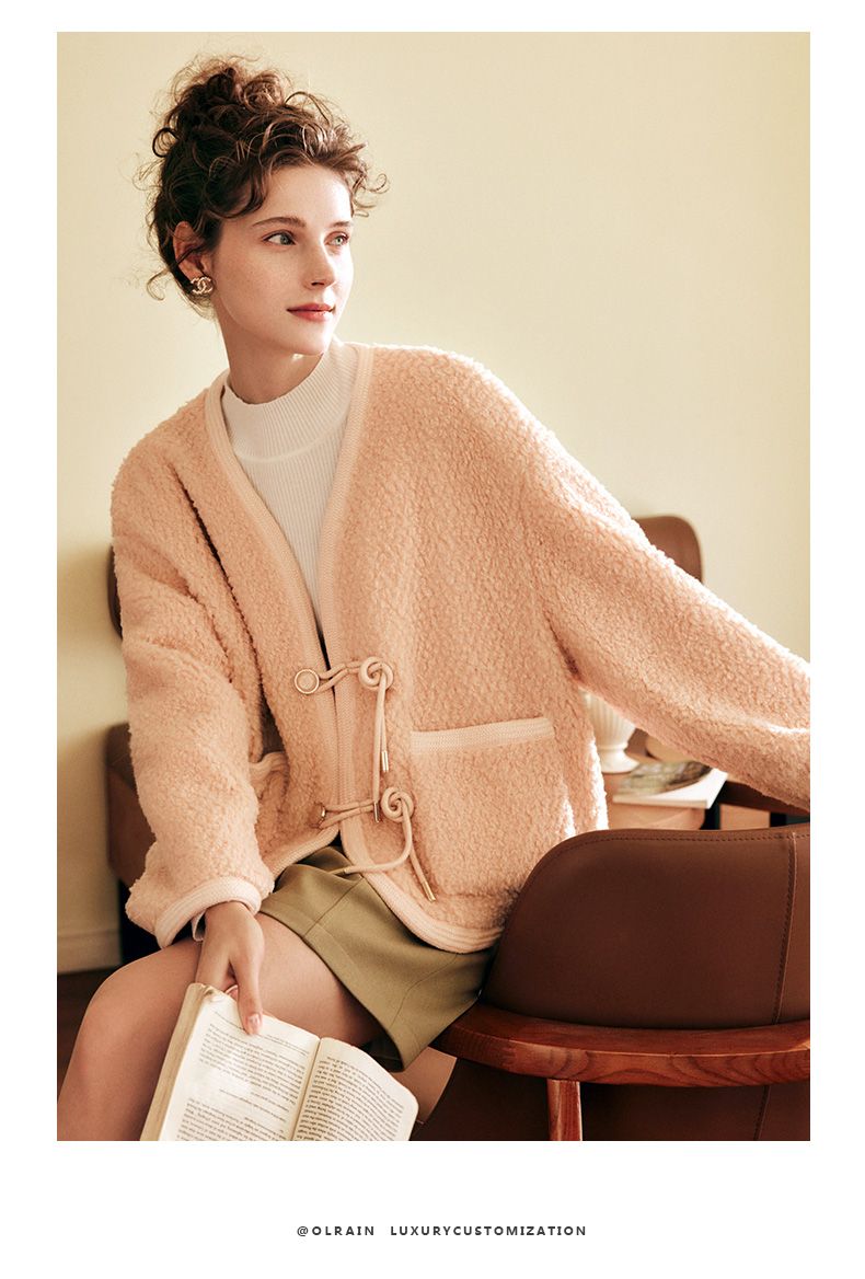 OLrain欧芮儿法式粉色皮草外套女春季2025新款保暖新中式短款大衣