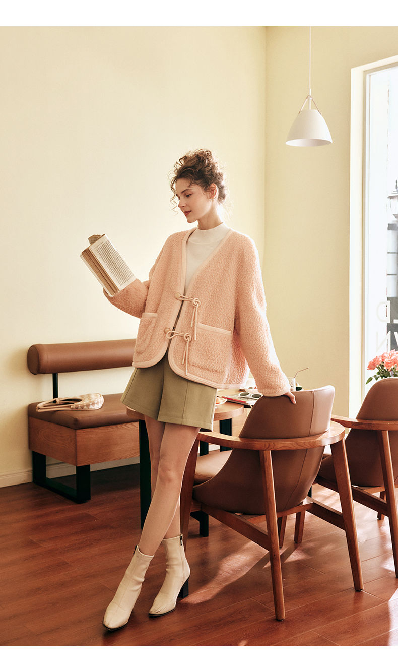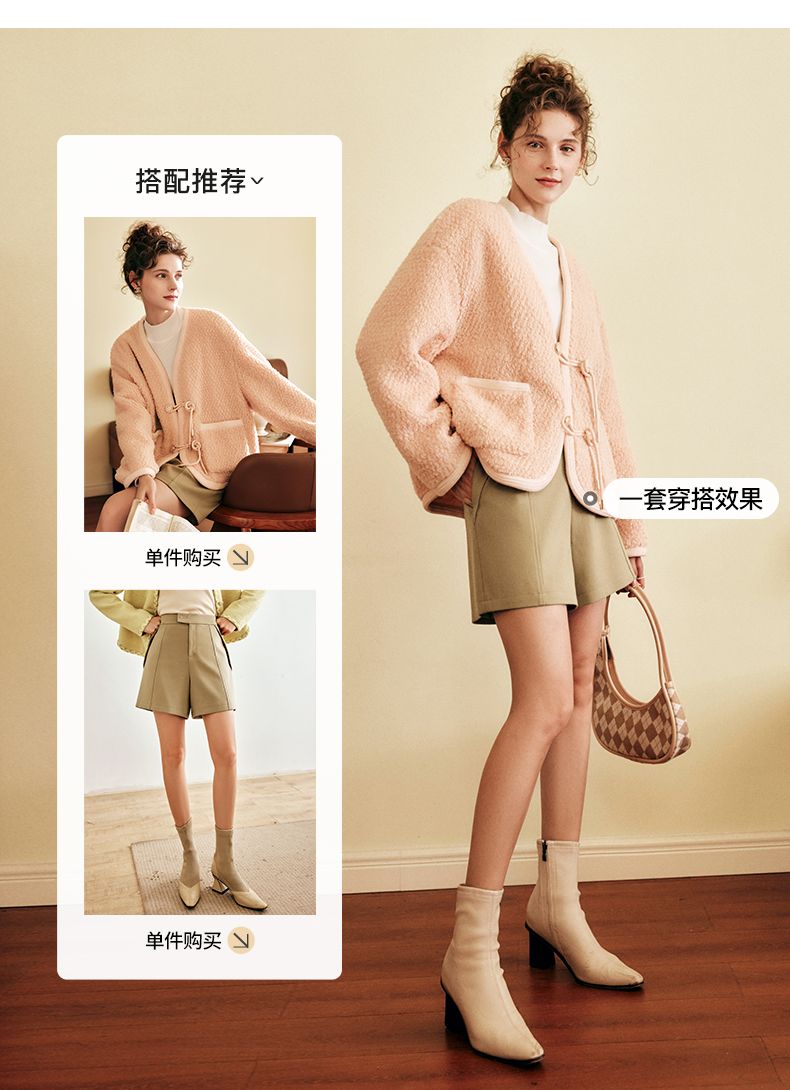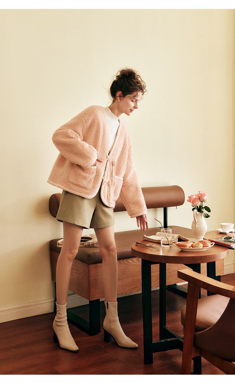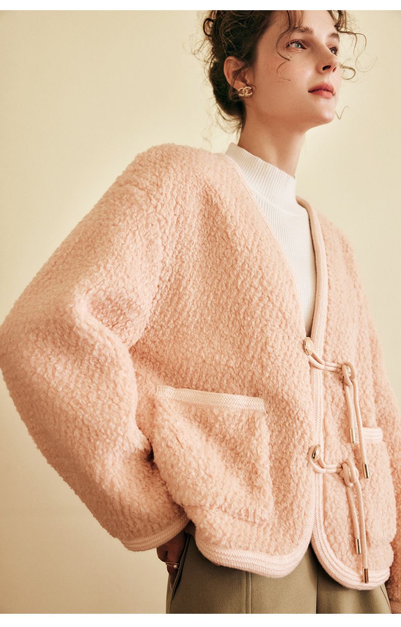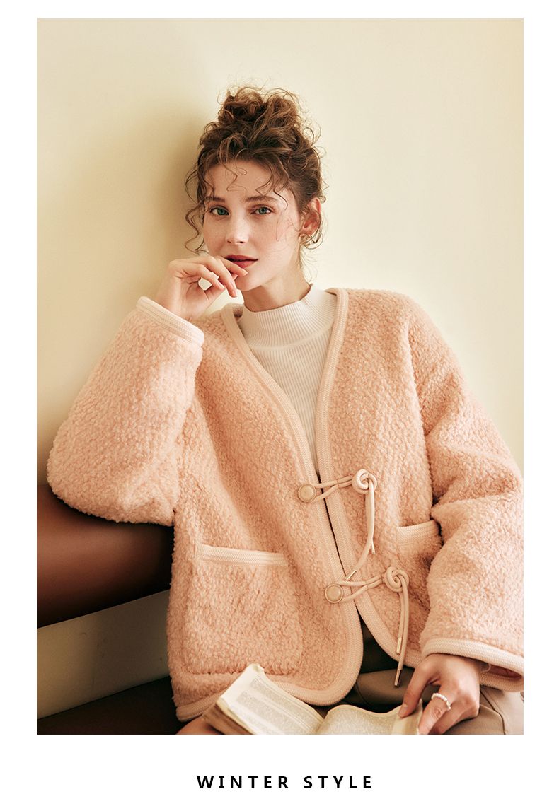 OLrain欧芮儿法式粉色皮草外套女春季2025新款保暖新中式短款大衣